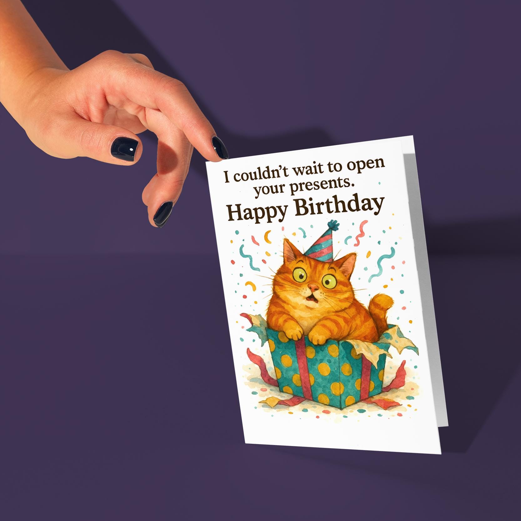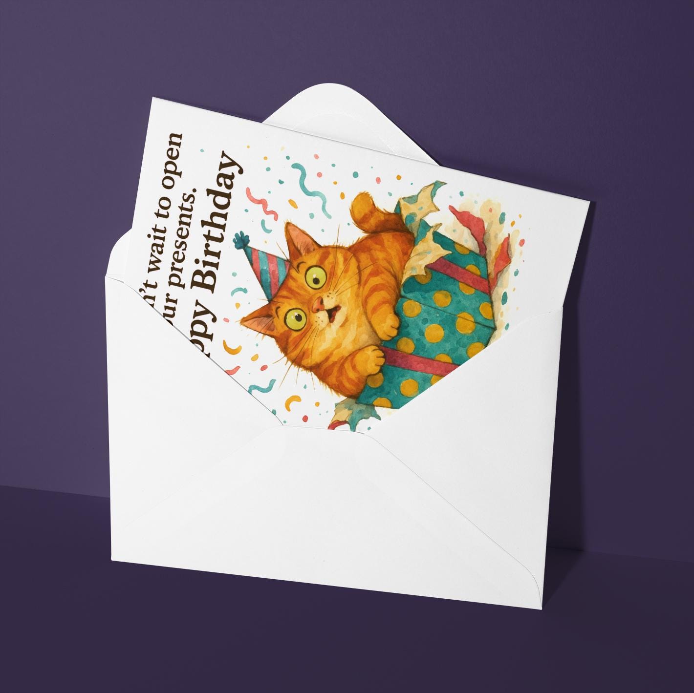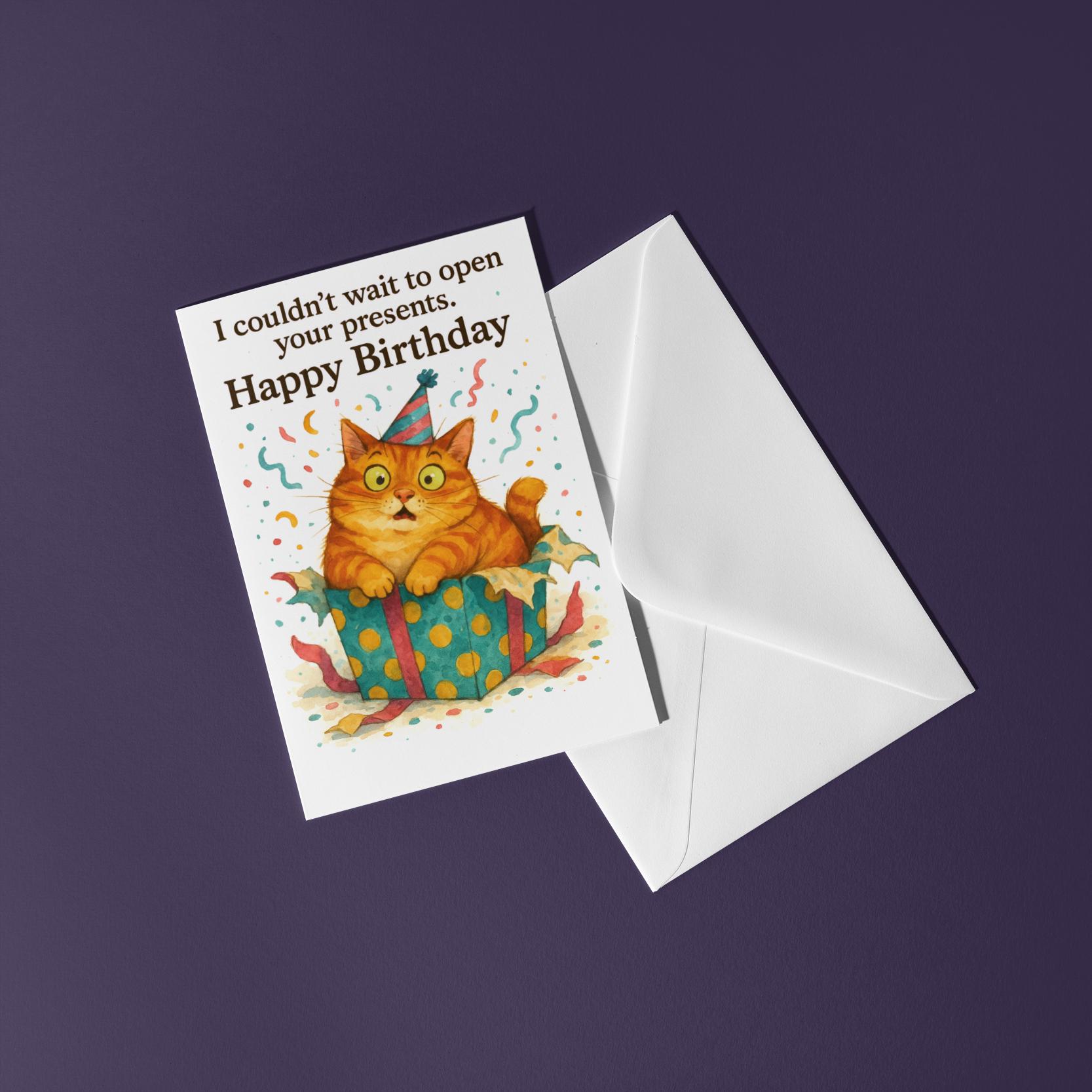 BLANK INTERIOR FOR A PERSONAL TOUCH: Our Sneaky Birthday Cat - I couldn't wait to open your presents! Birthday card and other whimsical designs feature a blank interior, giving you ample space to write a personal message from the heart. Perfect for any occasion, each card comes with a matching white envelope, making it easy to send your unique sentiments to loved ones.