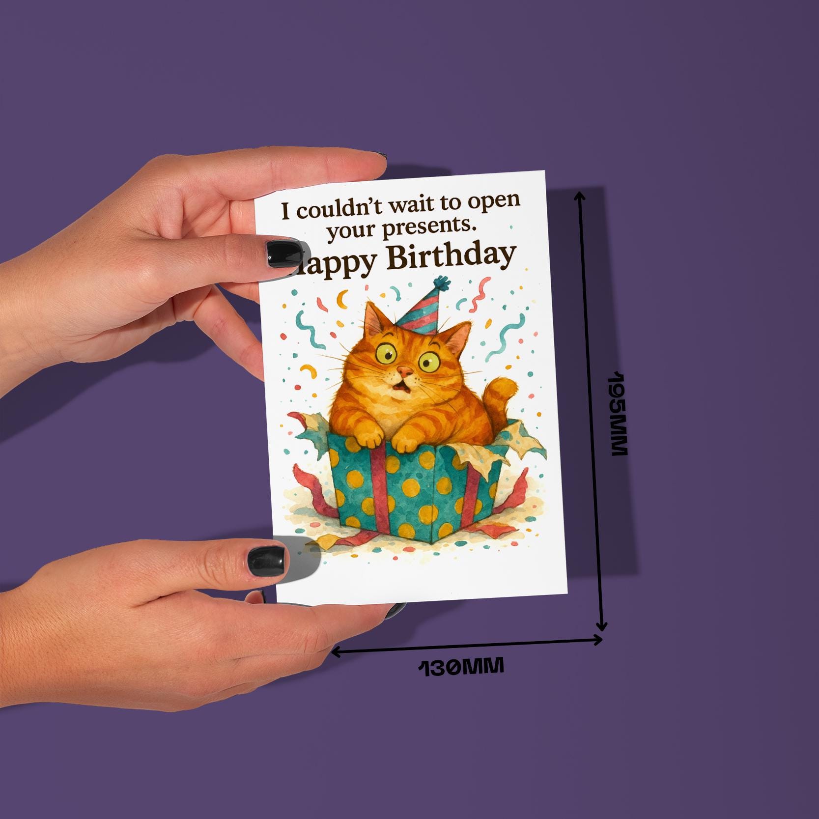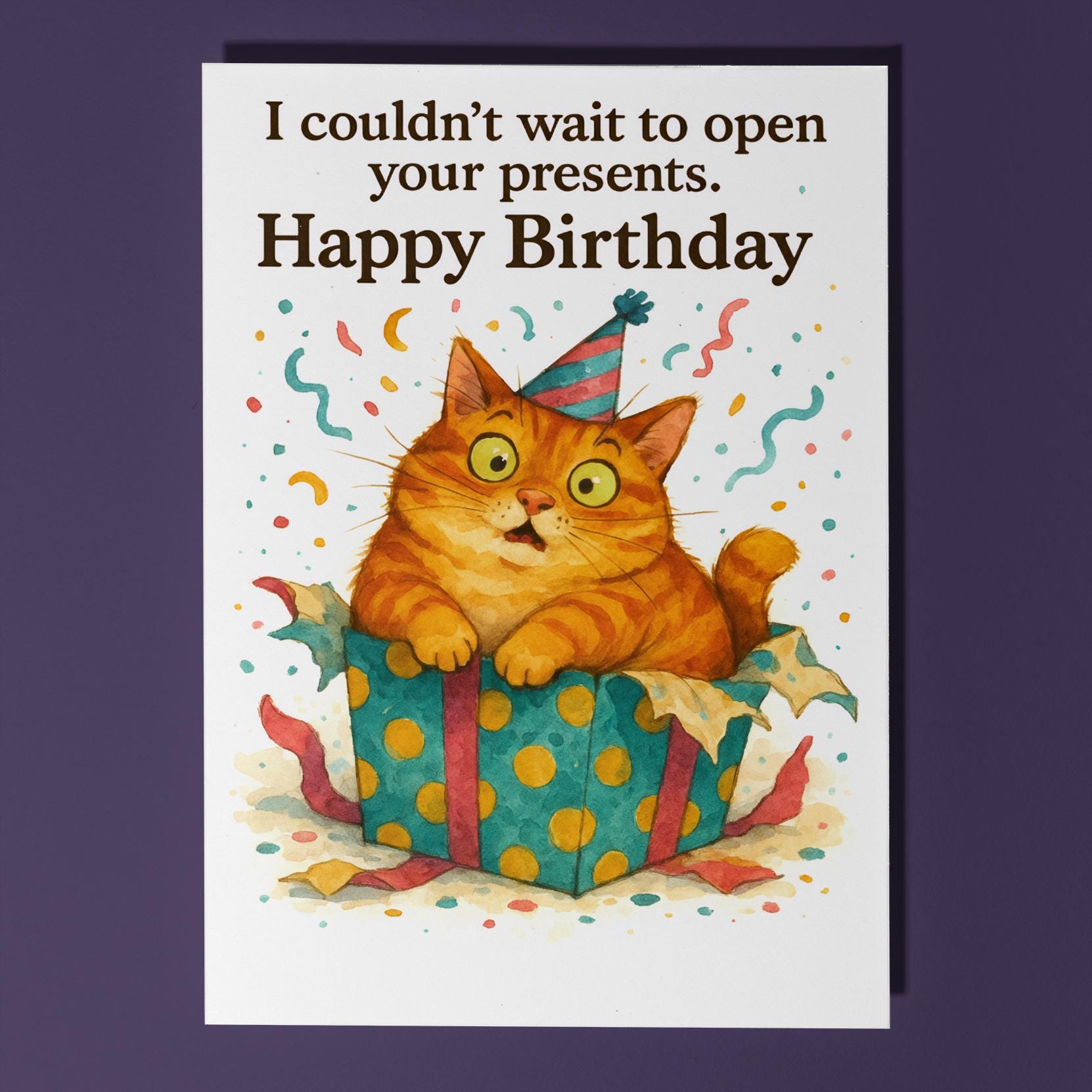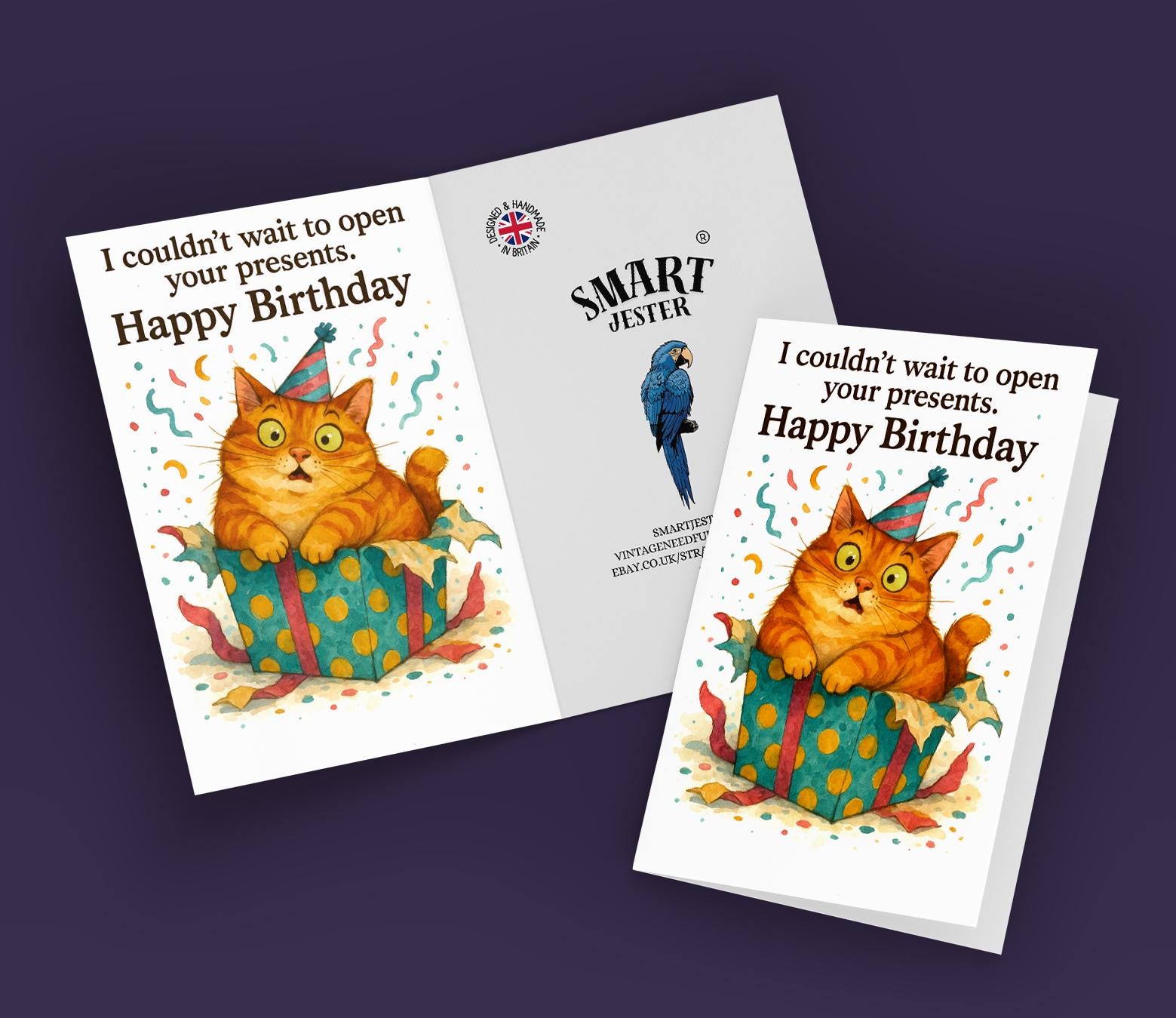 BLANK INTERIOR FOR A PERSONAL TOUCH: Our Sneaky Birthday Cat - I couldn't wait to open your presents! Birthday card and other whimsical designs feature a blank interior, giving you ample space to write a personal message from the heart. Perfect for any occasion, each card comes with a matching white envelope, making it easy to send your unique sentiments to loved ones.