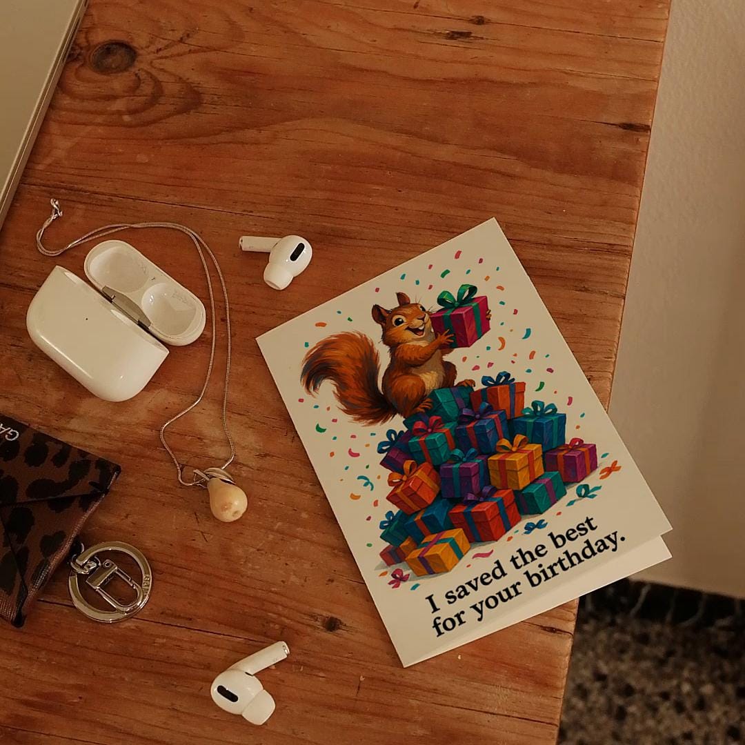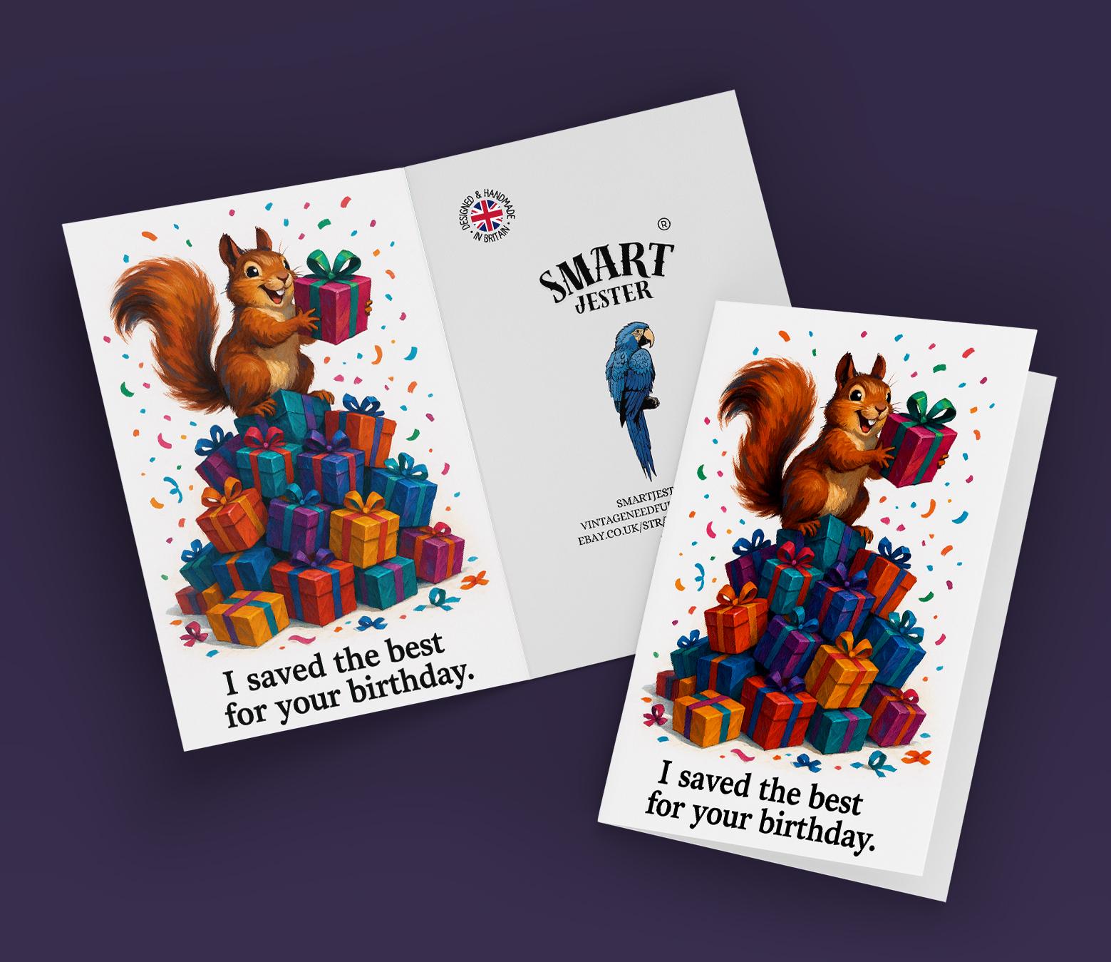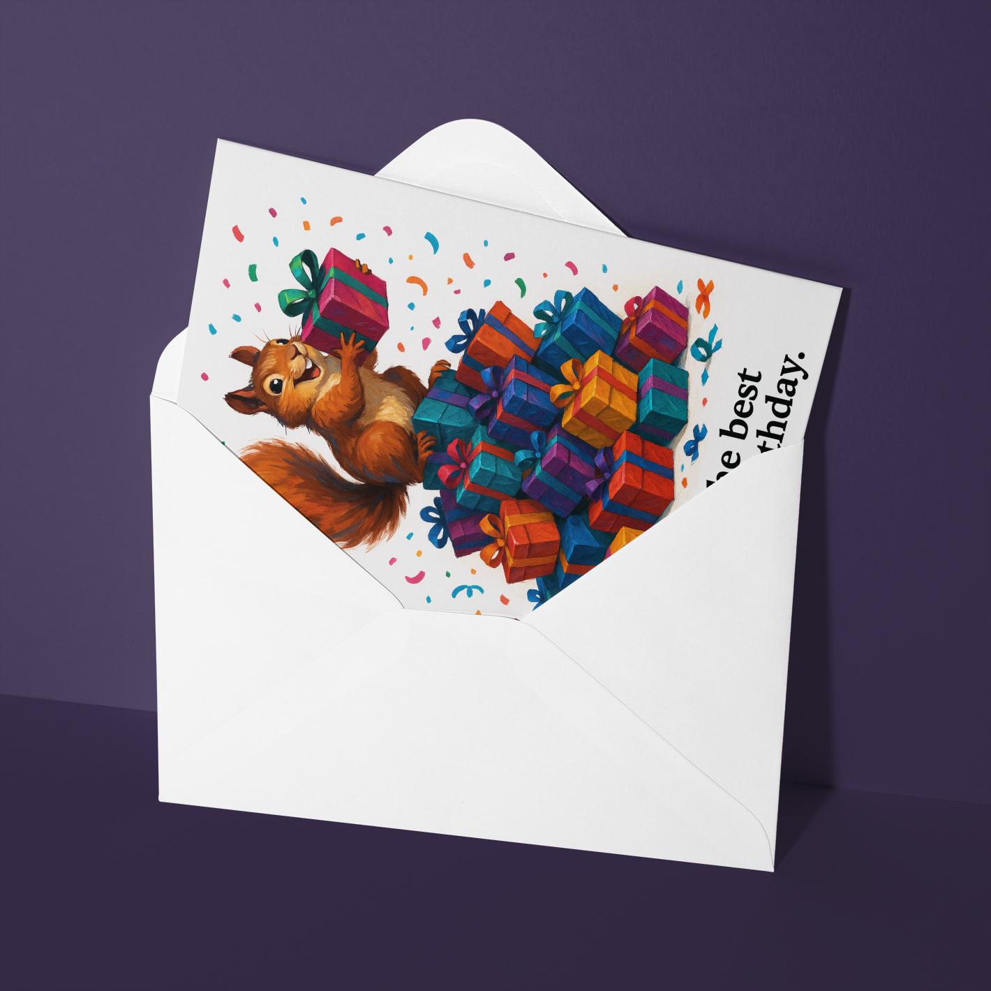 BLANK INTERIOR FOR A PERSONAL TOUCH: Our Gift Hoarder Squirrel - I saved the best for your birthday. Birthday card and other whimsical designs feature a blank interior, giving you ample space to write a personal message from the heart. Perfect for any occasion, each card comes with a matching white envelope, making it easy to send your unique sentiments to loved ones.