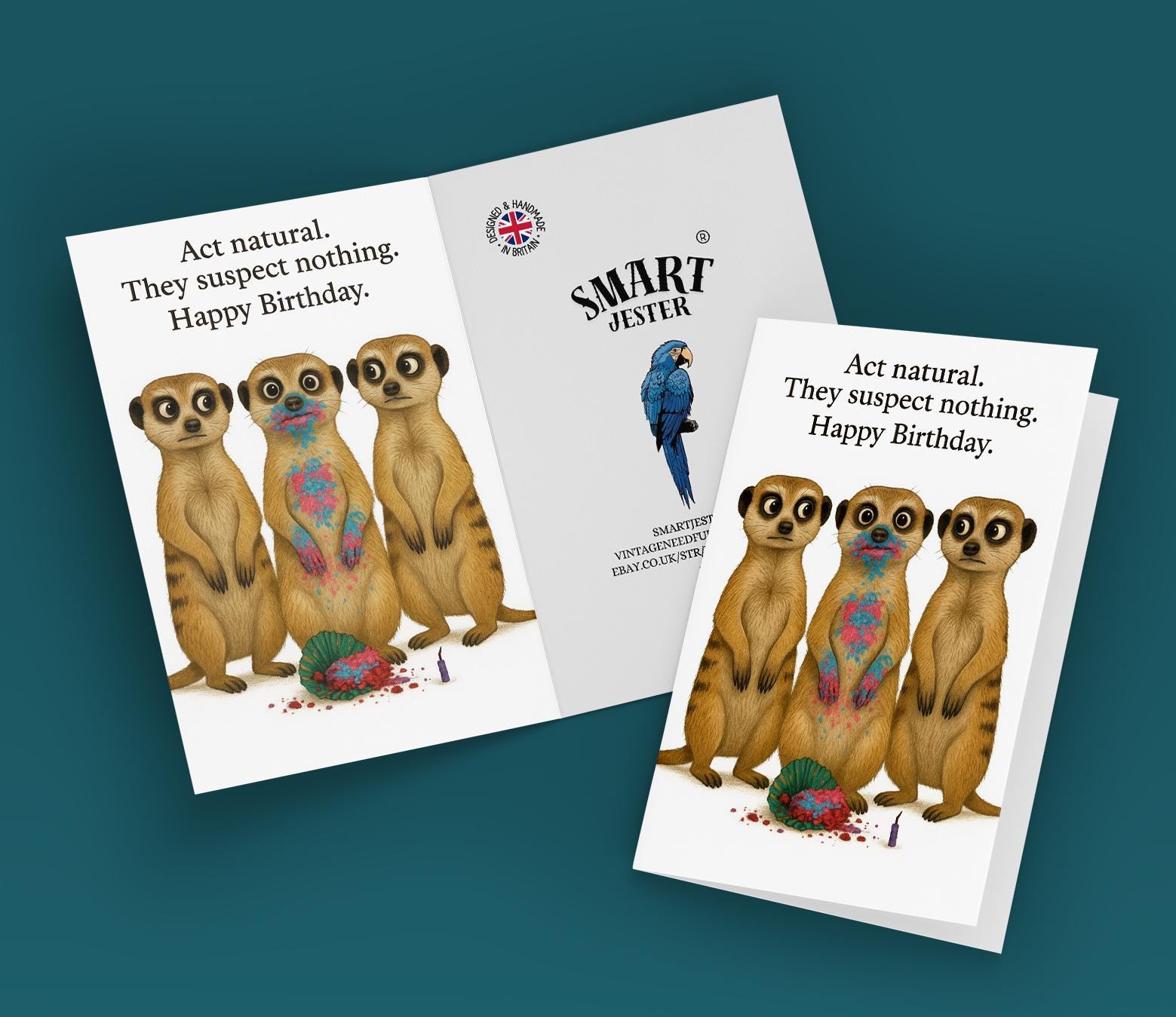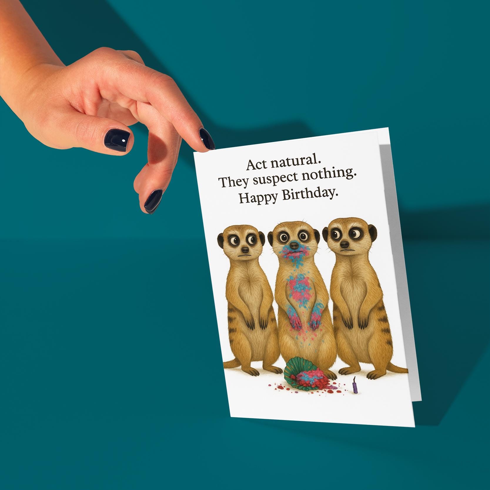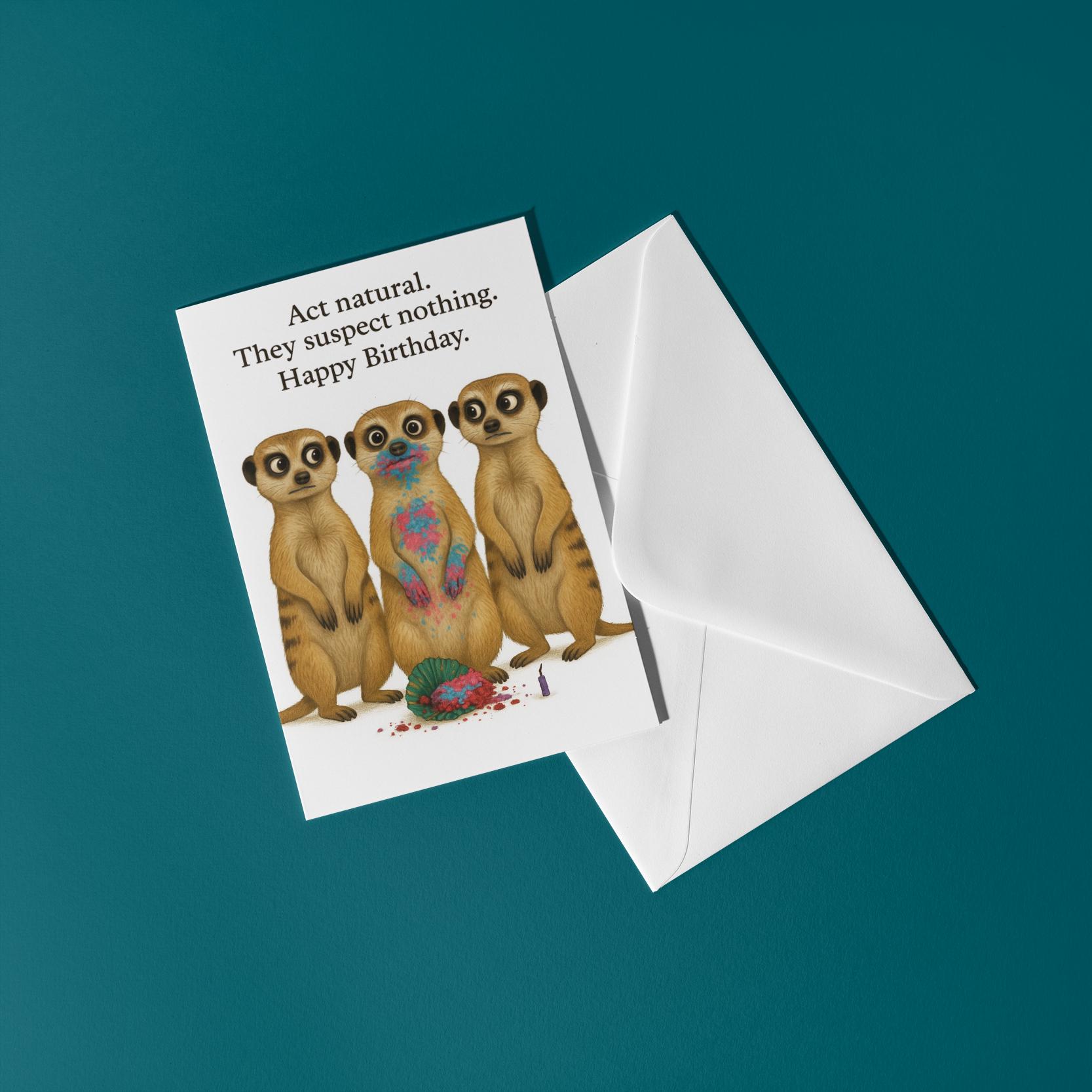 BLANK INTERIOR FOR A PERSONAL TOUCH: Our Meerkat Birthday Surprise - Act natural. They suspect nothing. Happy Birthday. card and other whimsical designs feature a blank interior, giving you ample space to write a personal message from the heart. Perfect for any occasion, each card comes with a matching white envelope, making it easy to send your unique sentiments to loved ones.