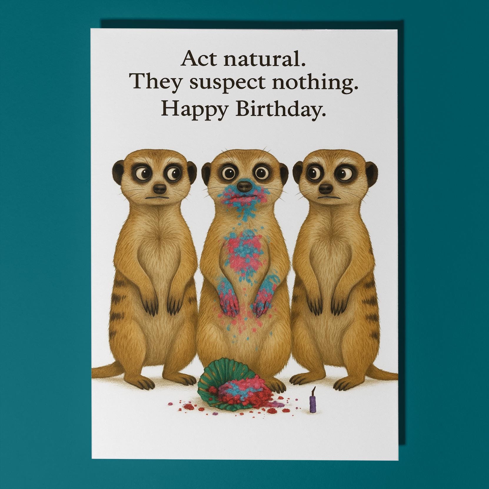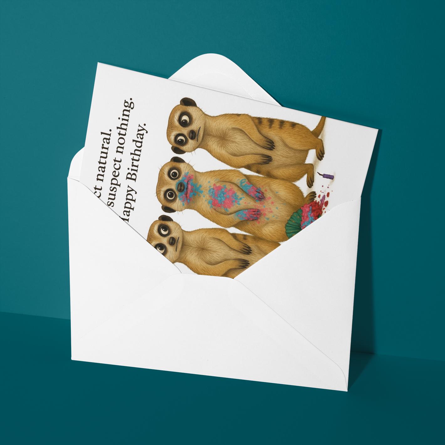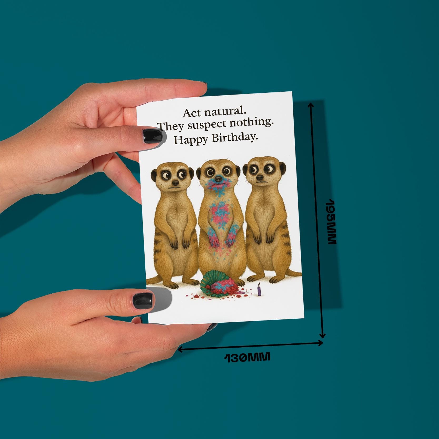 BLANK INTERIOR FOR A PERSONAL TOUCH: Our Meerkat Birthday Surprise - Act natural. They suspect nothing. Happy Birthday. card and other whimsical designs feature a blank interior, giving you ample space to write a personal message from the heart. Perfect for any occasion, each card comes with a matching white envelope, making it easy to send your unique sentiments to loved ones.