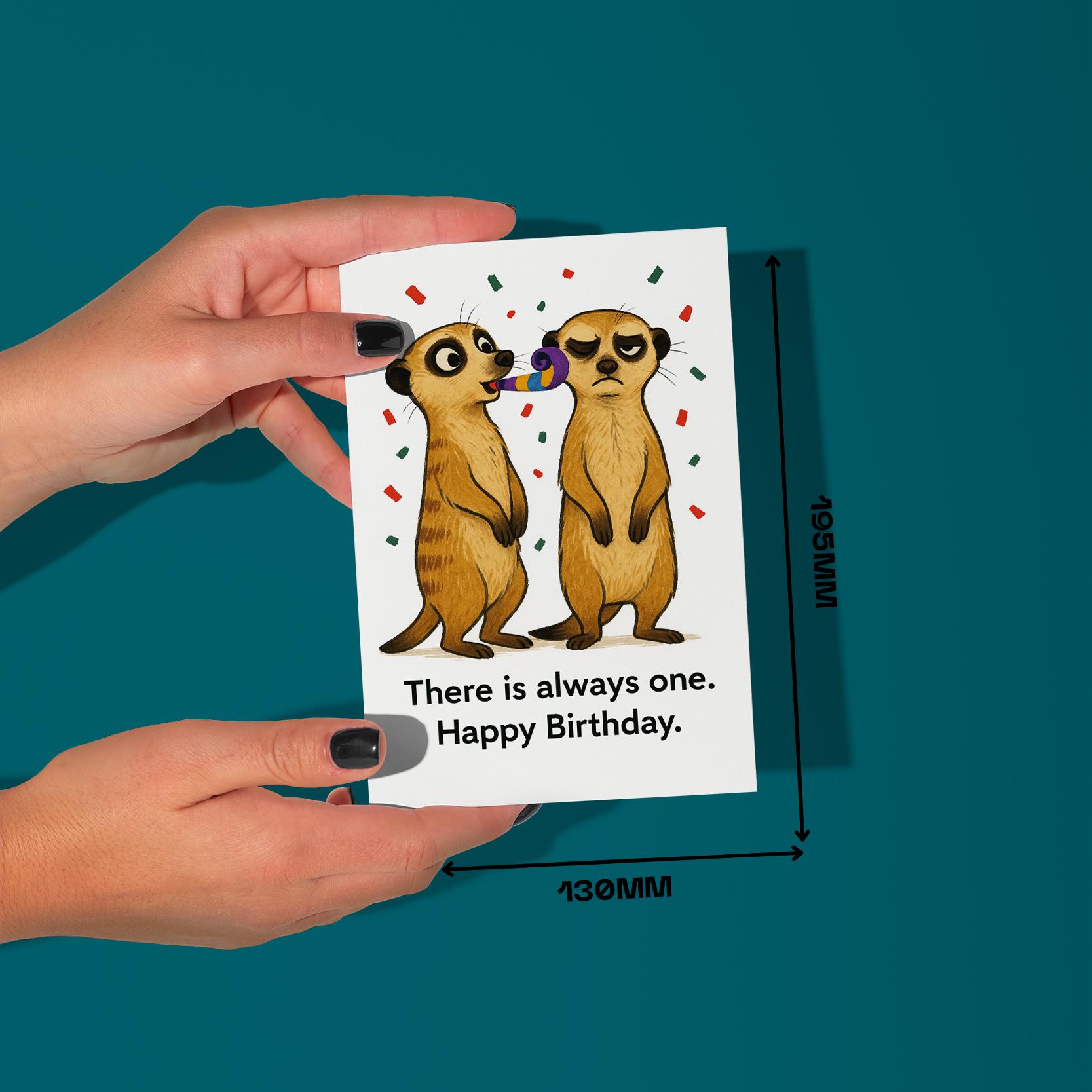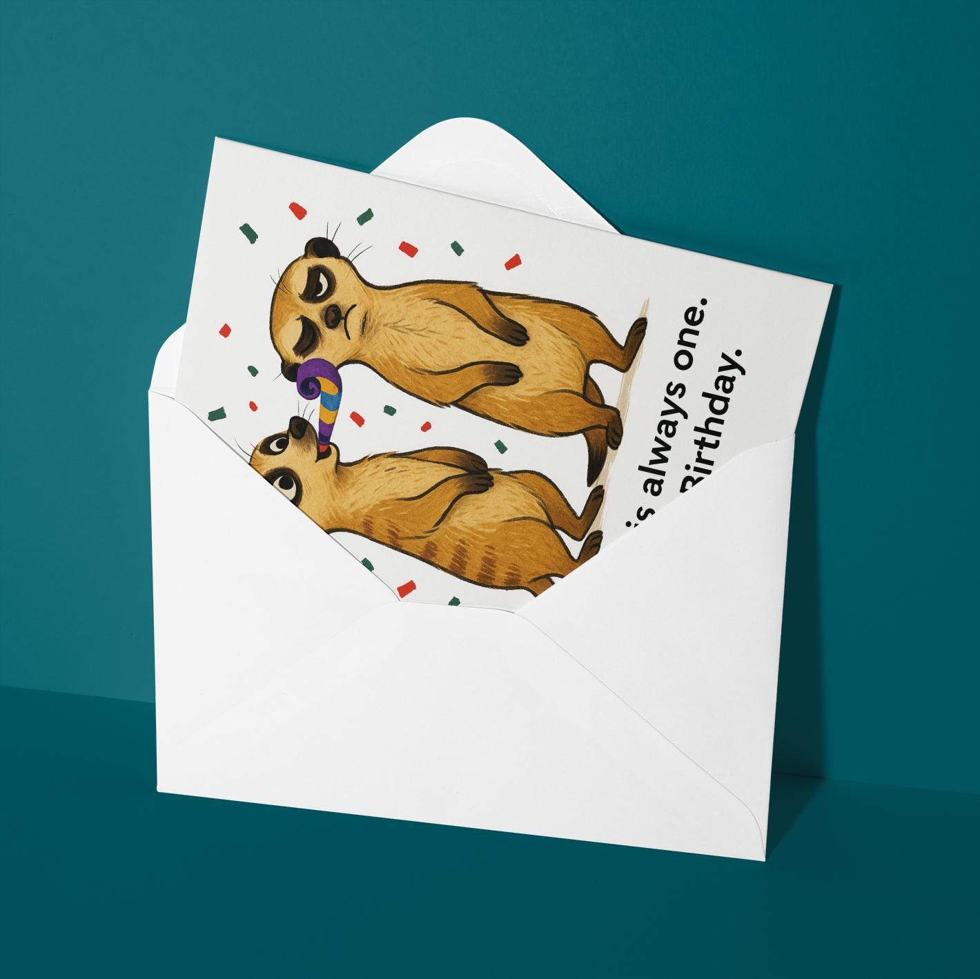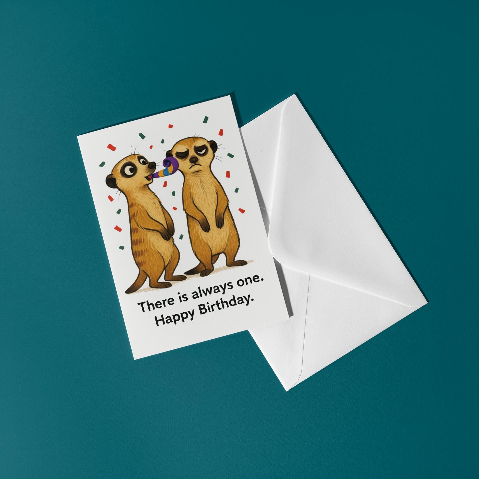 BLANK INTERIOR FOR A PERSONAL TOUCH: Our Party Meerkats - There is always one. Happy Birthday card and other whimsical designs feature a blank interior, giving you ample space to write a personal message from the heart. Perfect for any occasion, each card comes with a matching white envelope, making it easy to send your unique sentiments to loved ones.