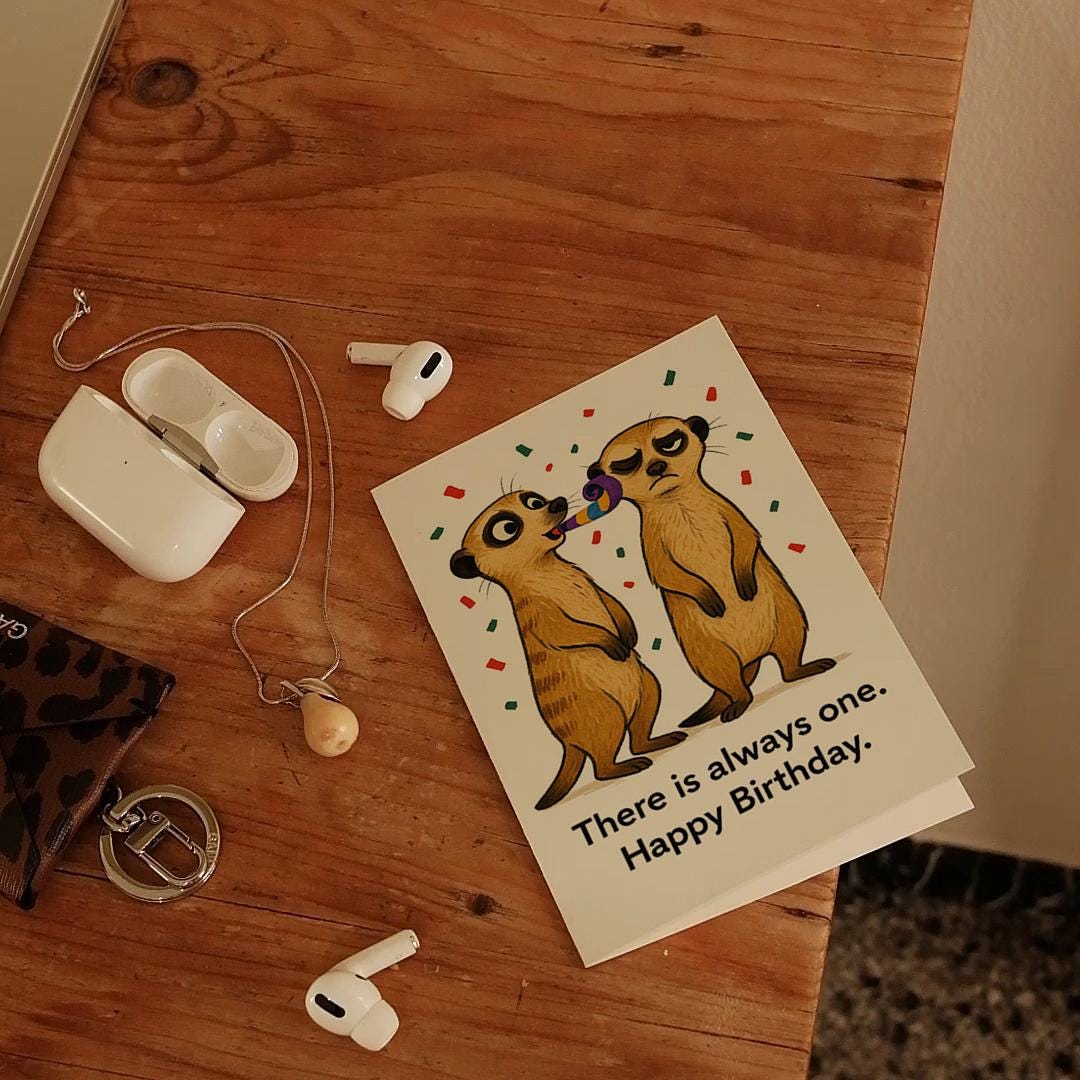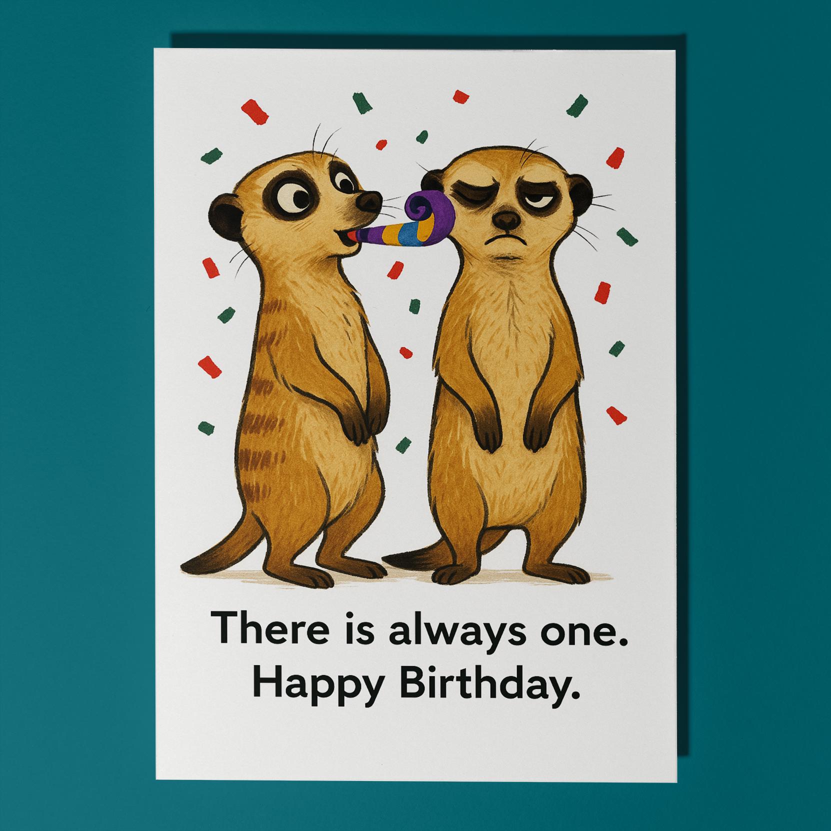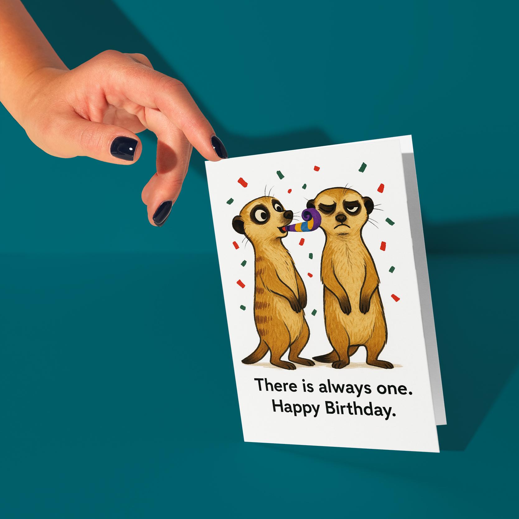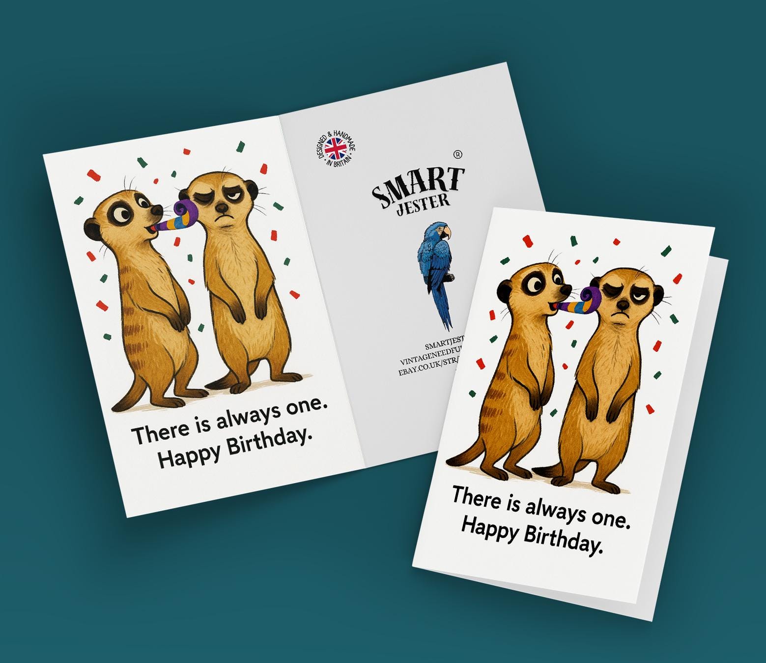 BLANK INTERIOR FOR A PERSONAL TOUCH: Our Party Meerkats - There is always one. Happy Birthday card and other whimsical designs feature a blank interior, giving you ample space to write a personal message from the heart. Perfect for any occasion, each card comes with a matching white envelope, making it easy to send your unique sentiments to loved ones.