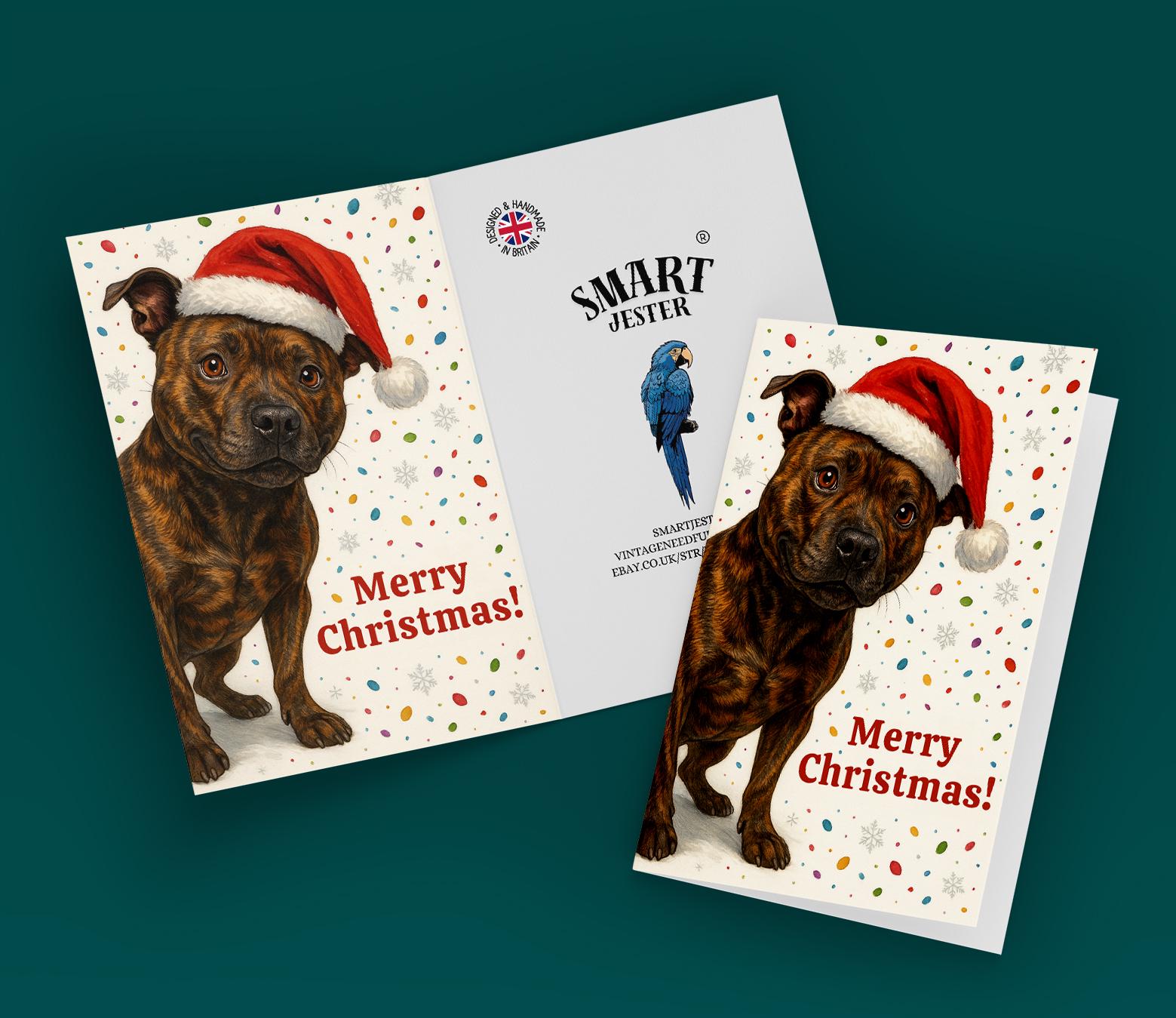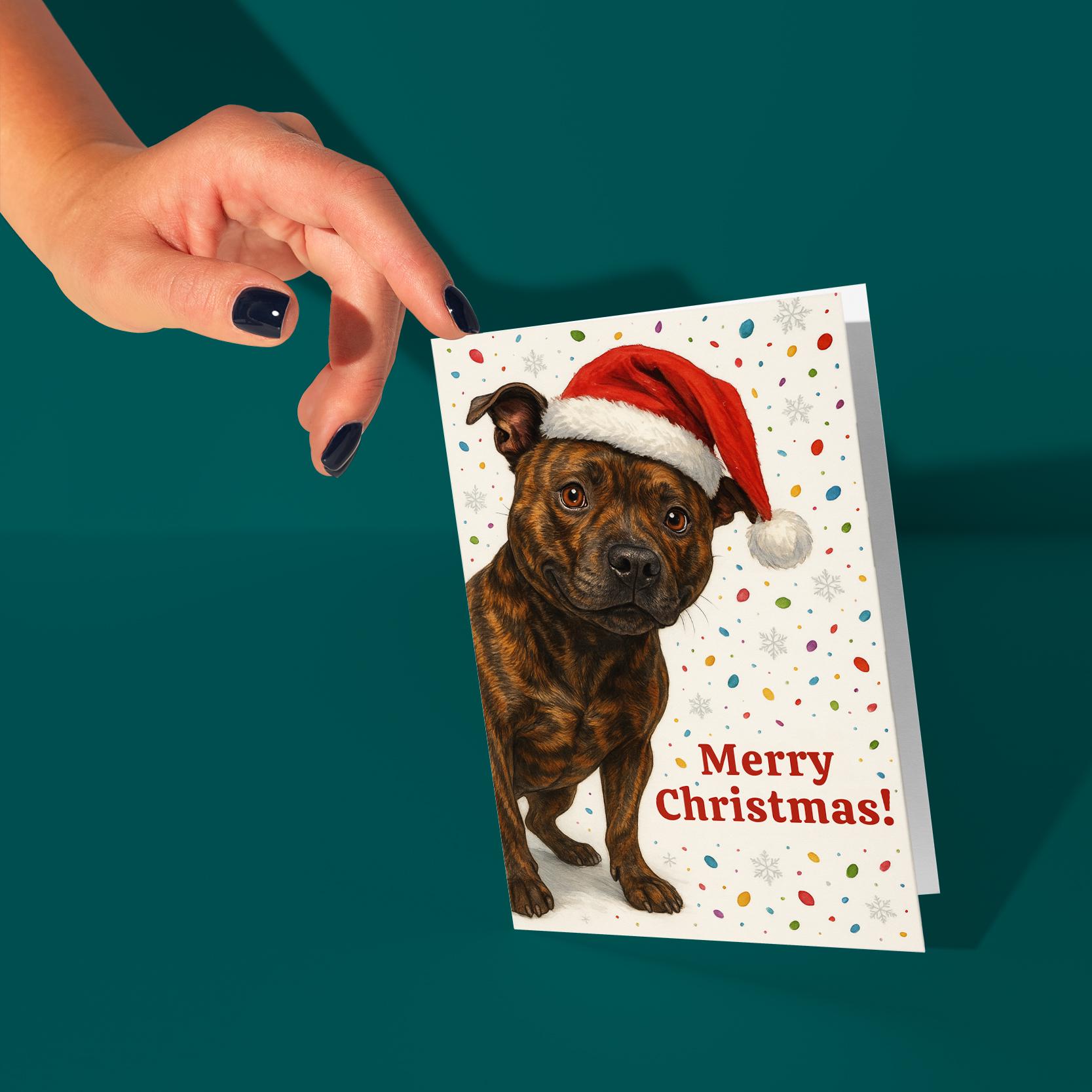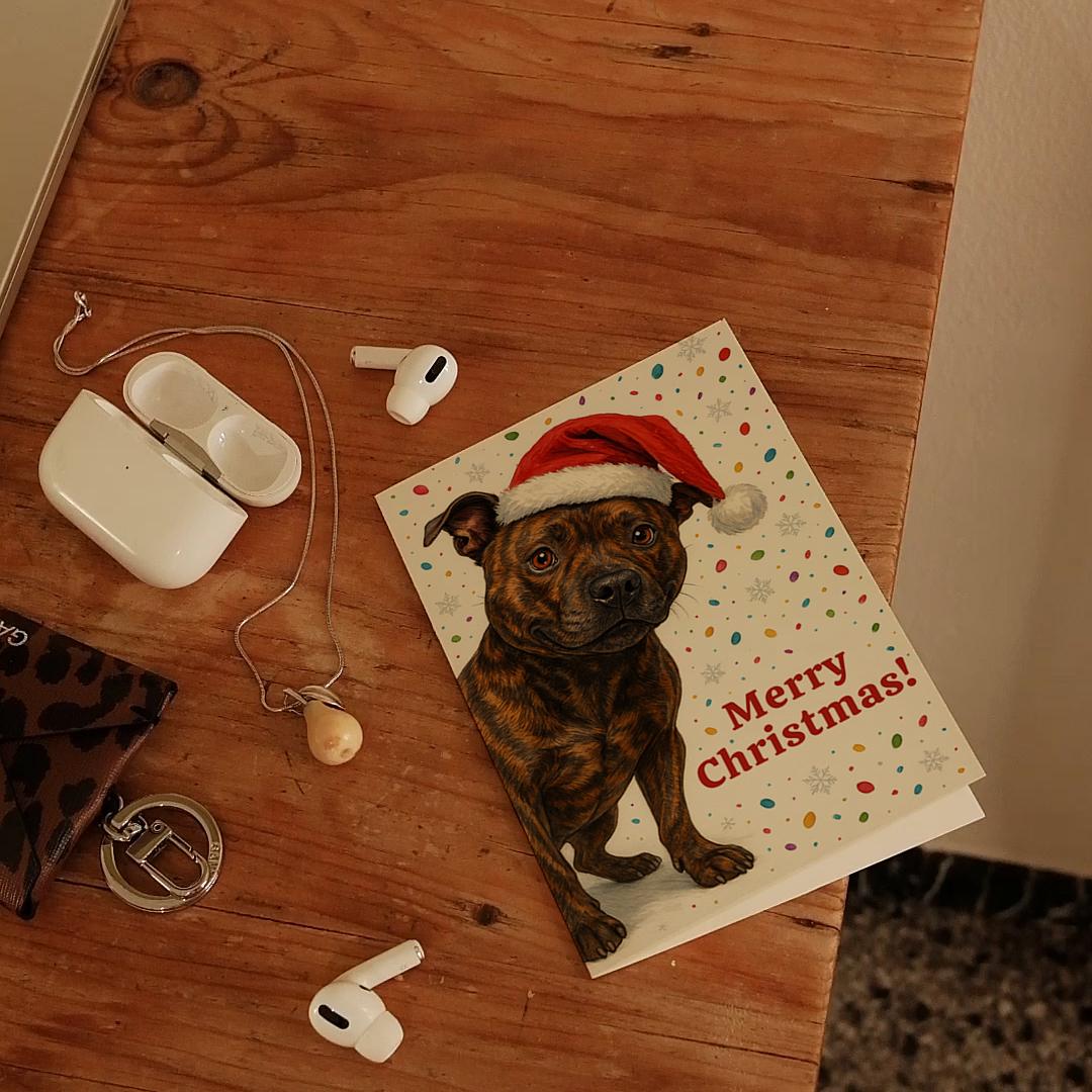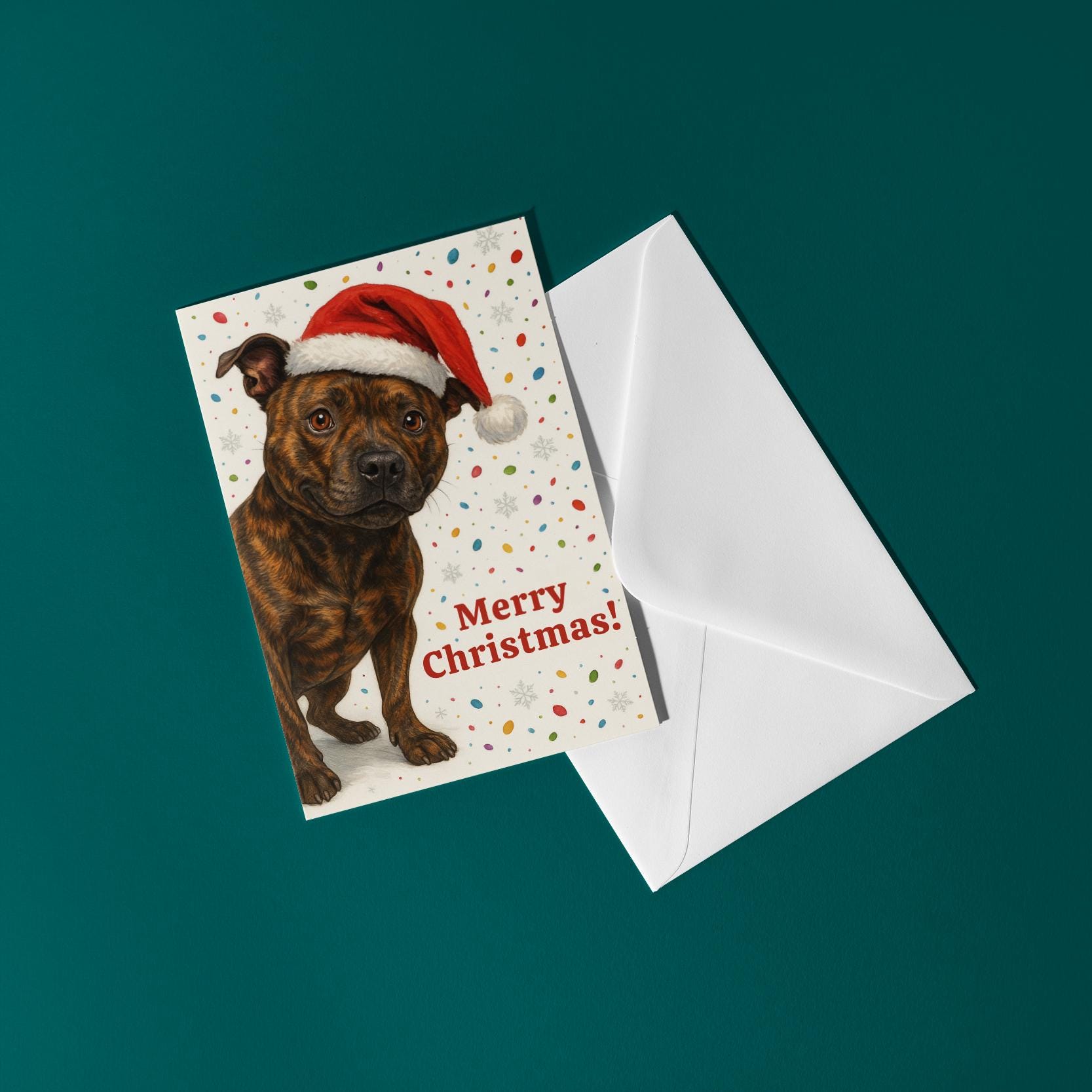 BLANK INTERIOR FOR A PERSONAL TOUCH: Part of the - Dog Breeds Collection - Don’t Look Away Collection - Staffordshire Bull Terrier Dog - and that “are you really going to eat that?” look - Merry Christmas! Card and other whimsical designs feature a blank interior, giving you ample space to write a personal message from the heart. Perfect for any occasion, each card comes with a matching white envelope, making it easy to send your unique sentiments to loved ones.