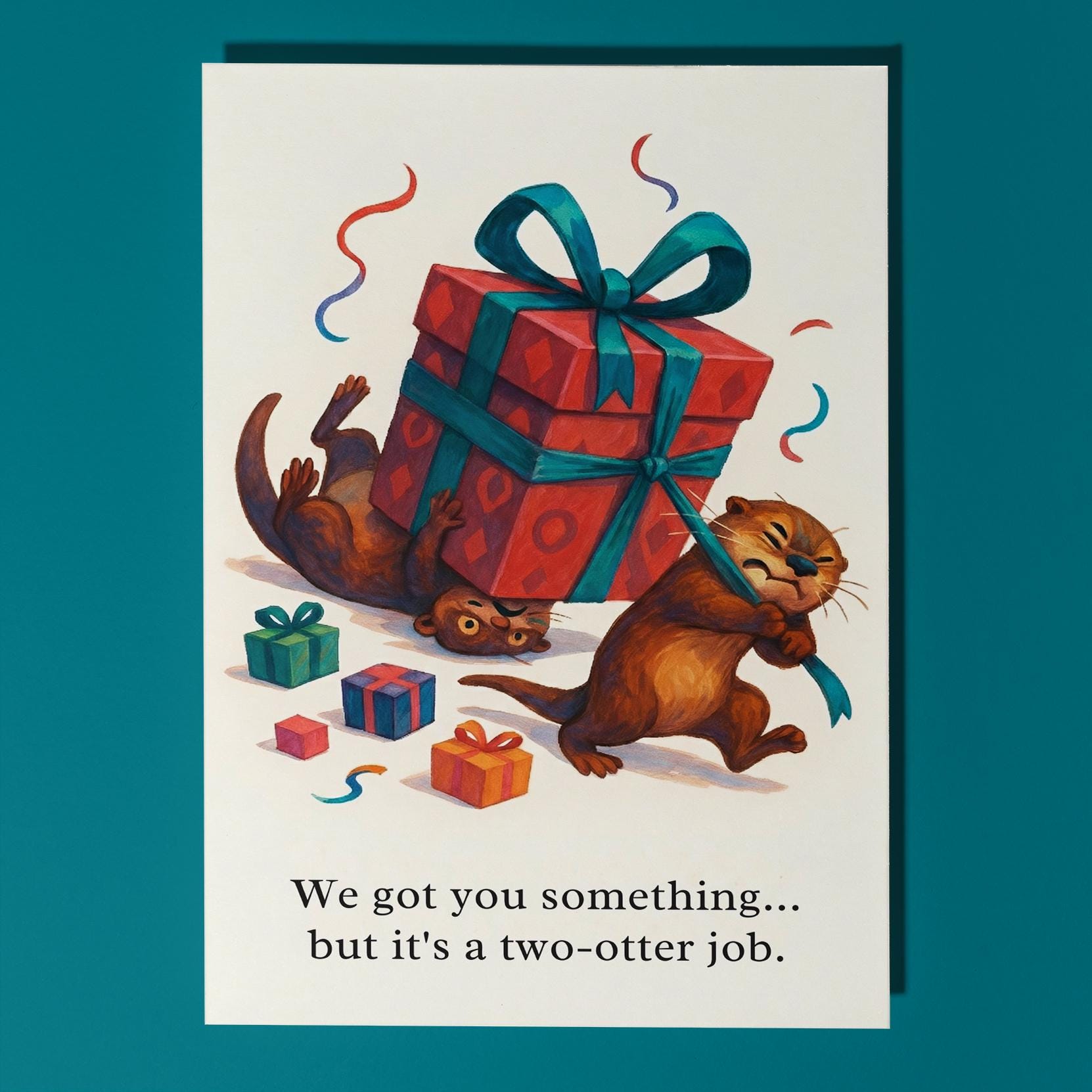 BLANK INTERIOR FOR A PERSONAL TOUCH: Our Two-Otter Birthday - We got you something but it's a two otter job Birthday! card and other whimsical designs feature a blank interior, giving you ample space to write a personal message from the heart. Perfect for any occasion, each card comes with a matching white envelope, making it easy to send your unique sentiments to loved ones.
