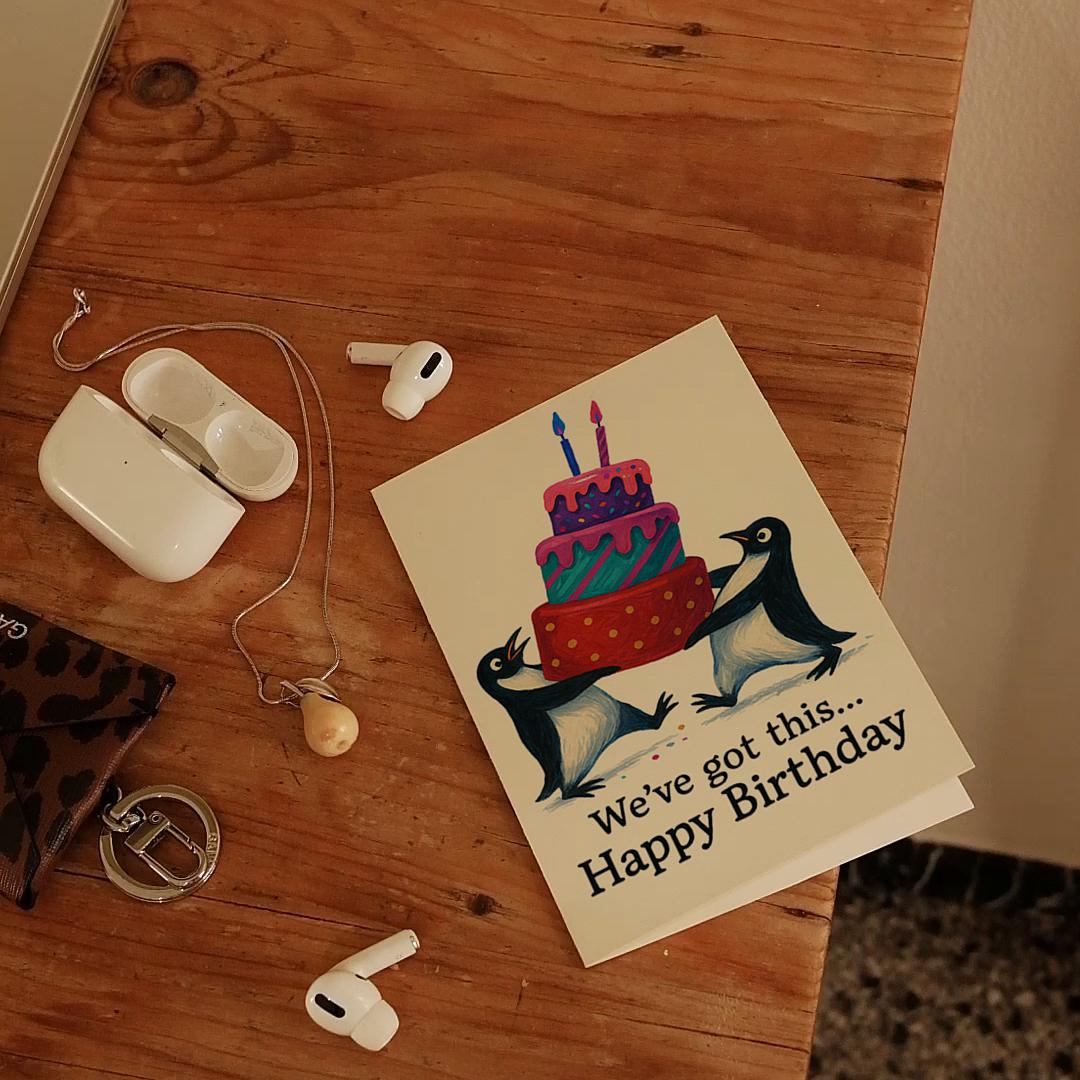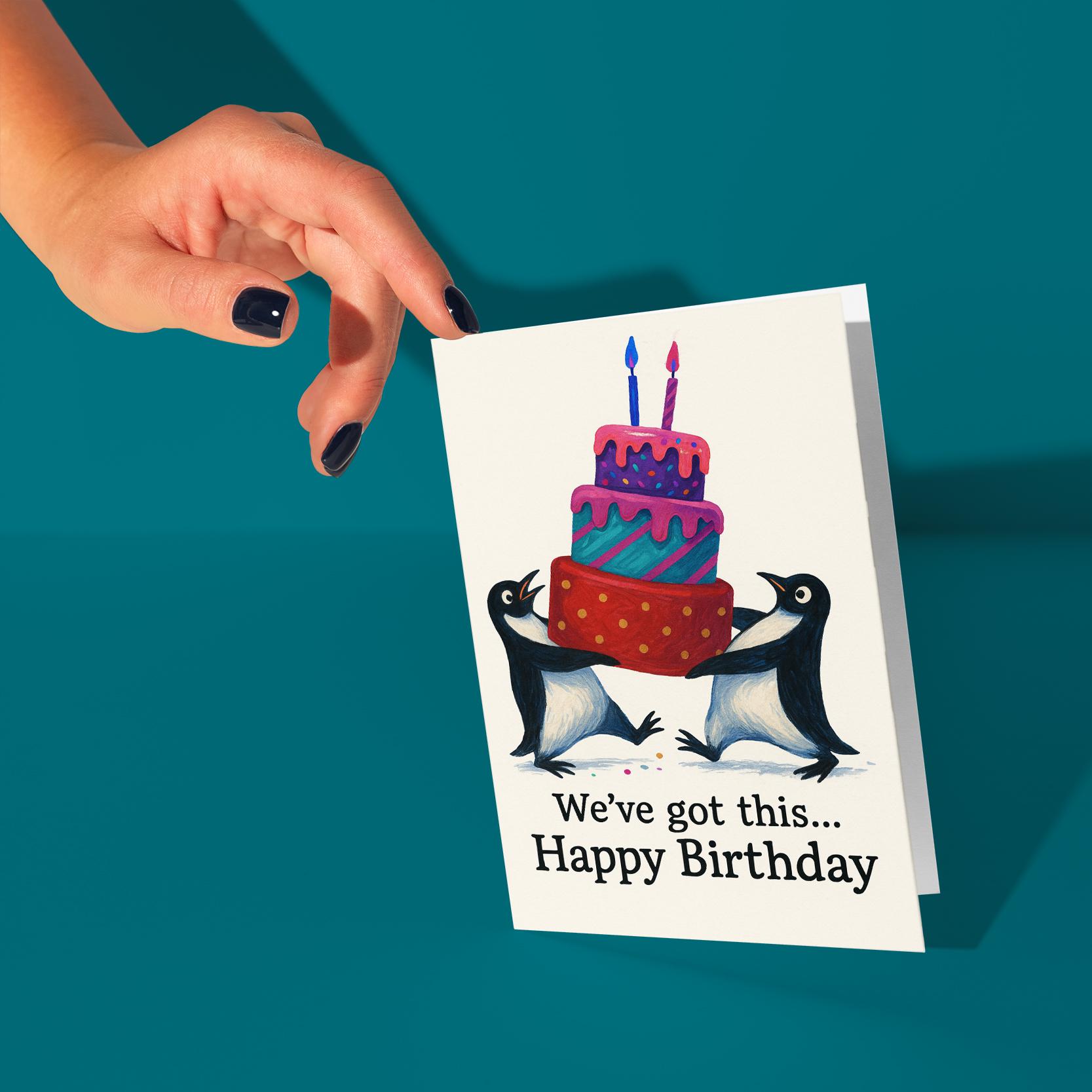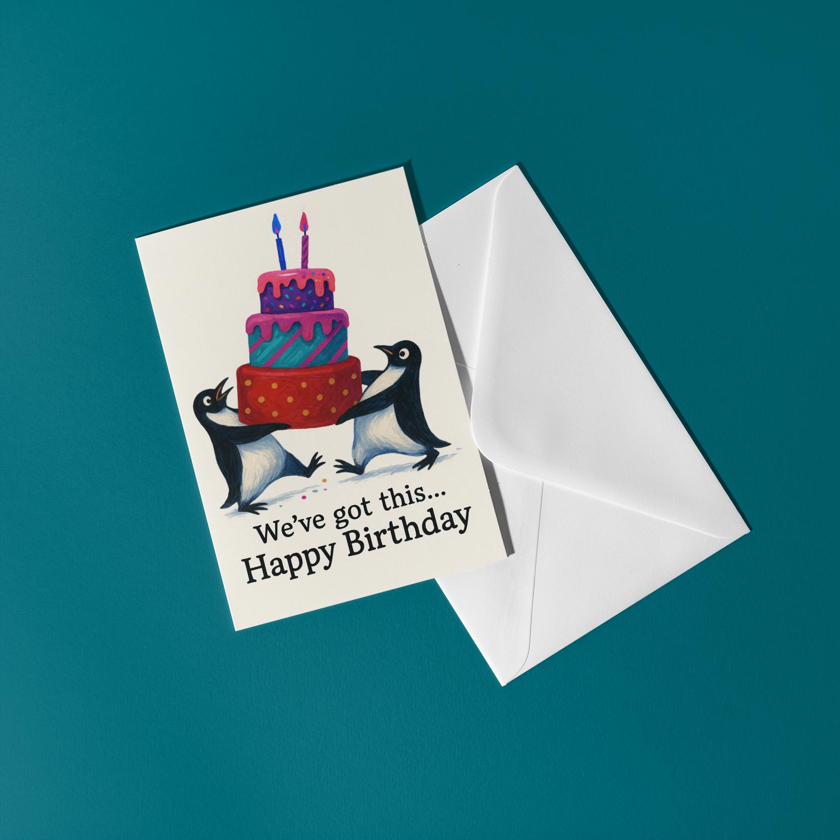 BLANK INTERIOR FOR A PERSONAL TOUCH: Our Penguin Birthday Team - We've got this... Happy Birthday card and other whimsical designs feature a blank interior, giving you ample space to write a personal message from the heart. Perfect for any occasion, each card comes with a matching white envelope, making it easy to send your unique sentiments to loved ones.