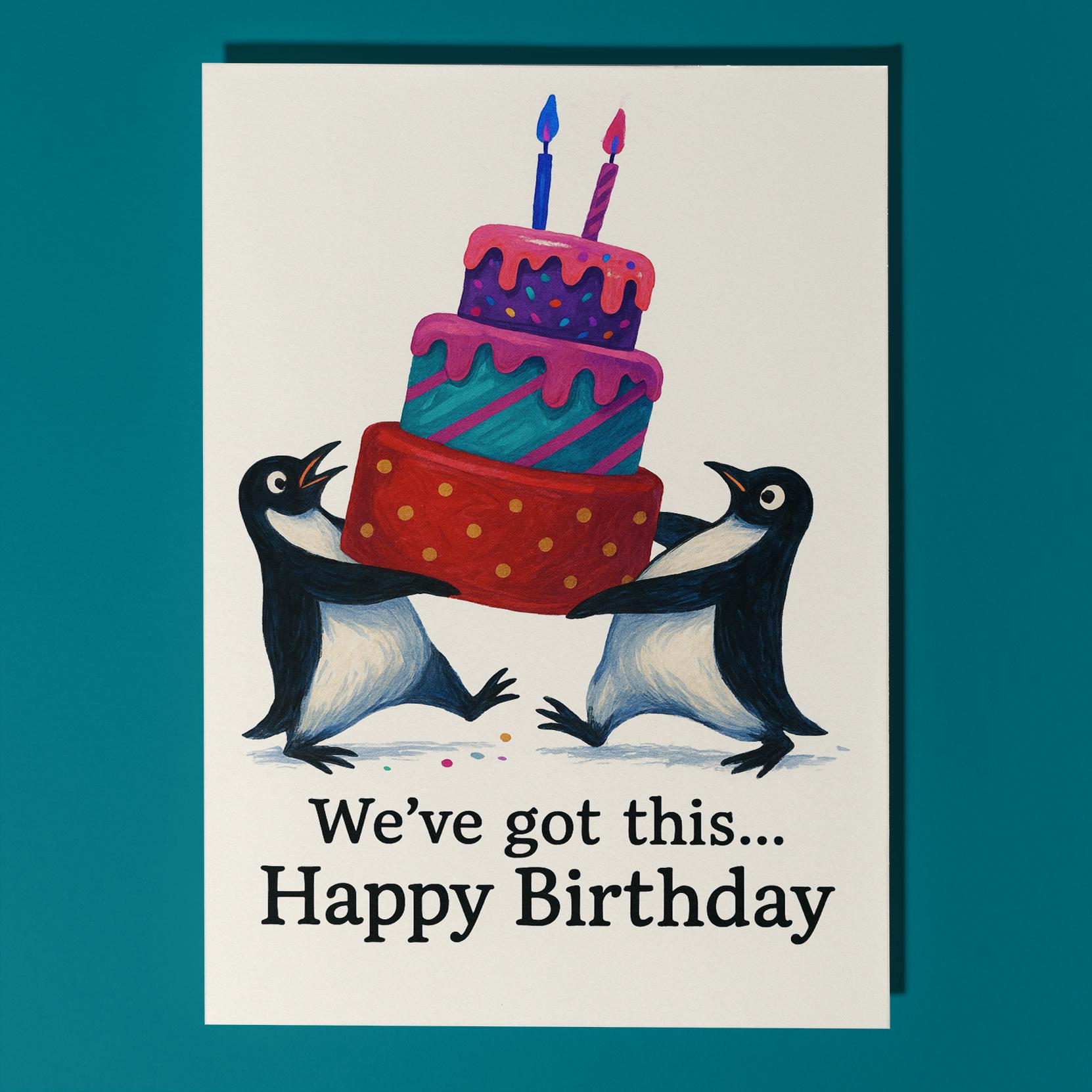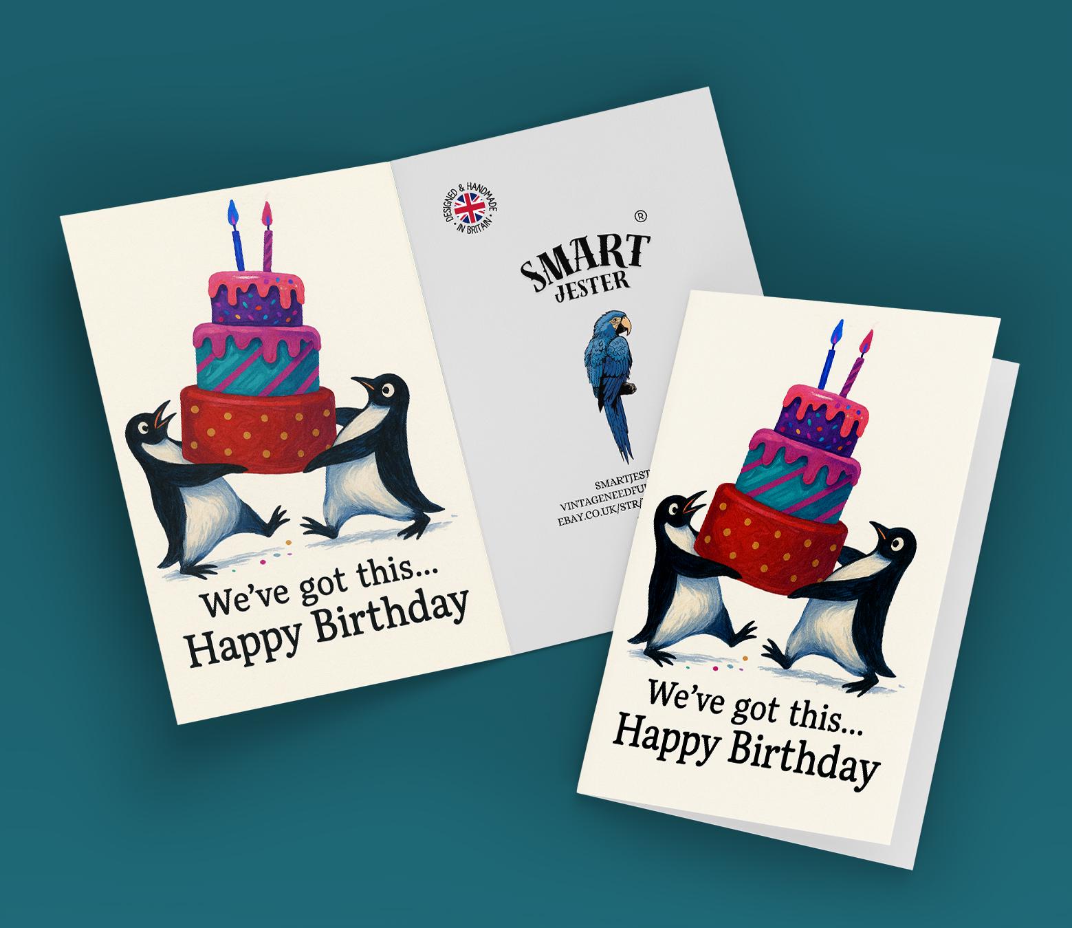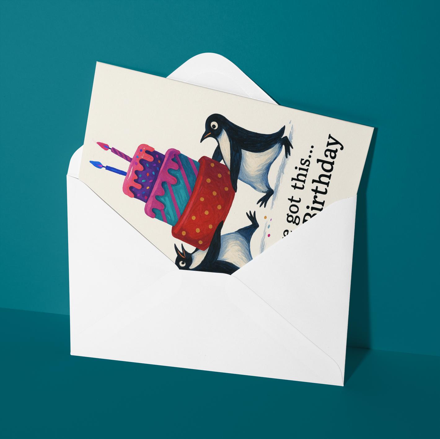 BLANK INTERIOR FOR A PERSONAL TOUCH: Our Penguin Birthday Team - We've got this... Happy Birthday card and other whimsical designs feature a blank interior, giving you ample space to write a personal message from the heart. Perfect for any occasion, each card comes with a matching white envelope, making it easy to send your unique sentiments to loved ones.