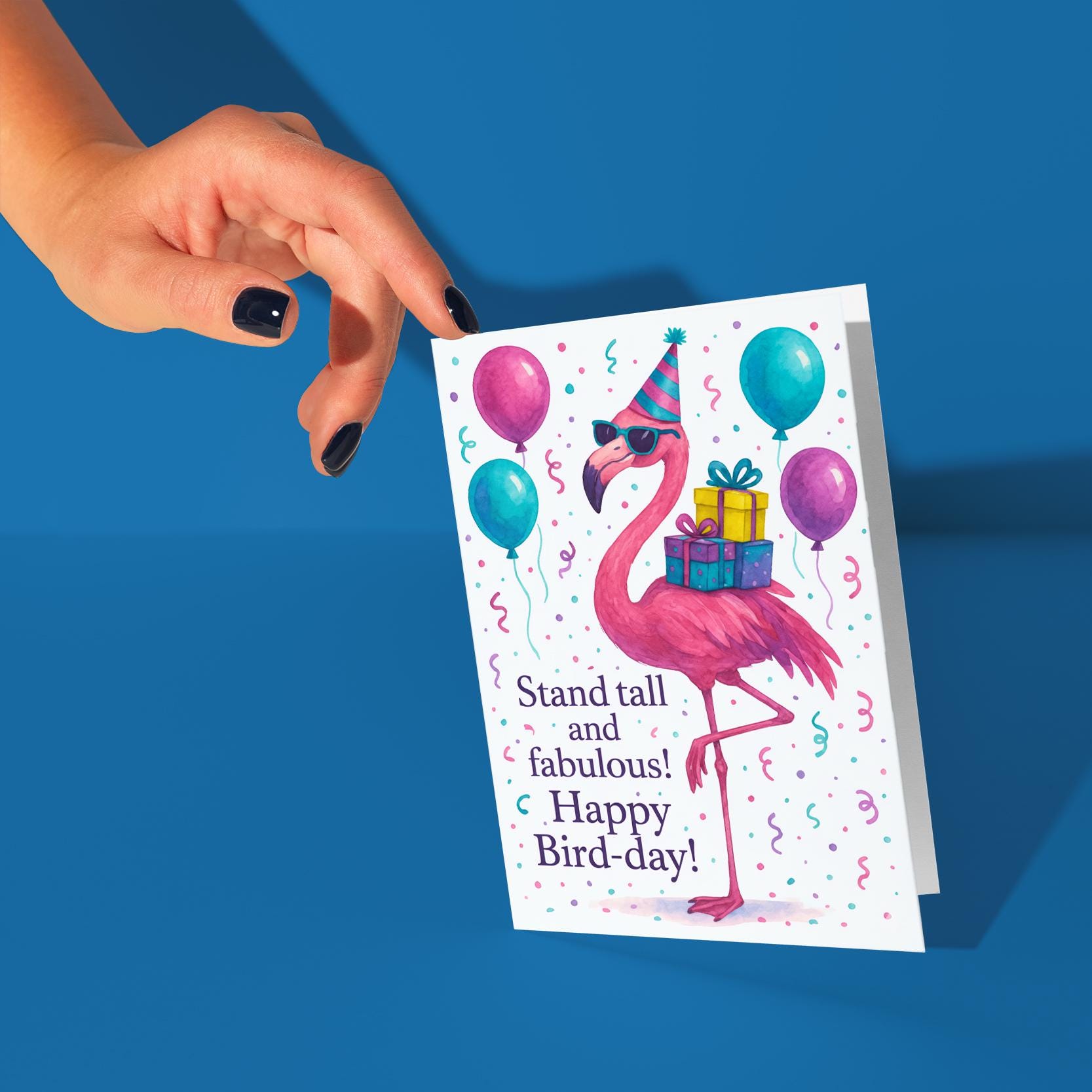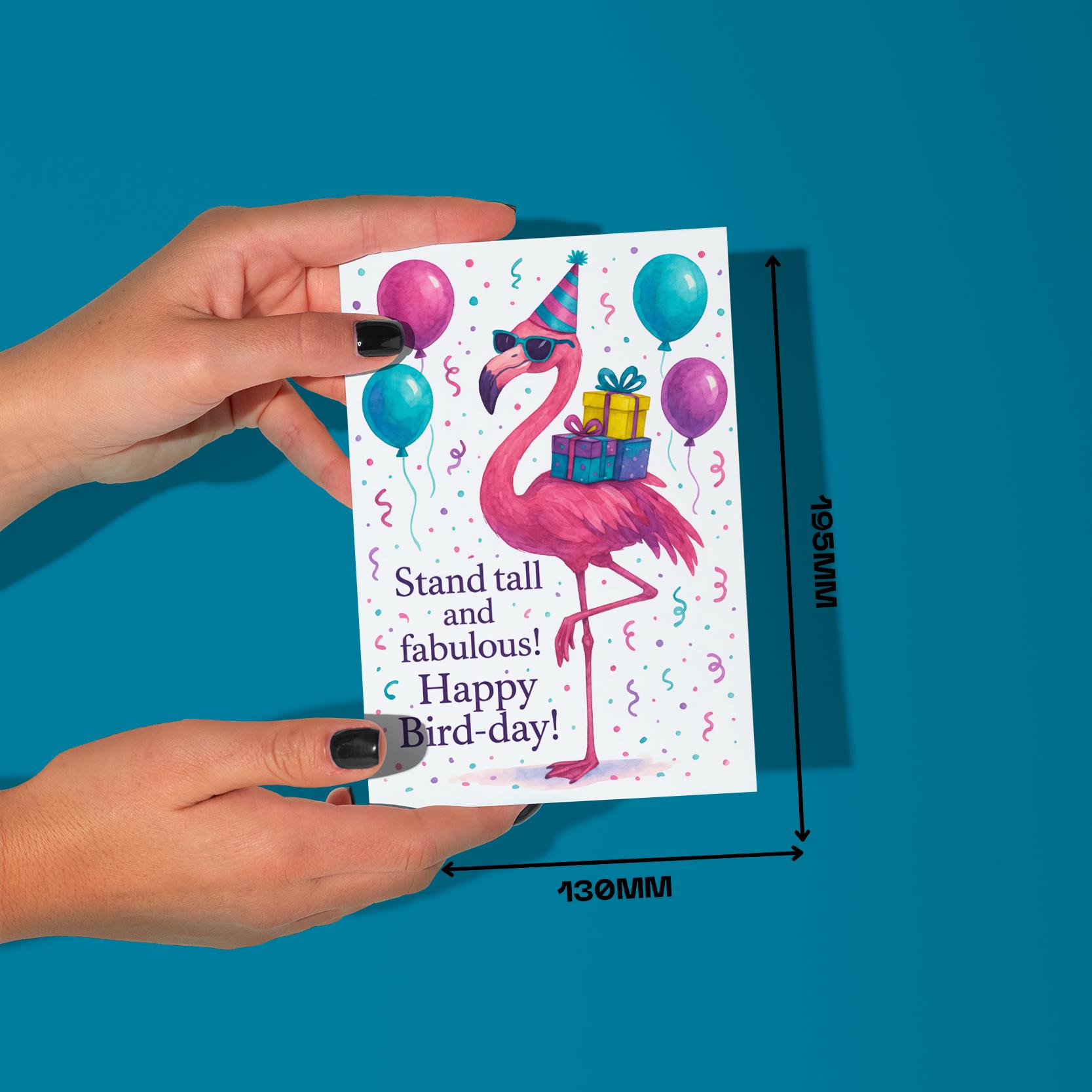 BLANK INTERIOR FOR A PERSONAL TOUCH: Our Flamingo Party Vibes - Stand Tall and fabulous Happy Bird - day! Birthday card and other whimsical designs feature a blank interior, giving you ample space to write a personal message from the heart. Perfect for any occasion, each card comes with a matching white envelope, making it easy to send your unique sentiments to loved ones.