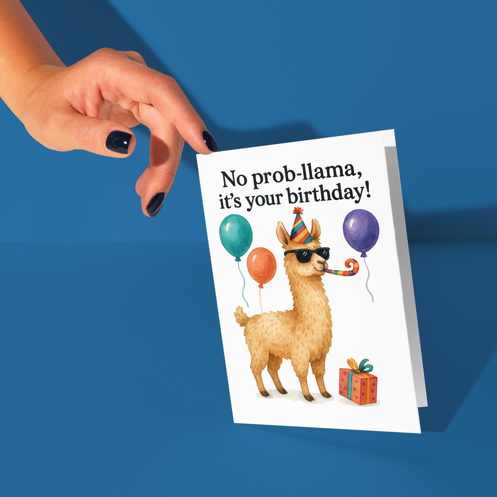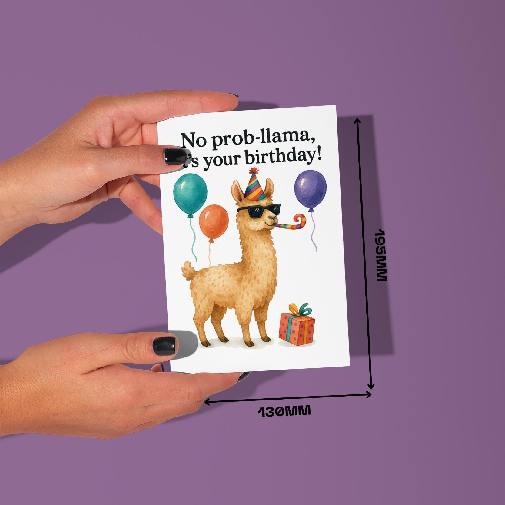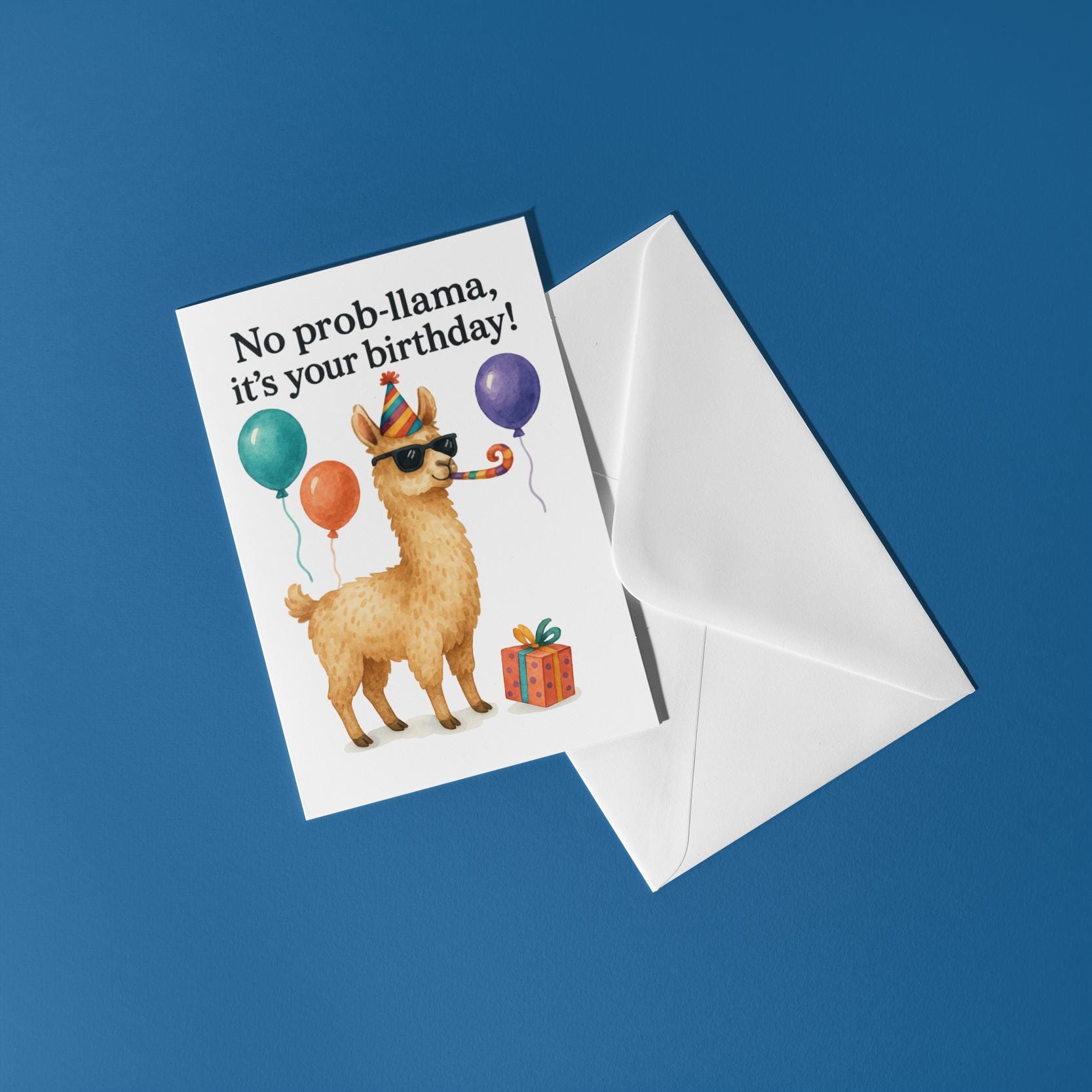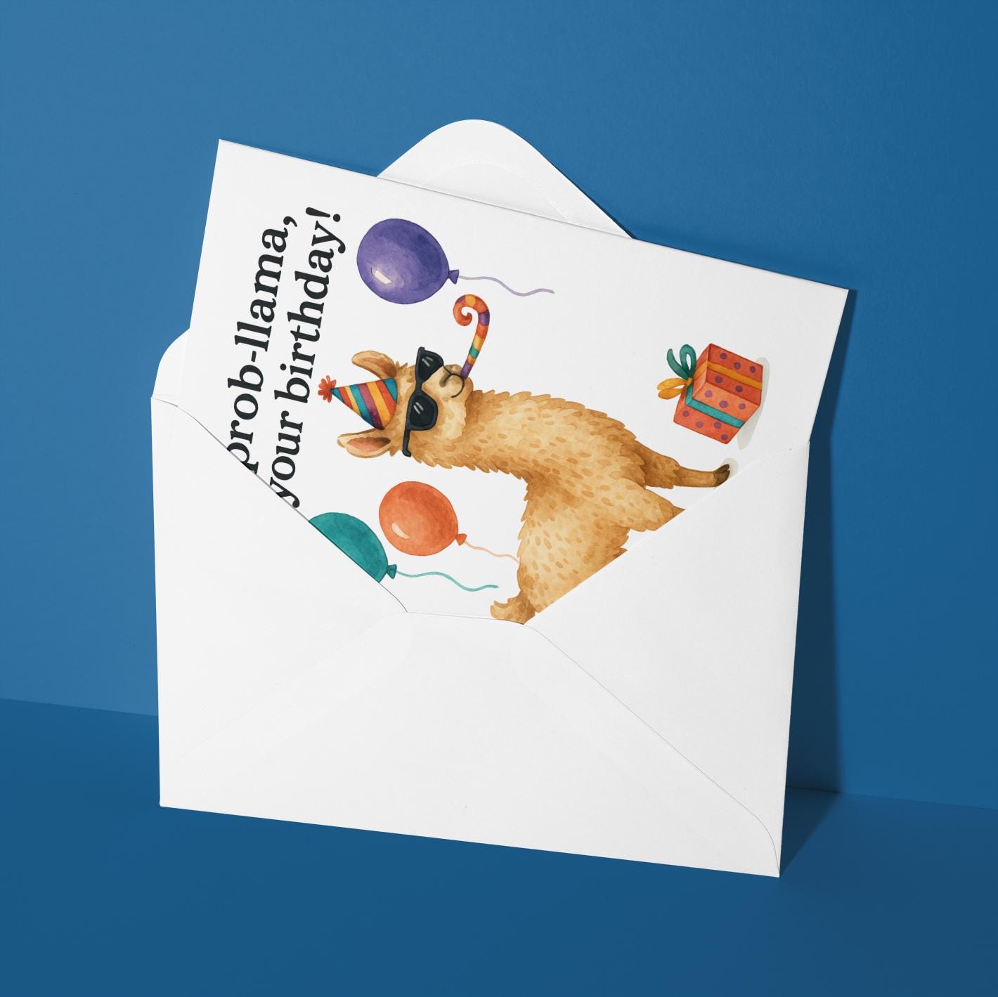 BLANK INTERIOR FOR A PERSONAL TOUCH: Our Party Llama Vibes - No probllama it's your birthday! card and other whimsical designs feature a blank interior, giving you ample space to write a personal message from the heart. Perfect for any occasion, each card comes with a matching white envelope, making it easy to send your unique sentiments to loved ones.