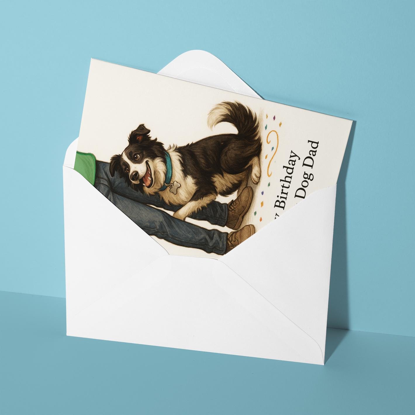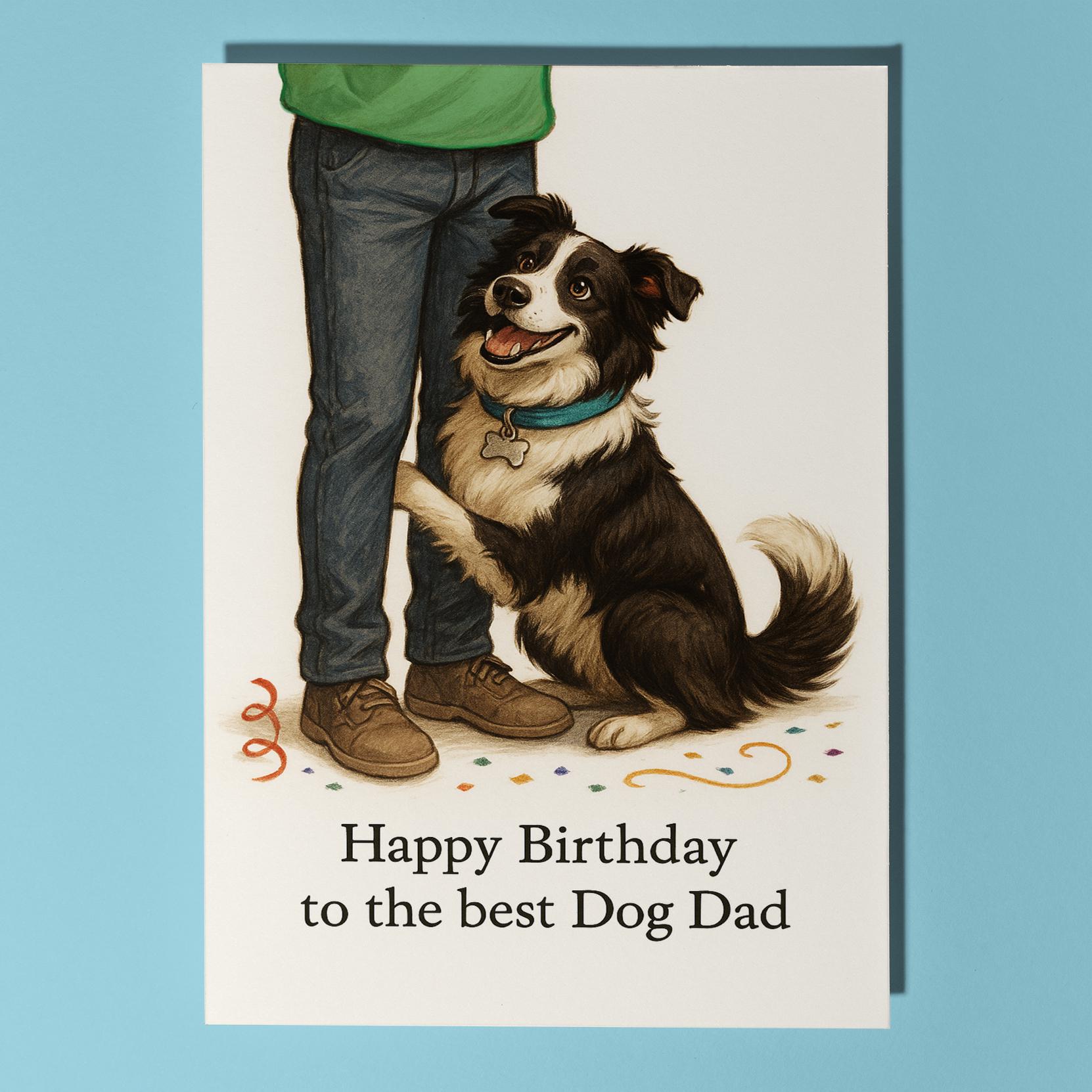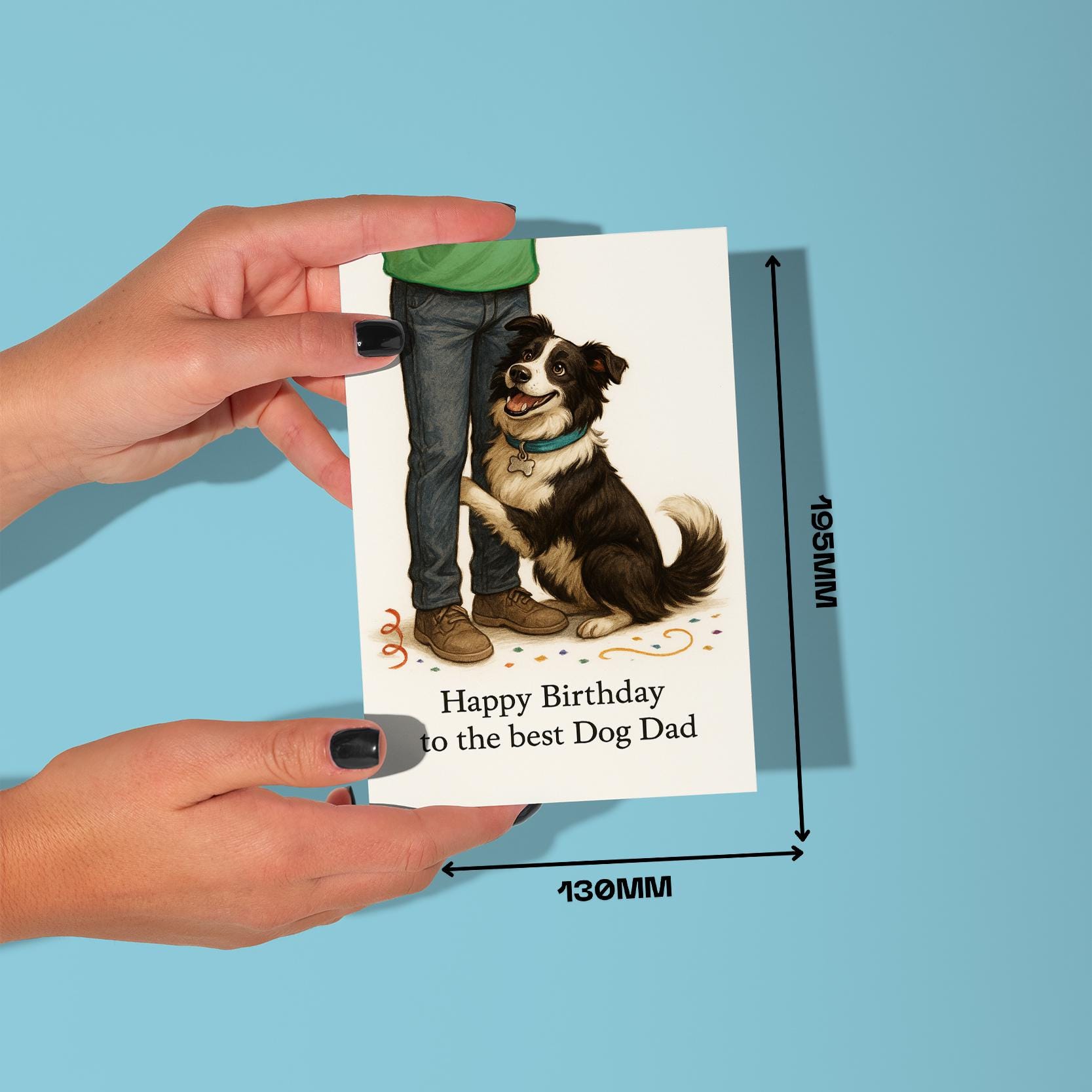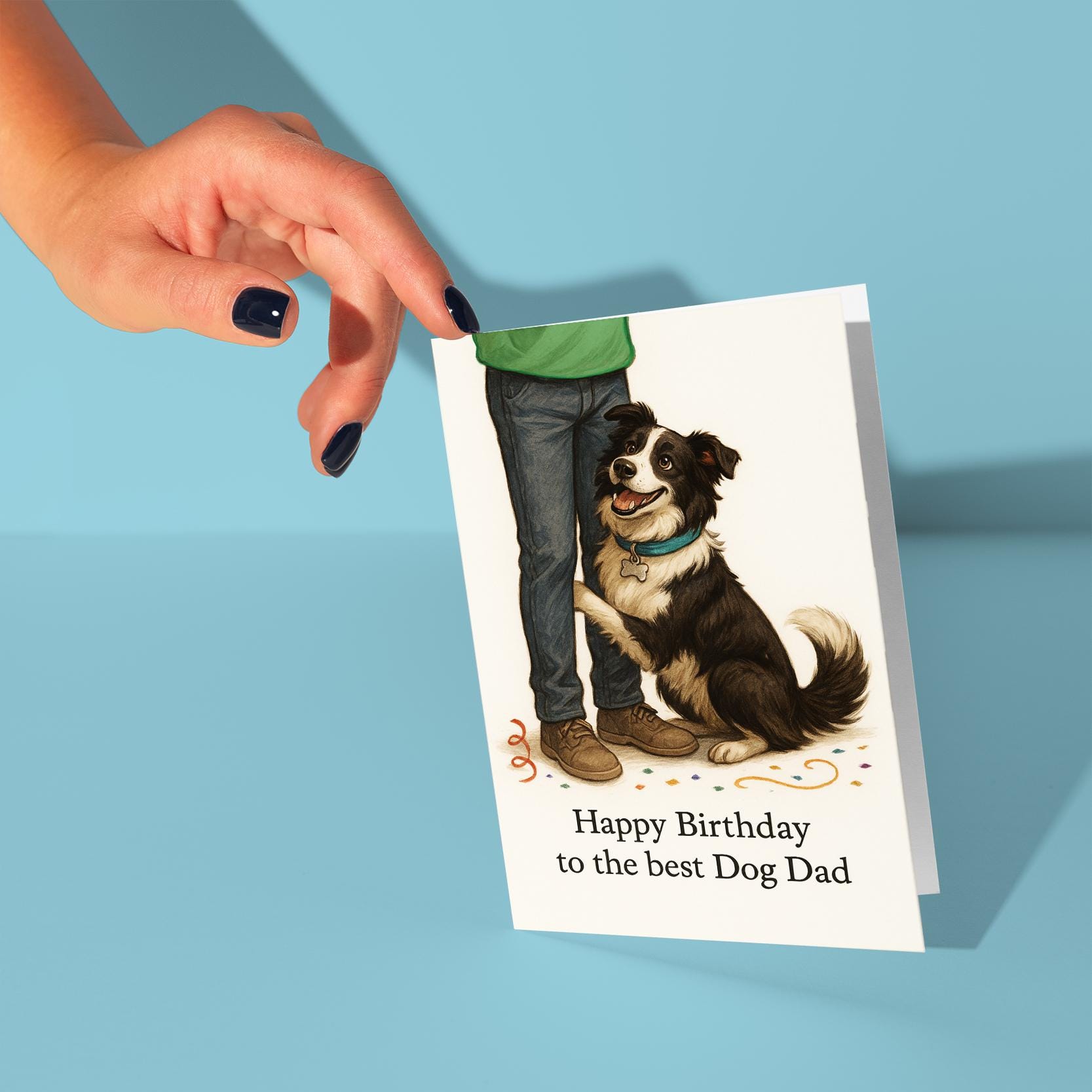 BLANK INTERIOR FOR A PERSONAL TOUCH: My Human Is the Best Collection - Border collie Happy Birthday to the best dog dad card. A heart-melting series of dog-themed greeting cards celebrating the special bond between pups and their favourite humans. Each design shows adorable doggos expressing pure love, loyalty and joy - perfect for Dog Mums, Dog Dads, and everyone who has a furry best friend - and other whimsical designs feature a blank interior, giving you ample space to write a personal message from the heart. Perfect for any occasion, each card comes with a matching white envelope, making it easy to send your unique sentiments to loved ones.