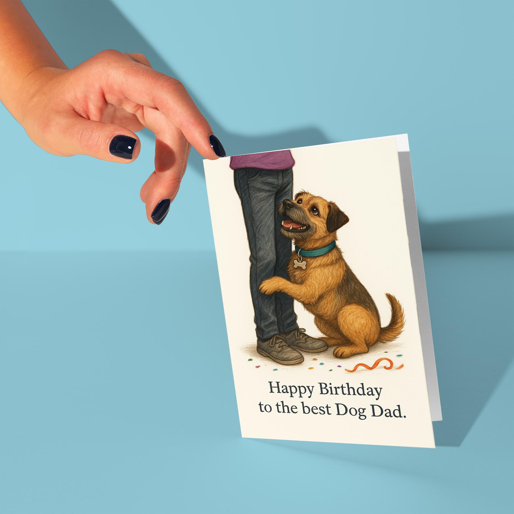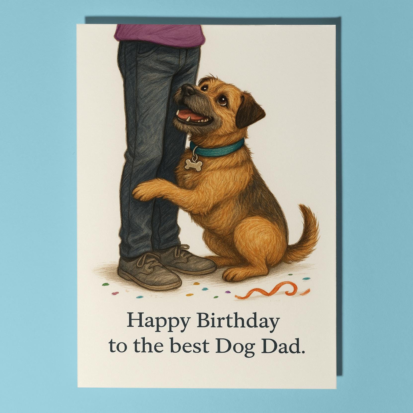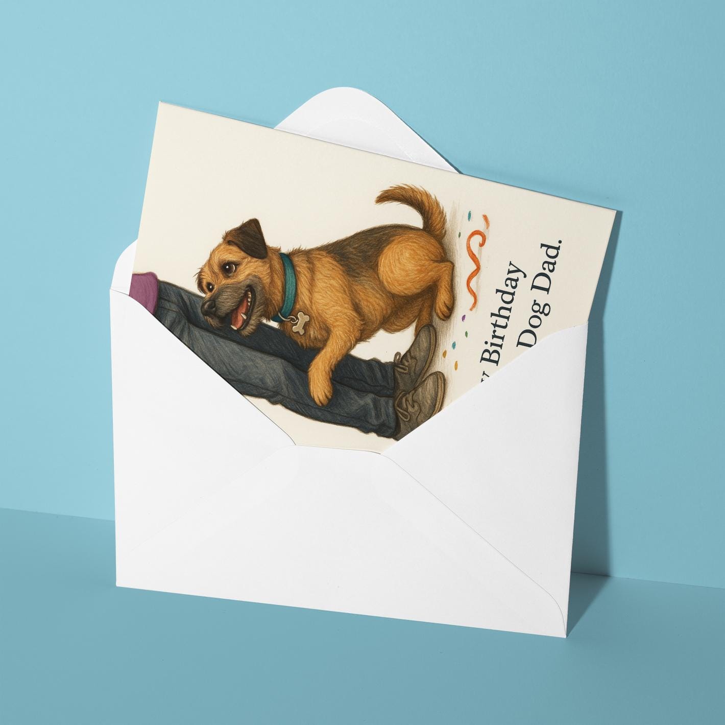 BLANK INTERIOR FOR A PERSONAL TOUCH: My Human Is the Best Collection - Border Terrier Happy Birthday to the best dog dad card. A heart-melting series of dog-themed greeting cards celebrating the special bond between pups and their favourite humans. Each design shows adorable doggos expressing pure love, loyalty and joy - perfect for Dog Mums, Dog Dads, and everyone who has a furry best friend - and other whimsical designs feature a blank interior, giving you ample space to write a personal message from the heart. Perfect for any occasion, each card comes with a matching white envelope, making it easy to send your unique sentiments to loved ones.