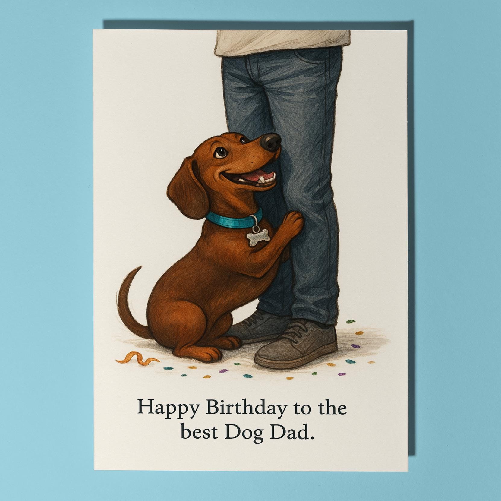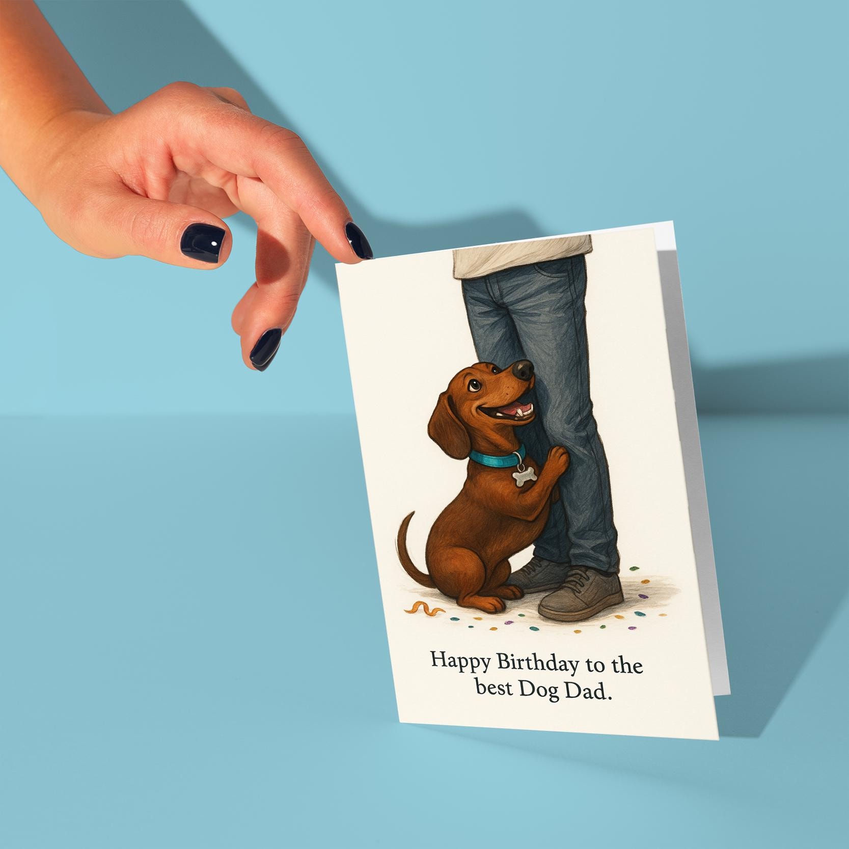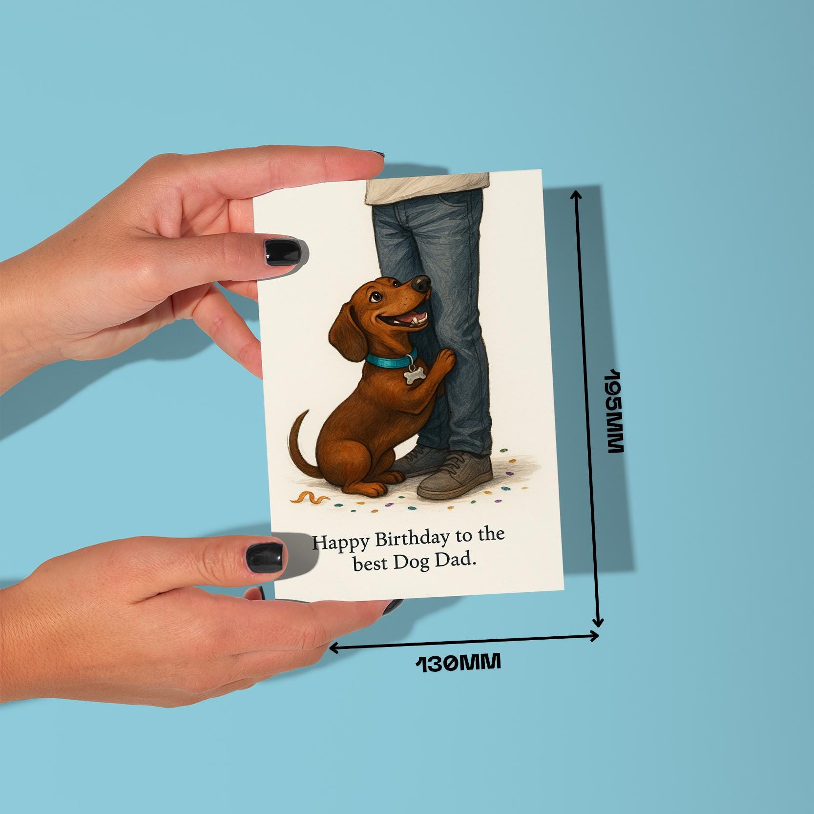 BLANK INTERIOR FOR A PERSONAL TOUCH: My Human Is the Best Collection - Dachshund dog Happy Birthday to the best dog dad card. A heart-melting series of dog-themed greeting cards celebrating the special bond between pups and their favourite humans. Each design shows adorable doggos expressing pure love, loyalty and joy - perfect for Dog Mums, Dog Dads, and everyone who has a furry best friend - and other whimsical designs feature a blank interior, giving you ample space to write a personal message from the heart. Perfect for any occasion, each card comes with a matching white envelope, making it easy to send your unique sentiments to loved ones.