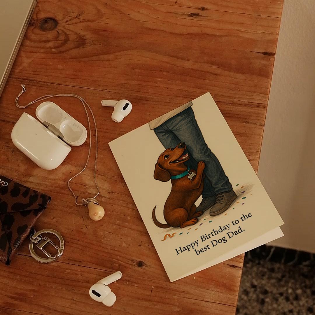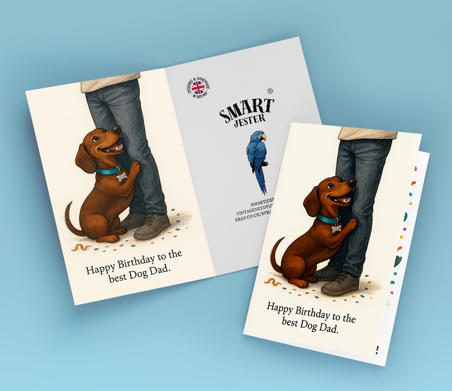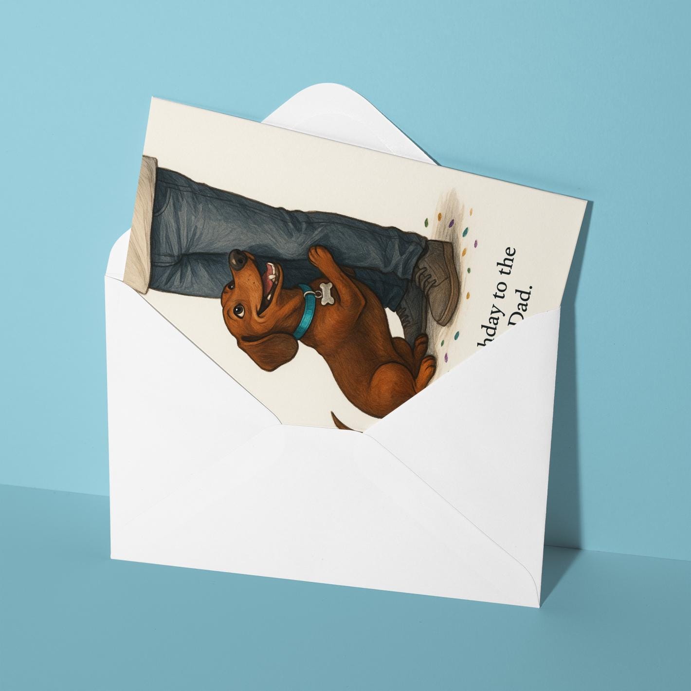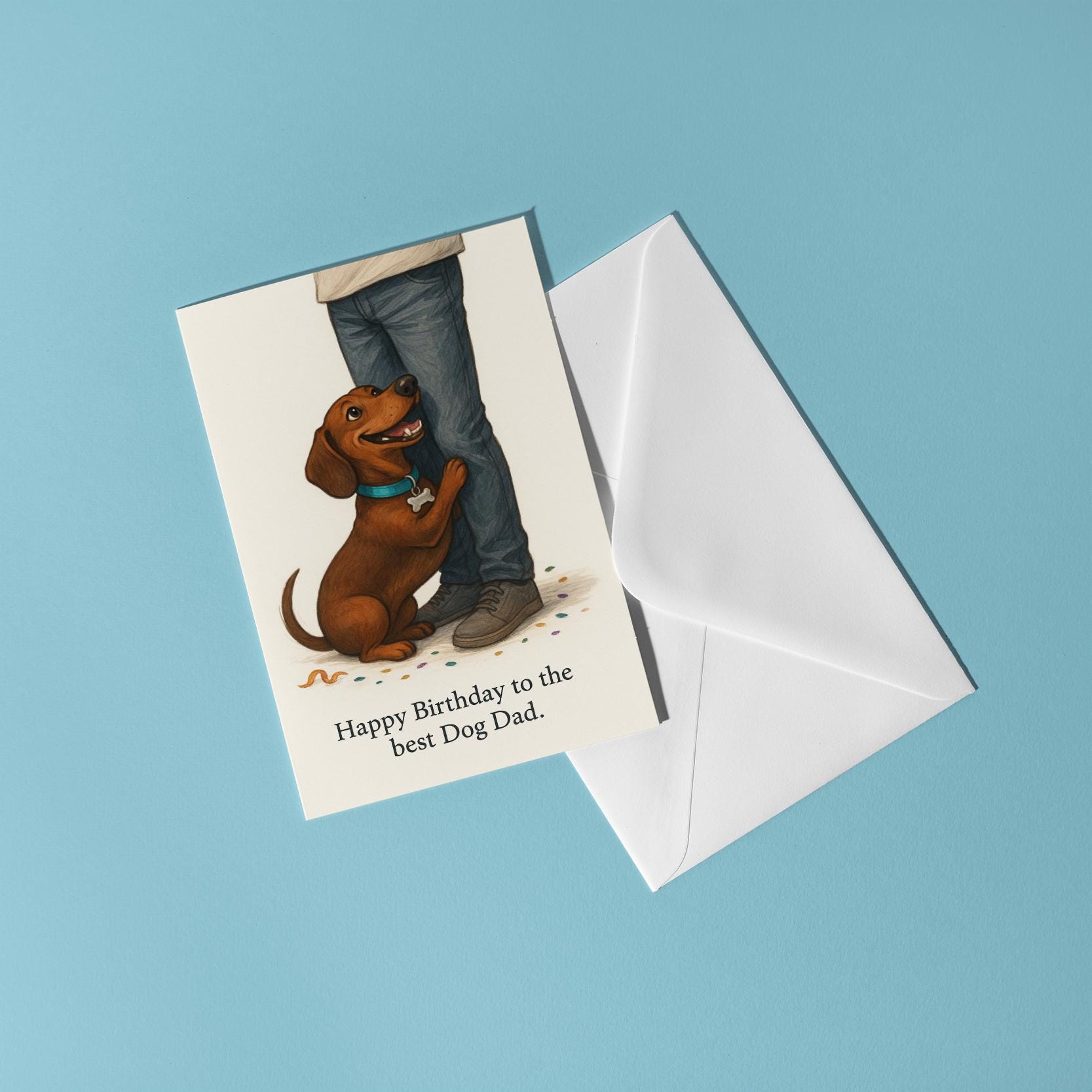BLANK INTERIOR FOR A PERSONAL TOUCH: My Human Is the Best Collection - Dachshund dog Happy Birthday to the best dog dad card. A heart-melting series of dog-themed greeting cards celebrating the special bond between pups and their favourite humans. Each design shows adorable doggos expressing pure love, loyalty and joy - perfect for Dog Mums, Dog Dads, and everyone who has a furry best friend - and other whimsical designs feature a blank interior, giving you ample space to write a personal message from the heart. Perfect for any occasion, each card comes with a matching white envelope, making it easy to send your unique sentiments to loved ones.