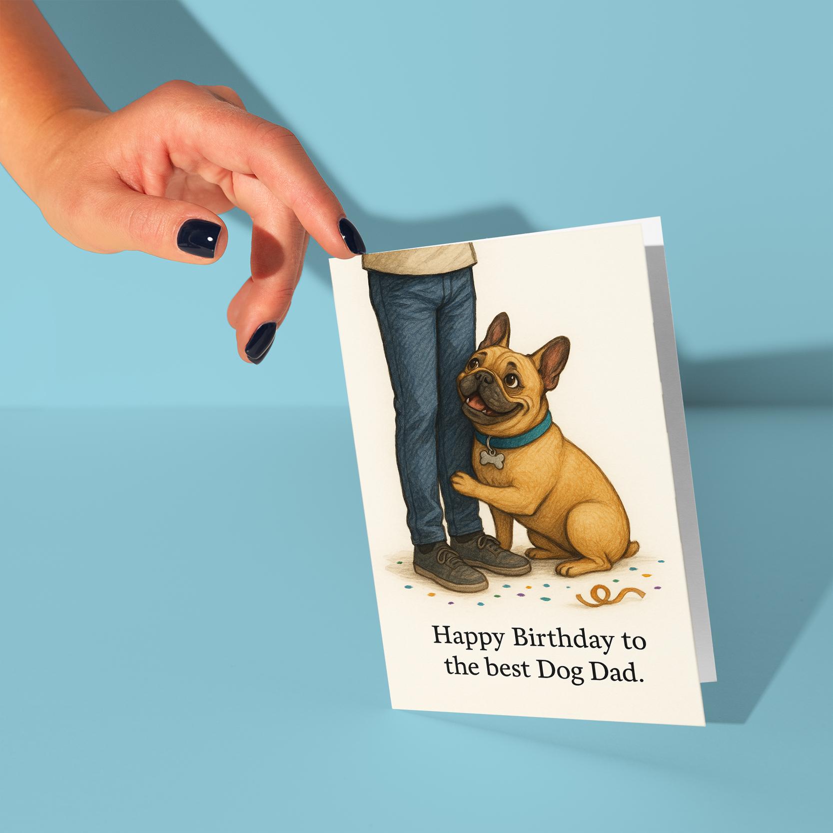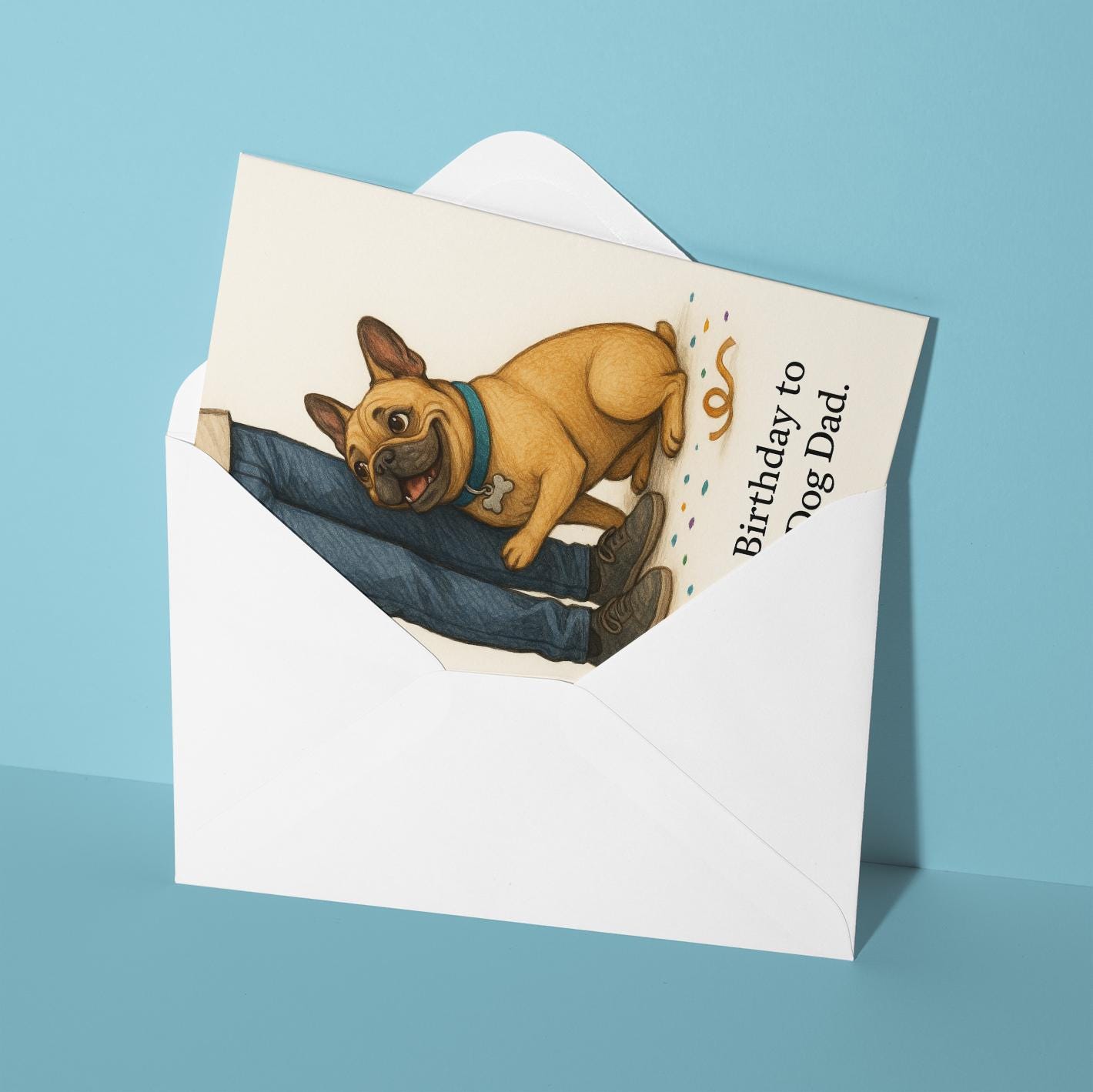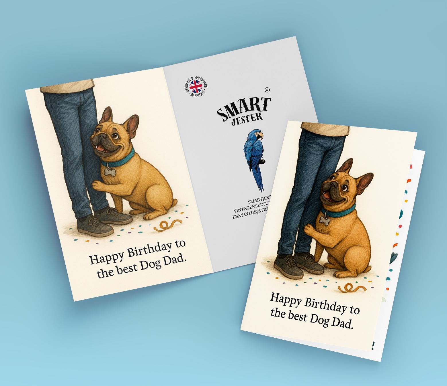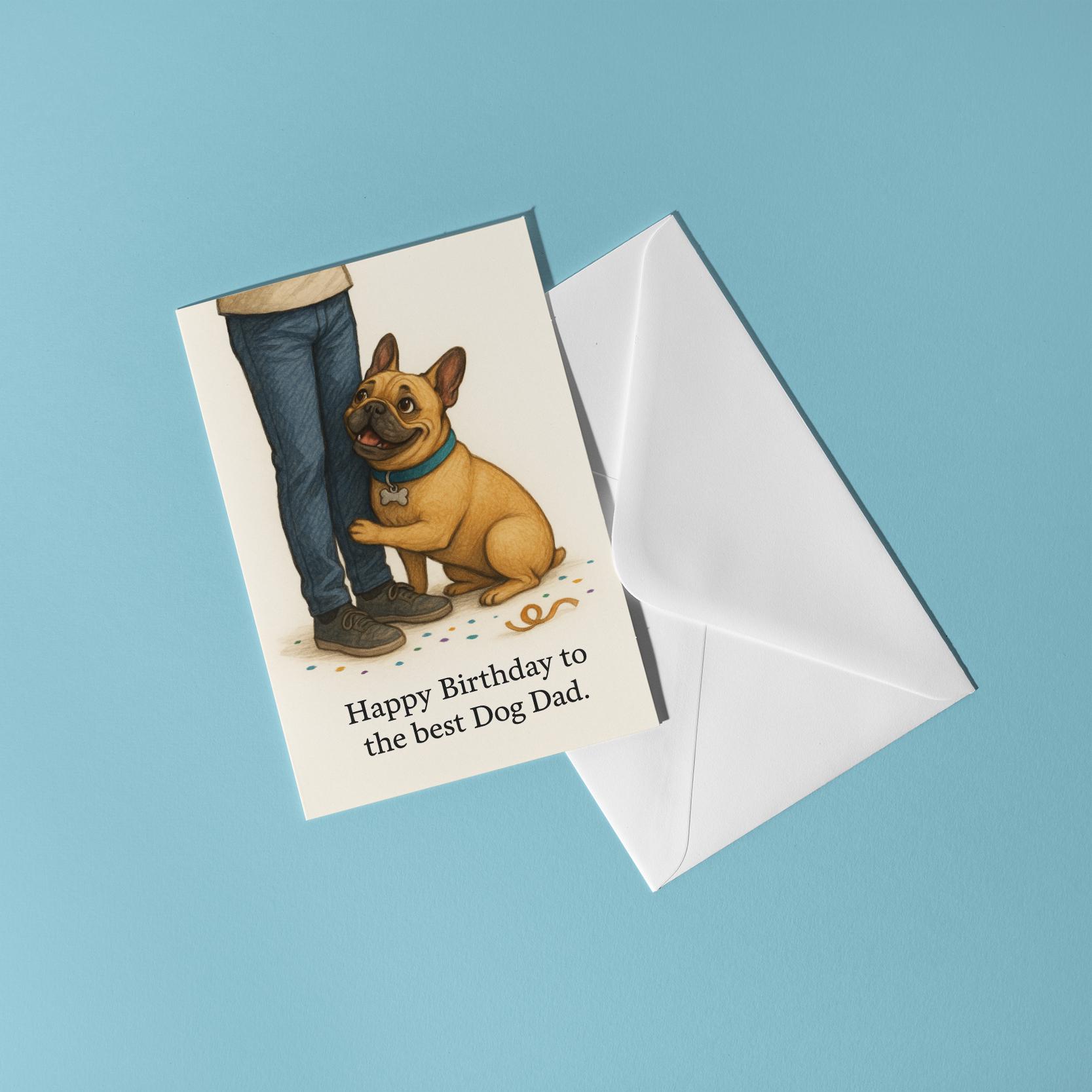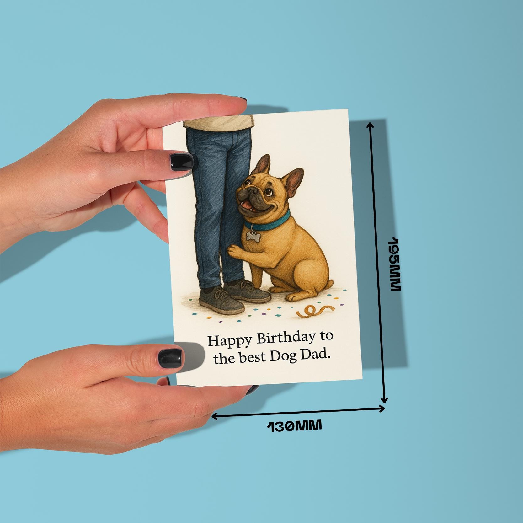 BLANK INTERIOR FOR A PERSONAL TOUCH: My Human Is the Best Collection - French Bulldog dog Happy Birthday to the best dog dad card. A heart-melting series of dog-themed greeting cards celebrating the special bond between pups and their favourite humans. Each design shows adorable doggos expressing pure love, loyalty and joy - perfect for Dog Mums, Dog Dads, and everyone who has a furry best friend - and other whimsical designs feature a blank interior, giving you ample space to write a personal message from the heart. Perfect for any occasion, each card comes with a matching white envelope, making it easy to send your unique sentiments to loved ones.