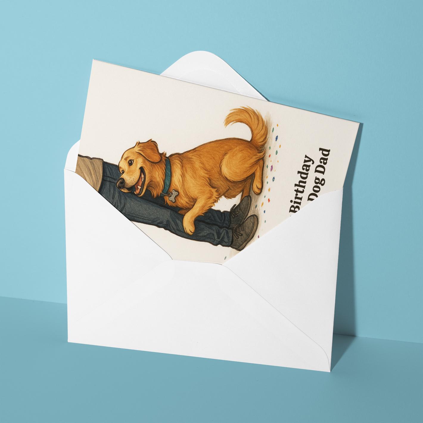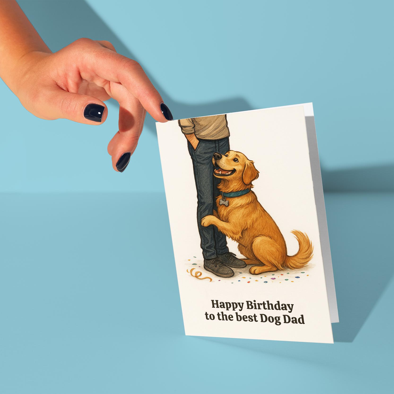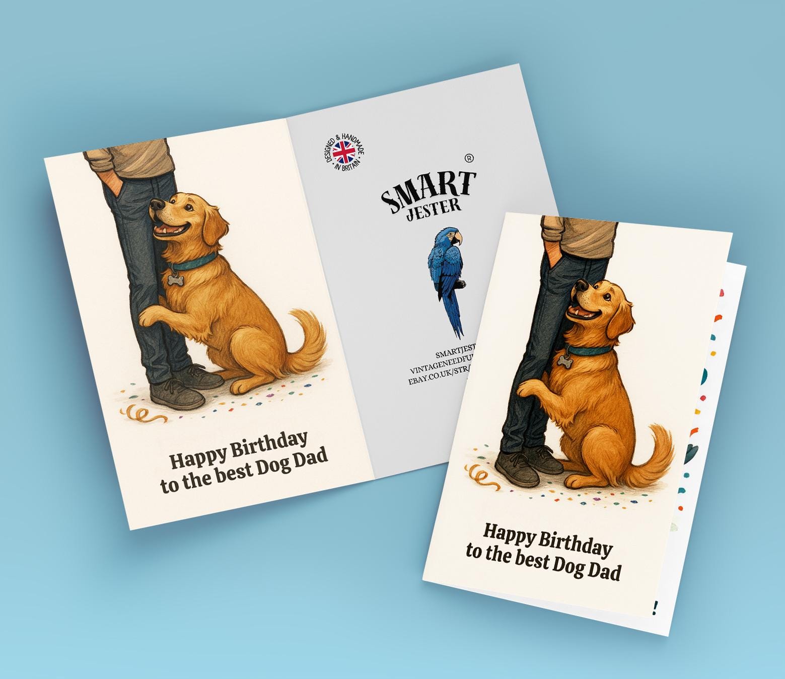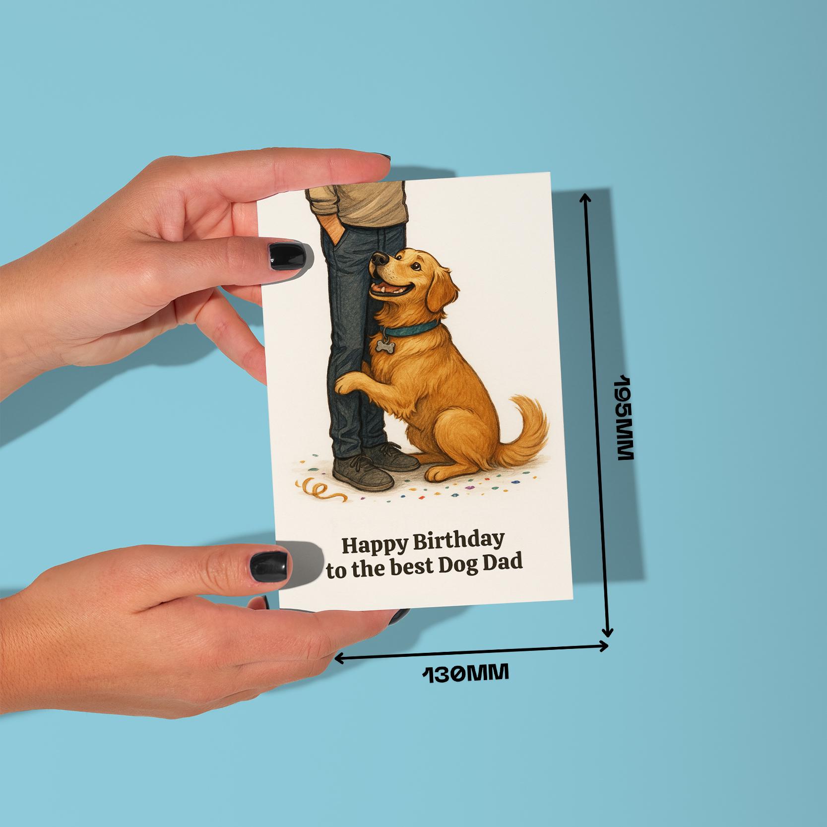 BLANK INTERIOR FOR A PERSONAL TOUCH: My Human Is the Best Collection - Golden Retriever dog Happy Birthday to the best dog dad card. A heart-melting series of dog-themed greeting cards celebrating the special bond between pups and their favourite humans. Each design shows adorable doggos expressing pure love, loyalty and joy - perfect for Dog Mums, Dog Dads, and everyone who has a furry best friend - and other whimsical designs feature a blank interior, giving you ample space to write a personal message from the heart. Perfect for any occasion, each card comes with a matching white envelope, making it easy to send your unique sentiments to loved ones.