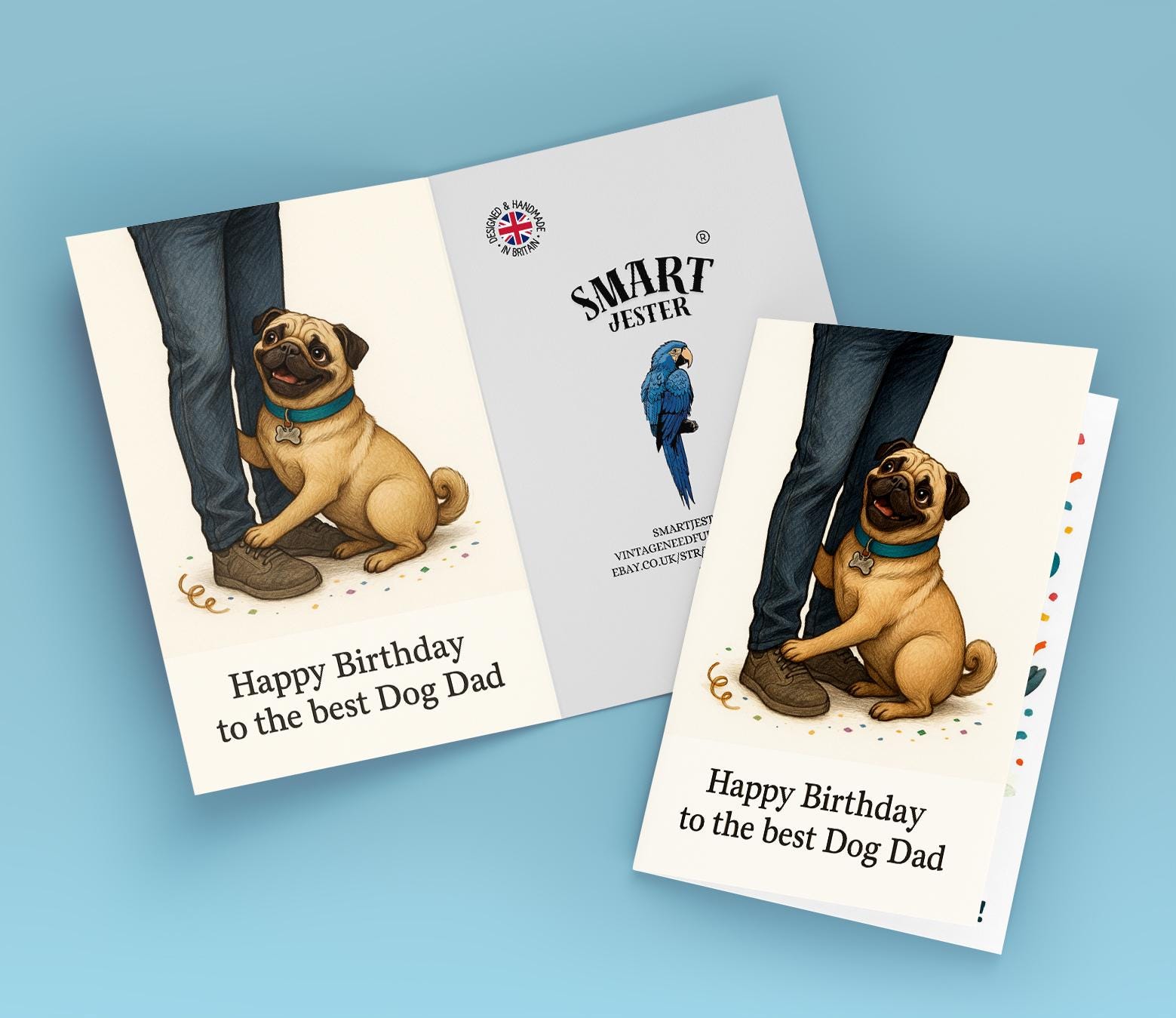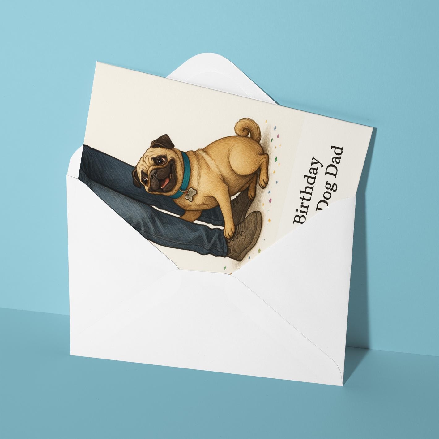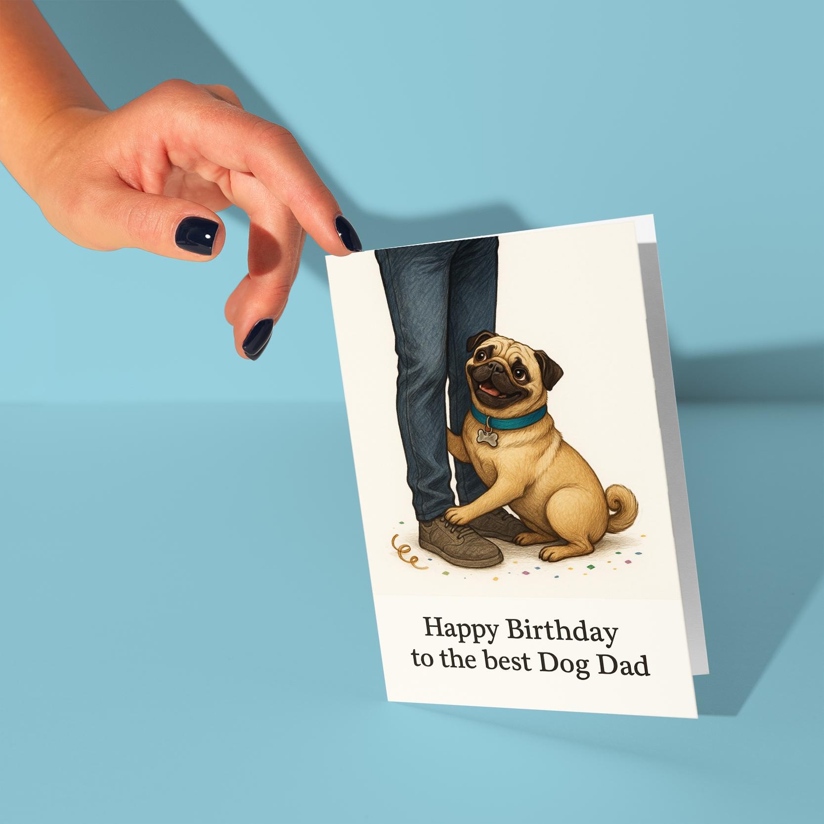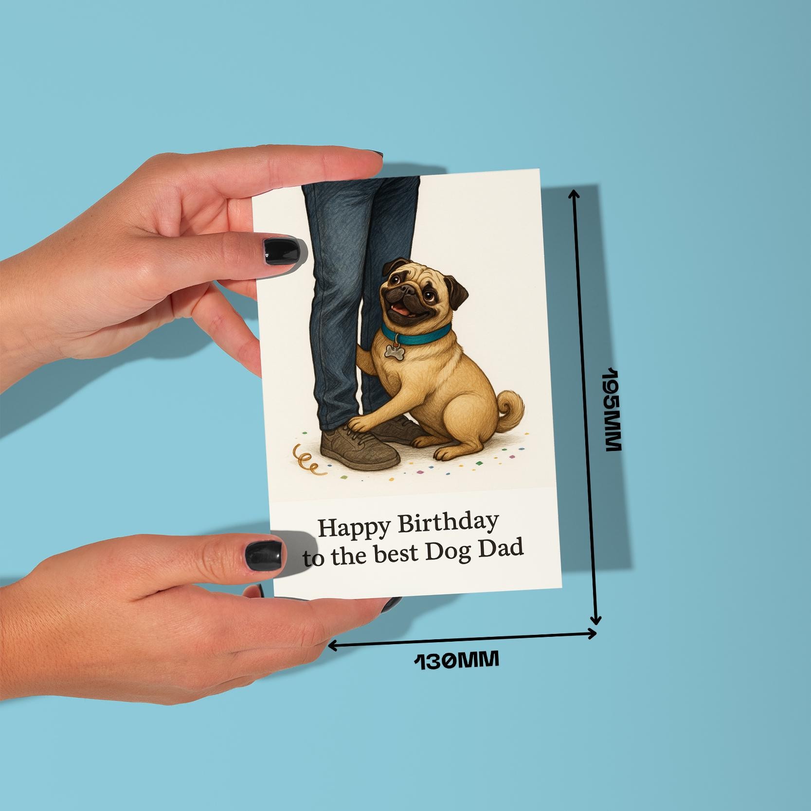 BLANK INTERIOR FOR A PERSONAL TOUCH: My Human Is the Best Collection - Pug Dog Happy Birthday to the best dog dad card. A heart-melting series of dog-themed greeting cards celebrating the special bond between pups and their favourite humans. Each design shows adorable doggos expressing pure love, loyalty and joy - perfect for Dog Mums, Dog Dads, and everyone who has a furry best friend - and other whimsical designs feature a blank interior, giving you ample space to write a personal message from the heart. Perfect for any occasion, each card comes with a matching white envelope, making it easy to send your unique sentiments to loved ones.