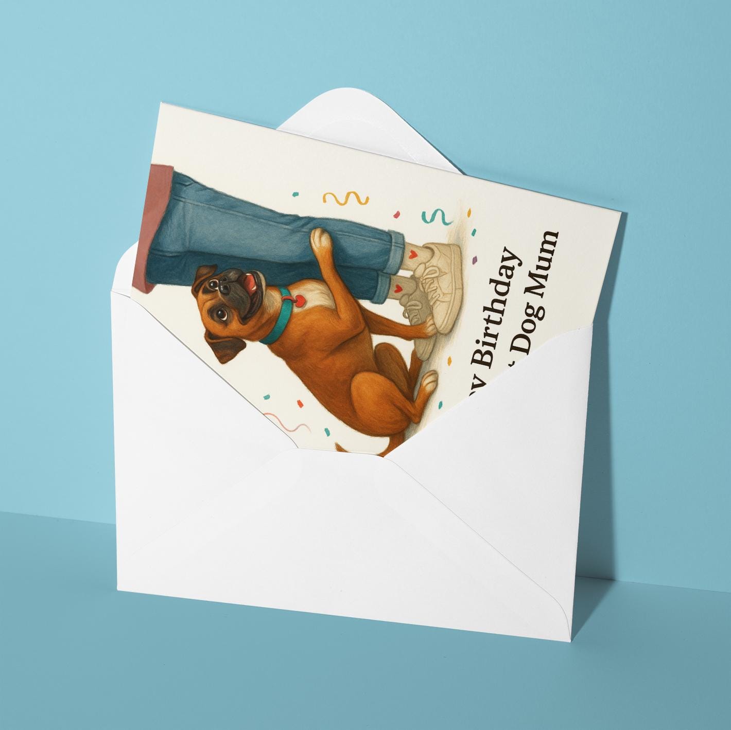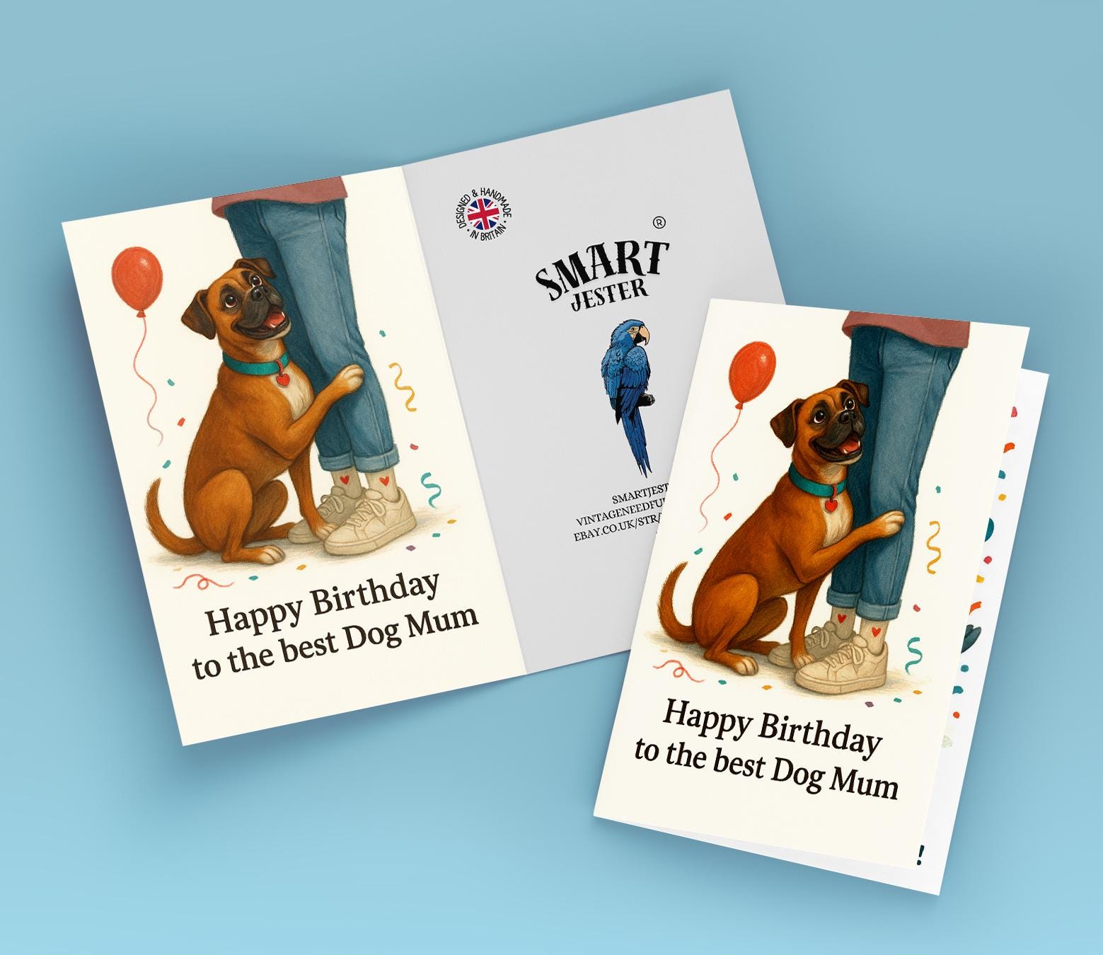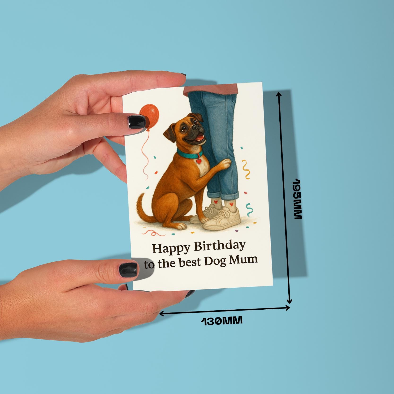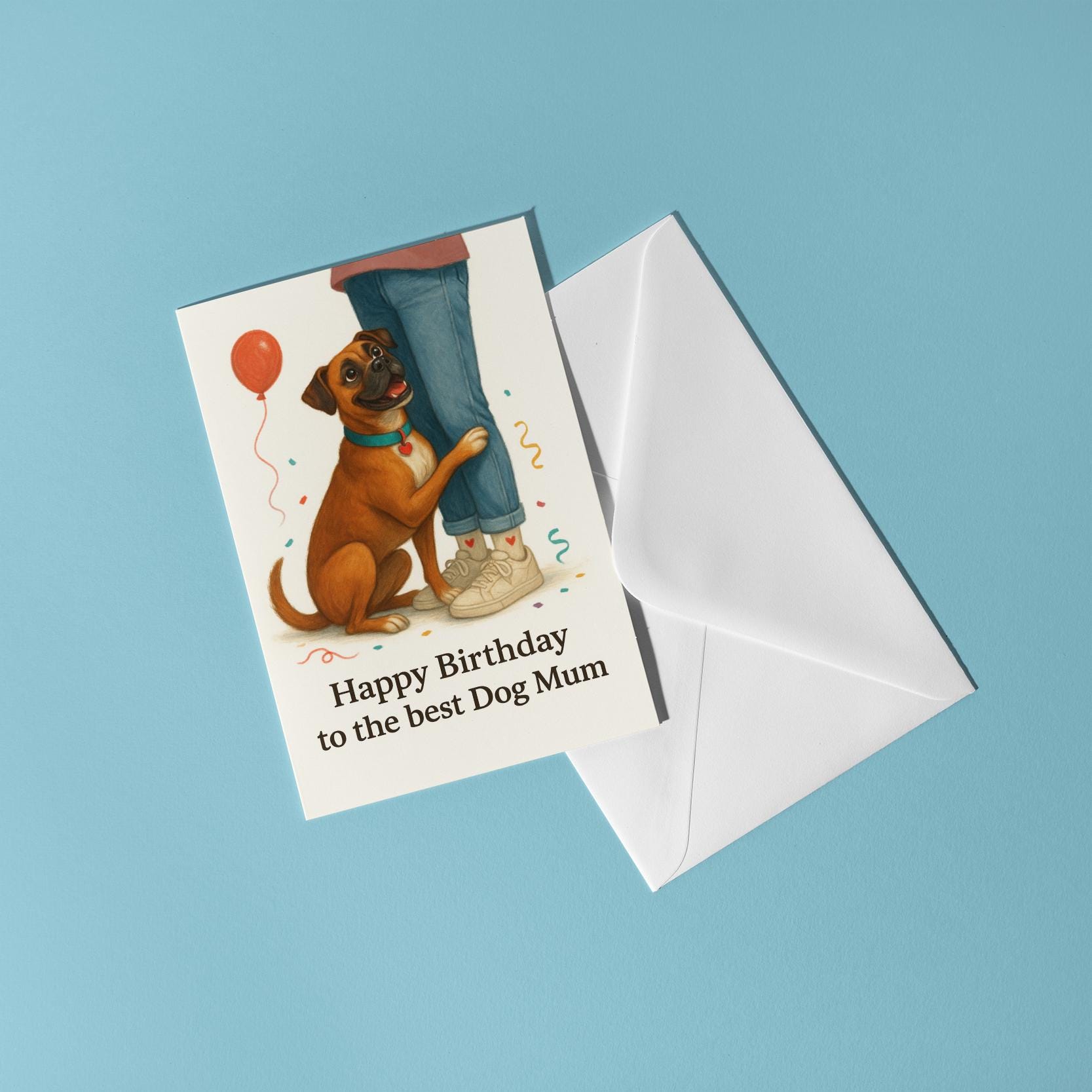 BLANK INTERIOR FOR A PERSONAL TOUCH: My Human Is the Best Collection - Boxer dog Happy Birthday to the best dog mum card. A heart-melting series of dog-themed greeting cards celebrating the special bond between pups and their favourite humans. Each design shows adorable doggos expressing pure love, loyalty and joy - perfect for Dog Mums, Dog Dads, and everyone who has a furry best friend - and other whimsical designs feature a blank interior, giving you ample space to write a personal message from the heart. Perfect for any occasion, each card comes with a matching white envelope, making it easy to send your unique sentiments to loved ones.