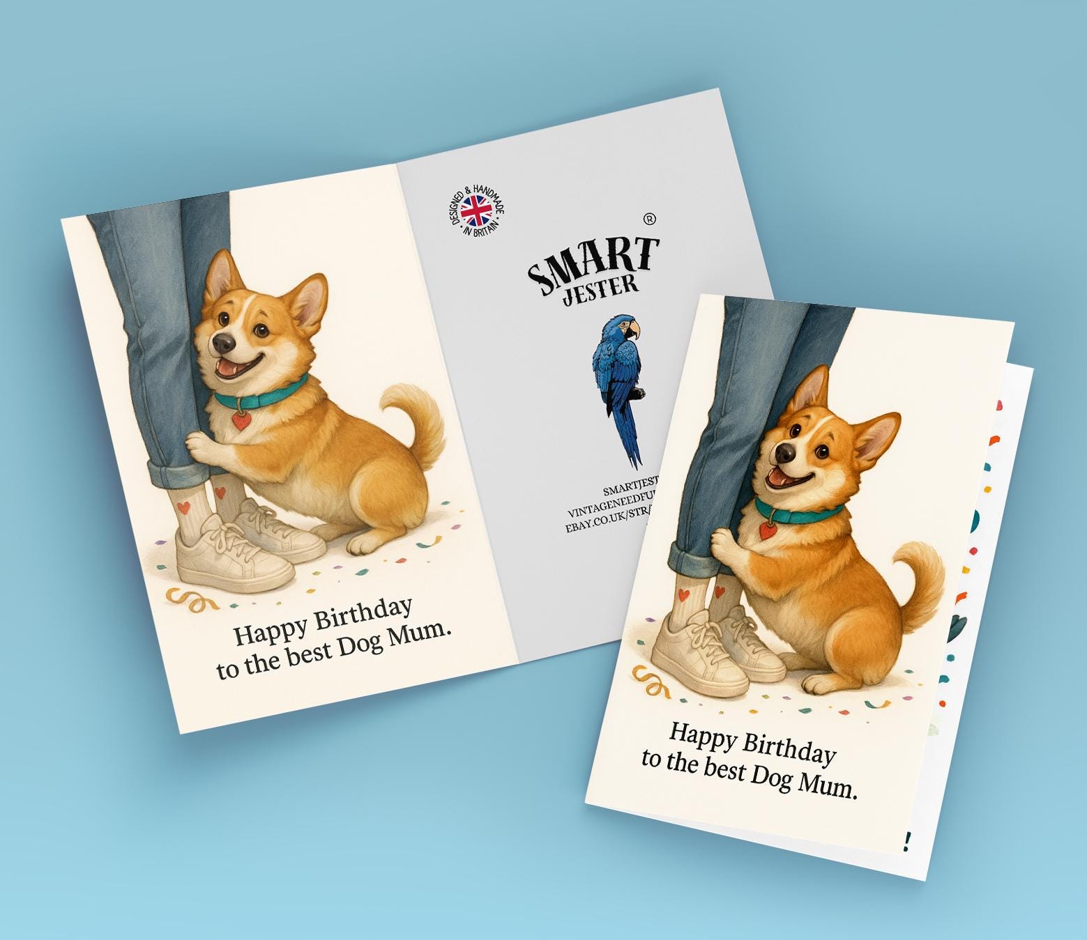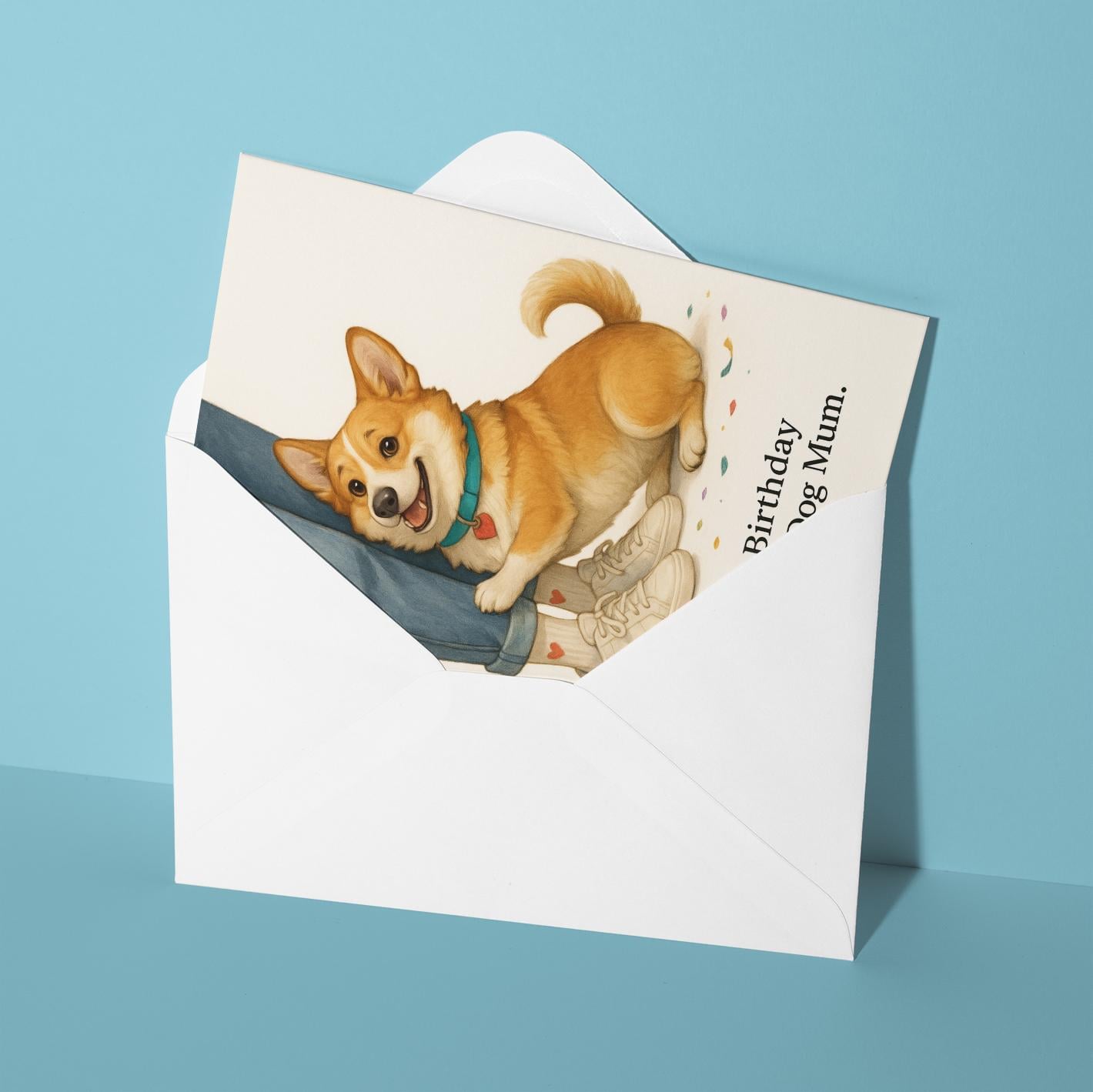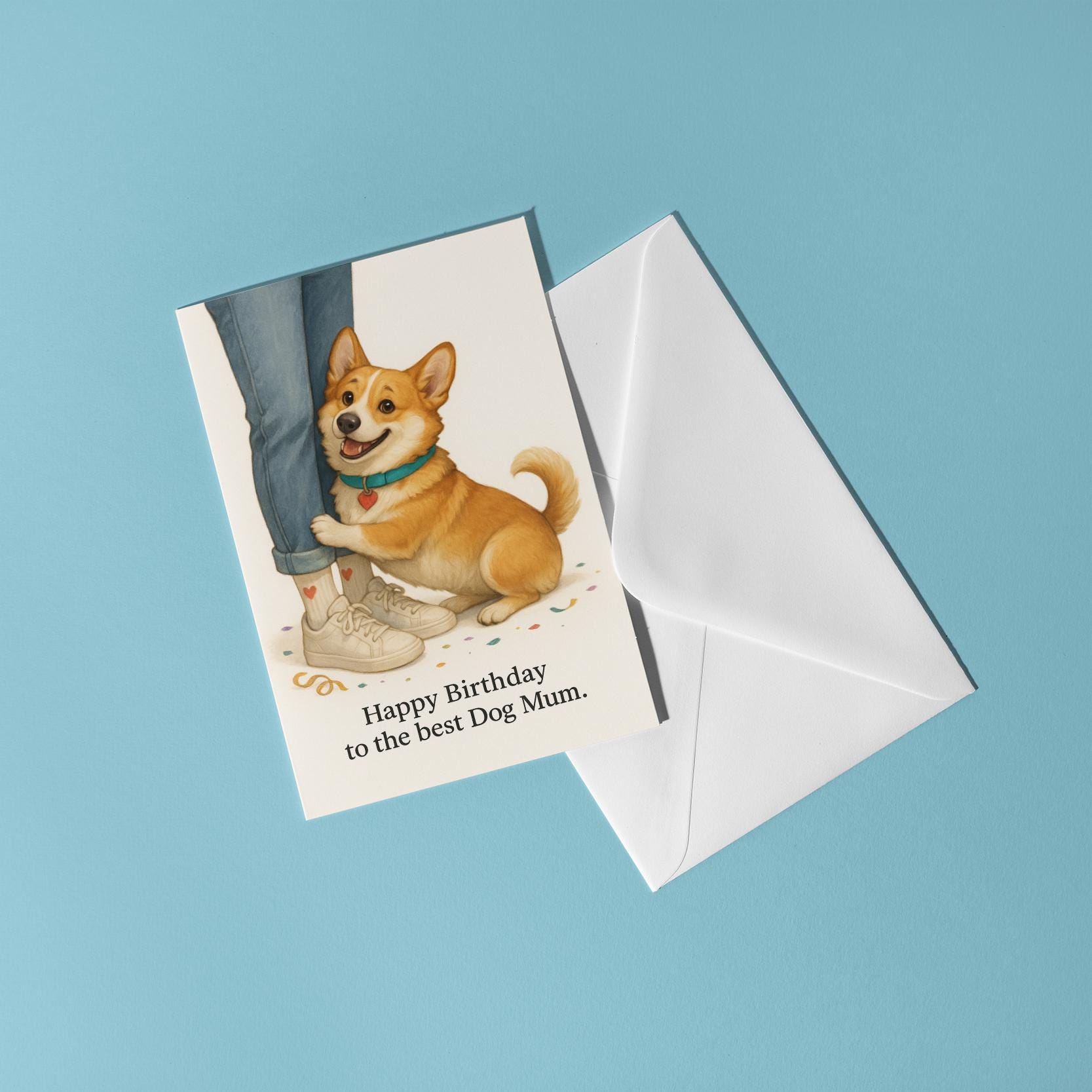 BLANK INTERIOR FOR A PERSONAL TOUCH: My Human Is the Best Collection - Сorgi dog Happy Birthday to the best dog mum card. A heart-melting series of dog-themed greeting cards celebrating the special bond between pups and their favourite humans. Each design shows adorable doggos expressing pure love, loyalty and joy - perfect for Dog Mums, Dog Dads, and everyone who has a furry best friend - and other whimsical designs feature a blank interior, giving you ample space to write a personal message from the heart. Perfect for any occasion, each card comes with a matching white envelope, making it easy to send your unique sentiments to loved ones.