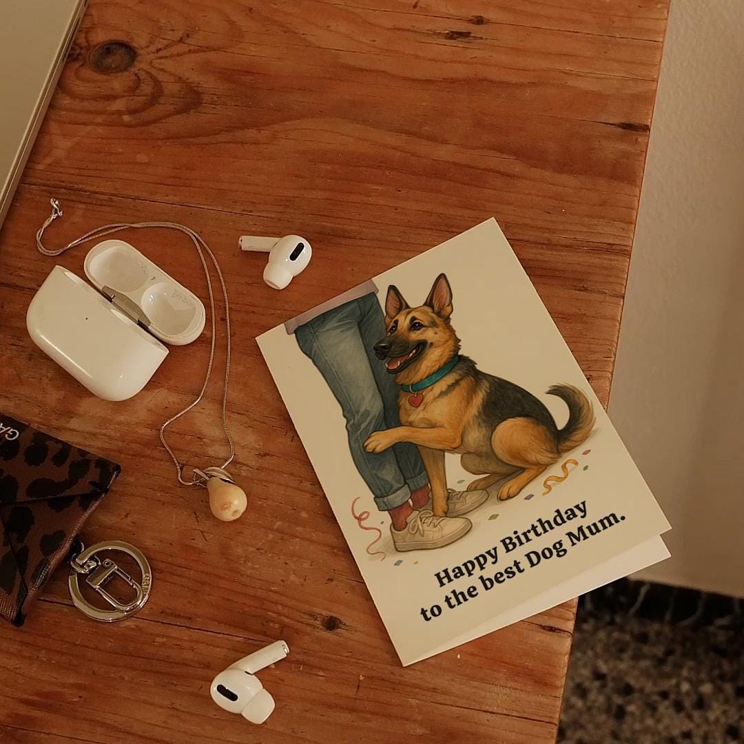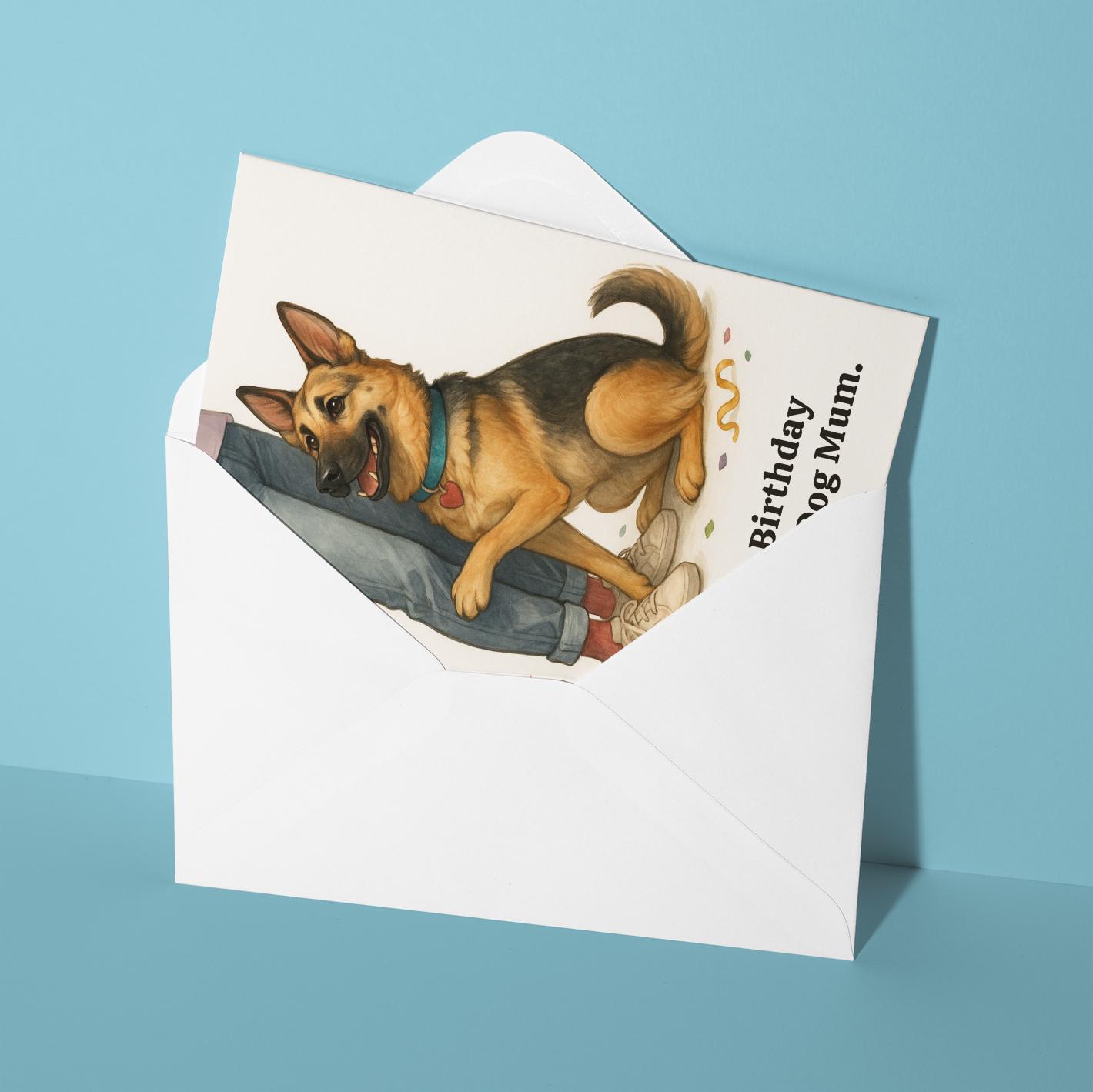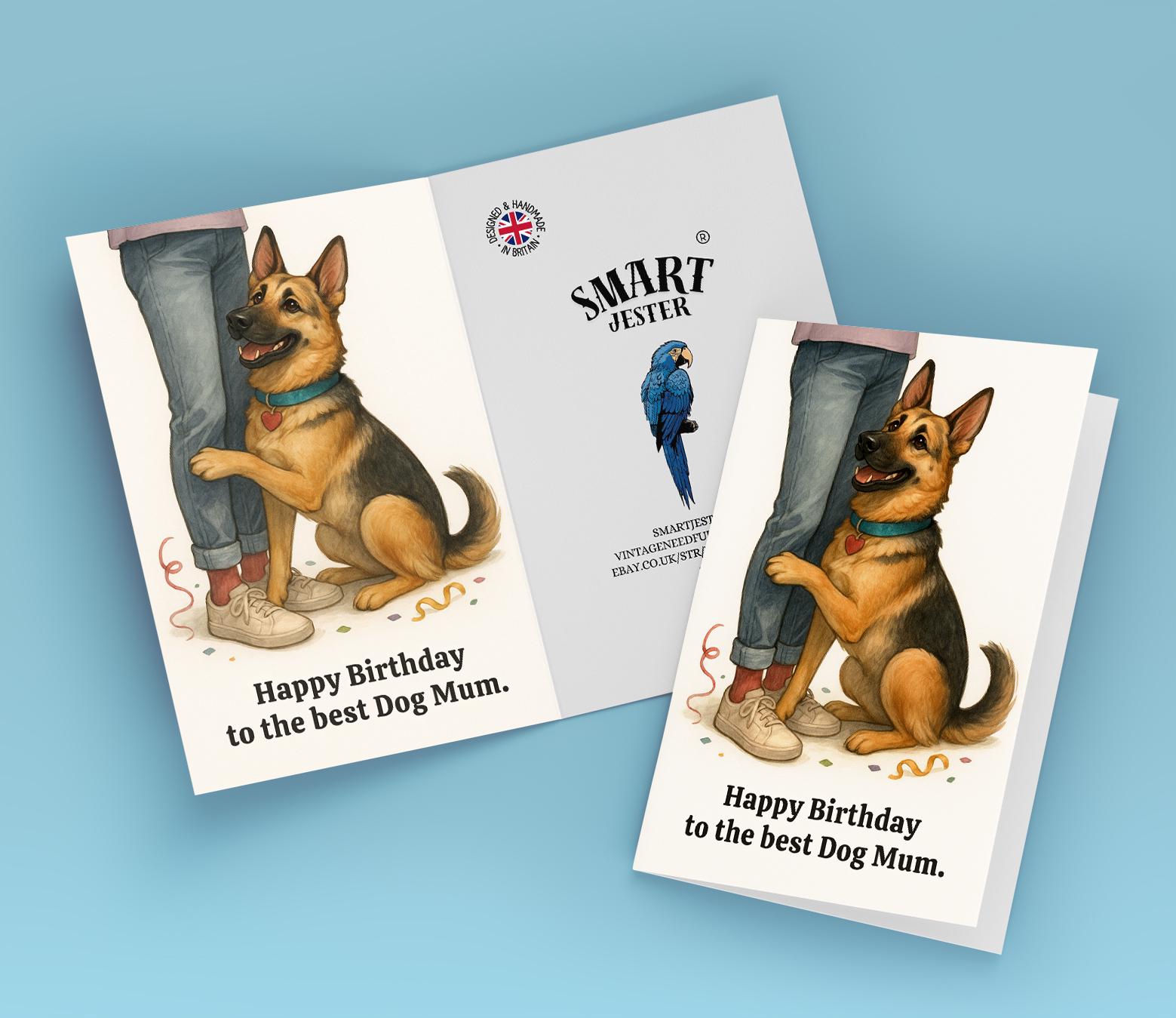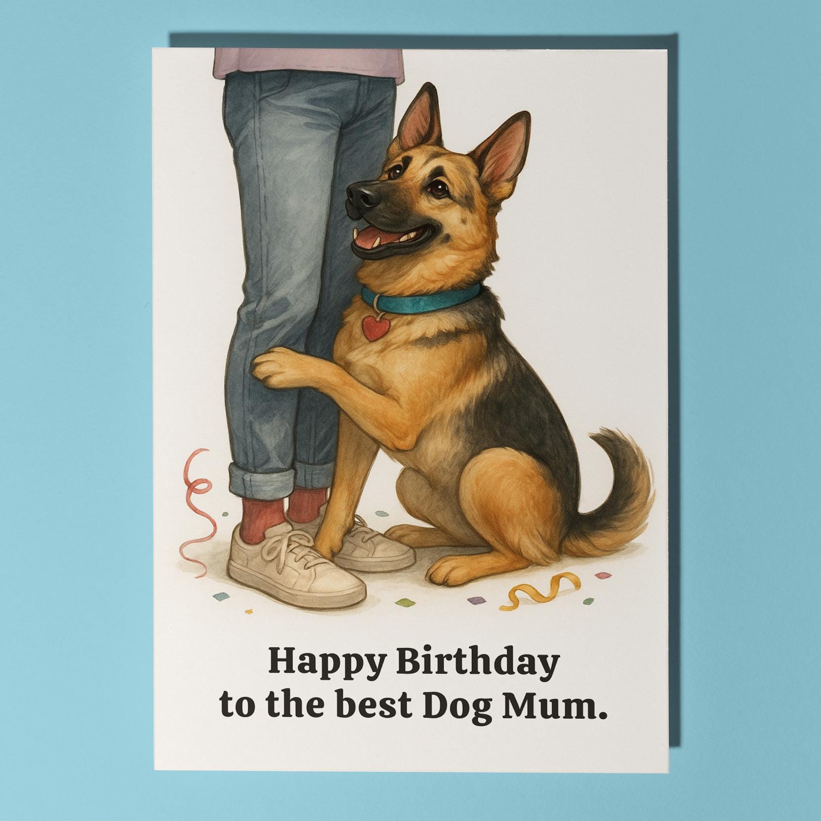 BLANK INTERIOR FOR A PERSONAL TOUCH: My Human Is the Best Collection - German Shepherd dog Happy Birthday to the best dog mum card. A heart-melting series of dog-themed greeting cards celebrating the special bond between pups and their favourite humans. Each design shows adorable doggos expressing pure love, loyalty and joy - perfect for Dog Mums, Dog Dads, and everyone who has a furry best friend - and other whimsical designs feature a blank interior, giving you ample space to write a personal message from the heart. Perfect for any occasion, each card comes with a matching white envelope, making it easy to send your unique sentiments to loved ones.