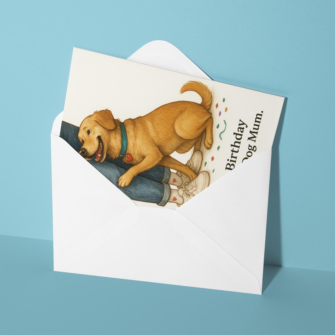 BLANK INTERIOR FOR A PERSONAL TOUCH: My Human Is the Best Collection - Golden Retriever dog Happy Birthday to the best dog mum card. A heart-melting series of dog-themed greeting cards celebrating the special bond between pups and their favourite humans. Each design shows adorable doggos expressing pure love, loyalty and joy - perfect for Dog Mums, Dog Dads, and everyone who has a furry best friend - and other whimsical designs feature a blank interior, giving you ample space to write a personal message from the heart. Perfect for any occasion, each card comes with a matching white envelope, making it easy to send your unique sentiments to loved ones.