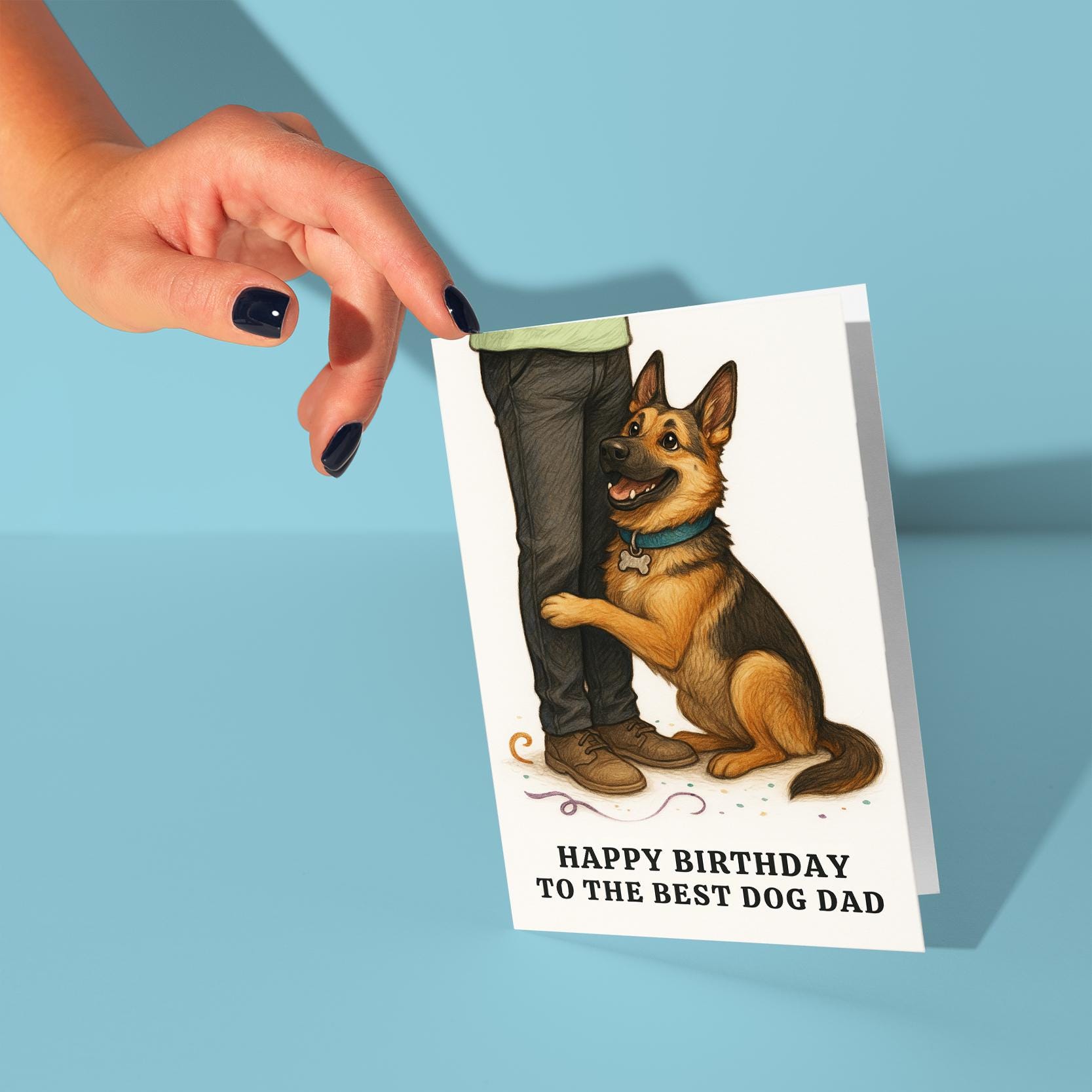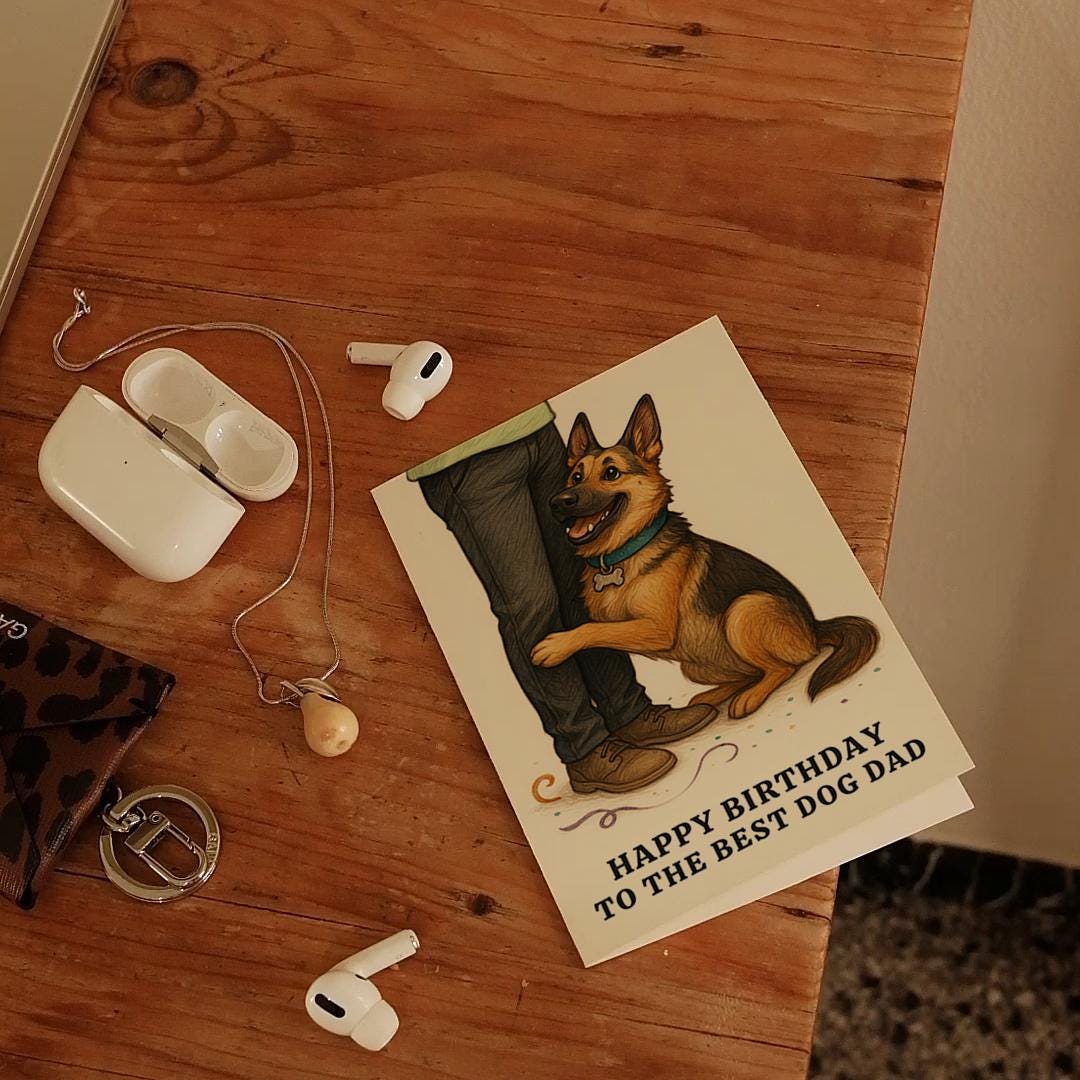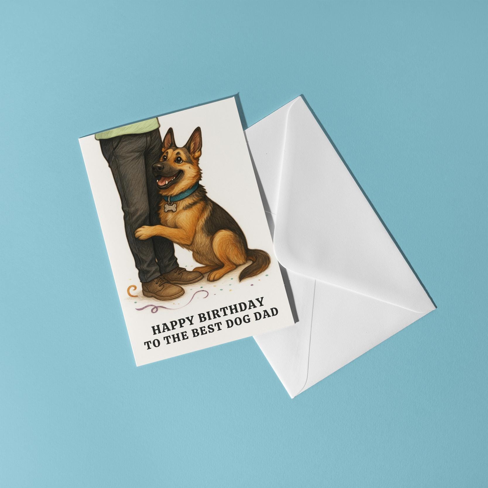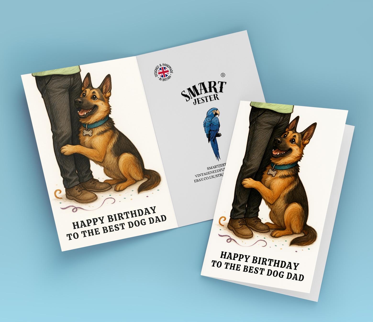 BLANK INTERIOR FOR A PERSONAL TOUCH: My Human Is the Best Collection - German Shepherd dog Happy Birthday to the best dog dad card. A heart-melting series of dog-themed greeting cards celebrating the special bond between pups and their favourite humans. Each design shows adorable doggos expressing pure love, loyalty and joy - perfect for Dog Mums, Dog Dads, and everyone who has a furry best friend - and other whimsical designs feature a blank interior, giving you ample space to write a personal message from the heart. Perfect for any occasion, each card comes with a matching white envelope, making it easy to send your unique sentiments to loved ones.