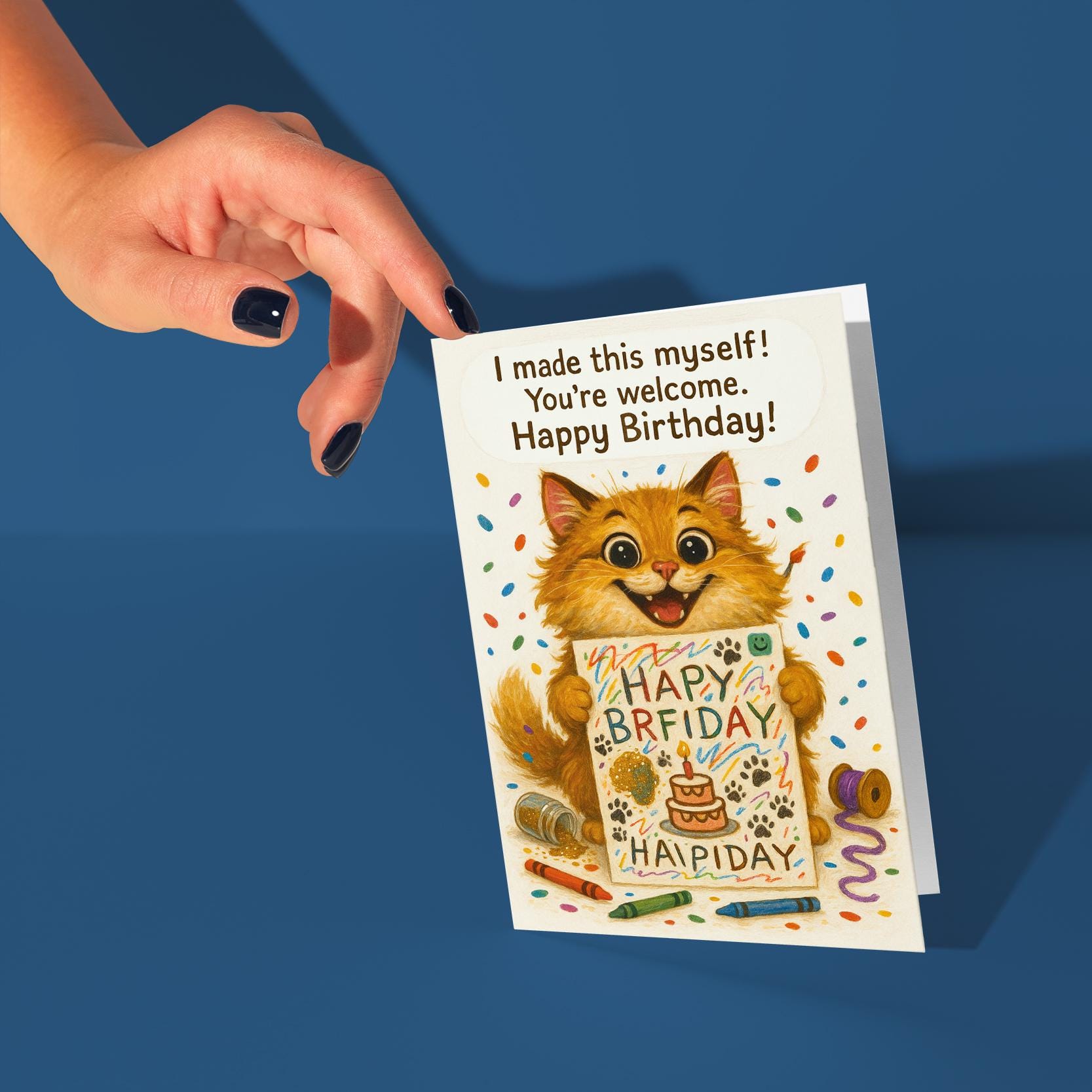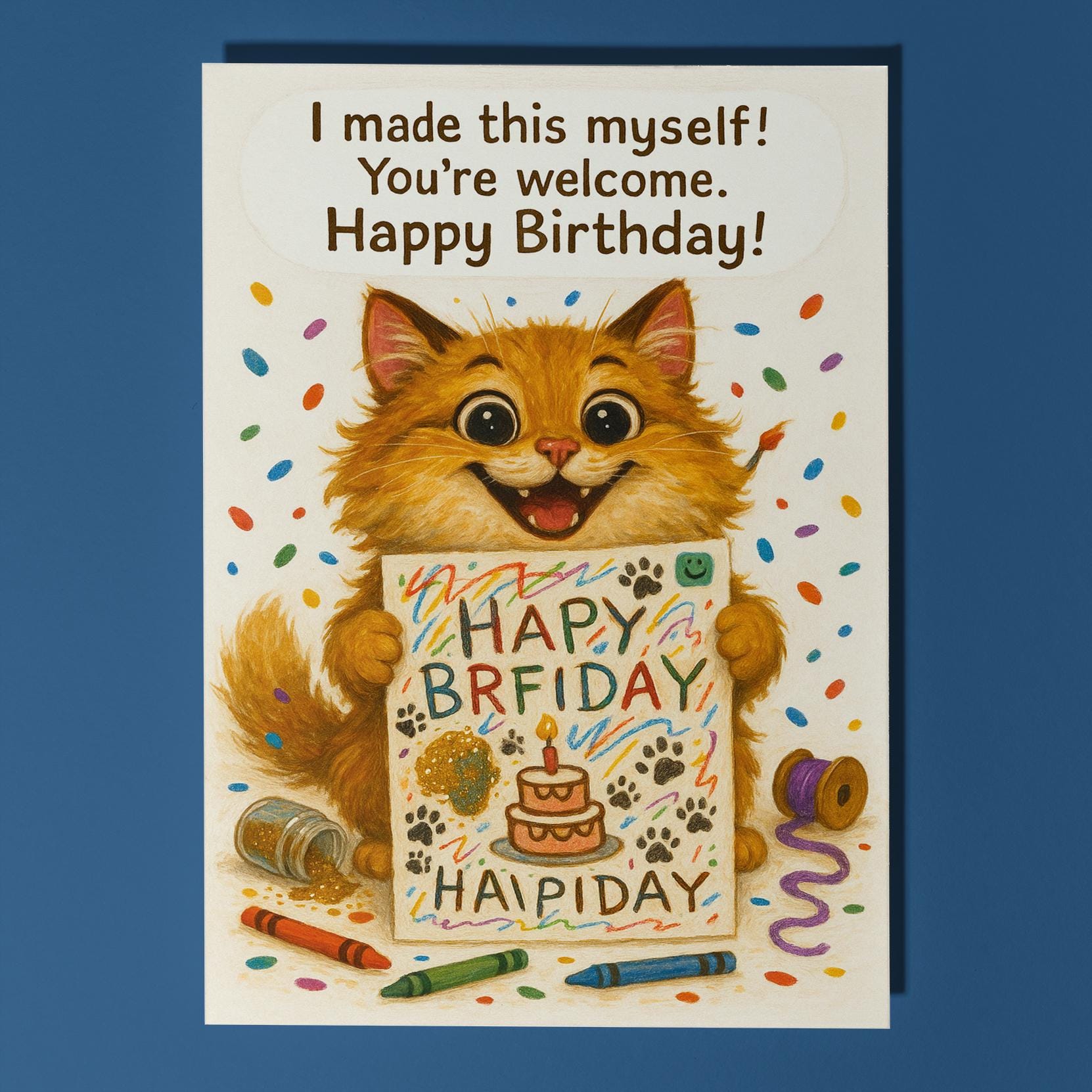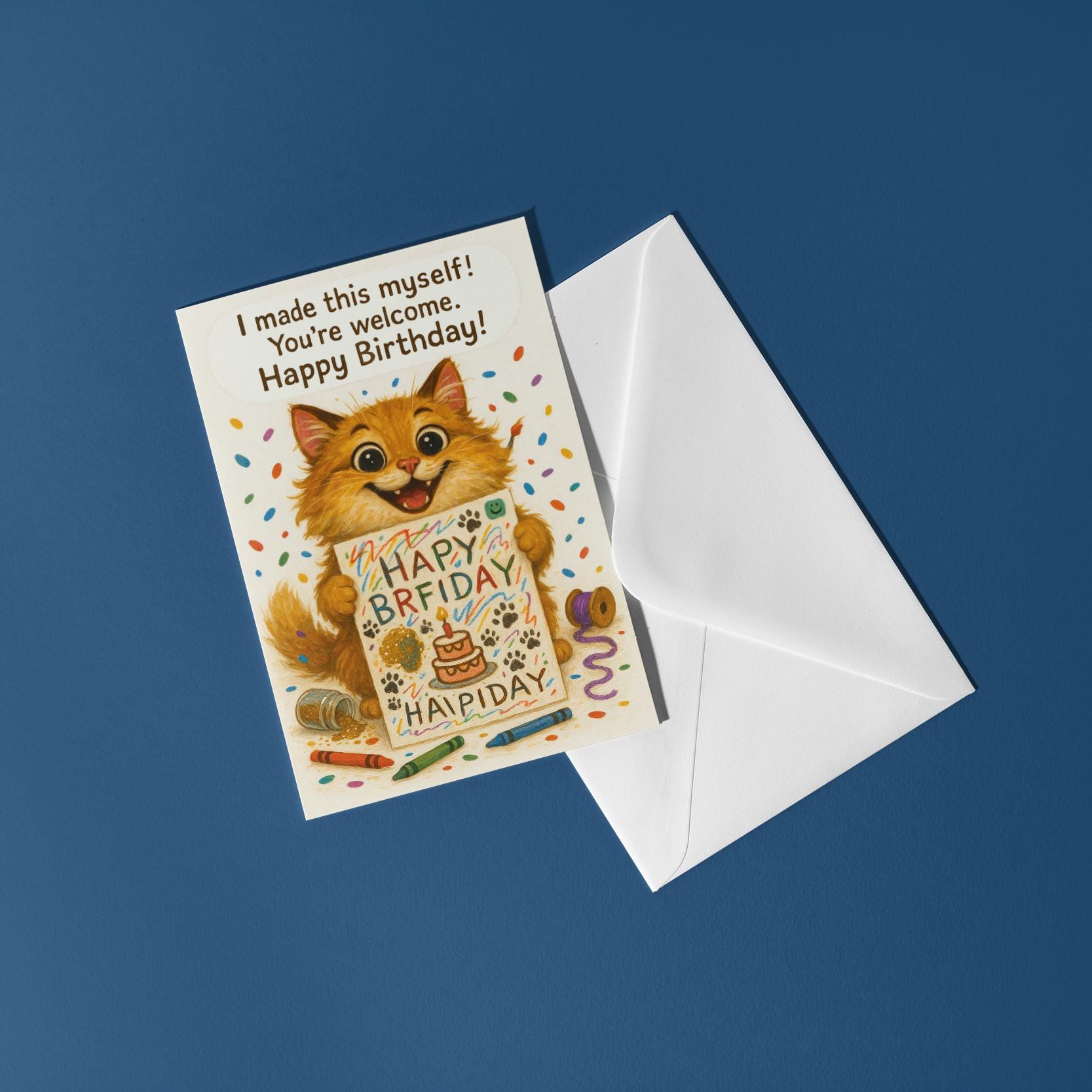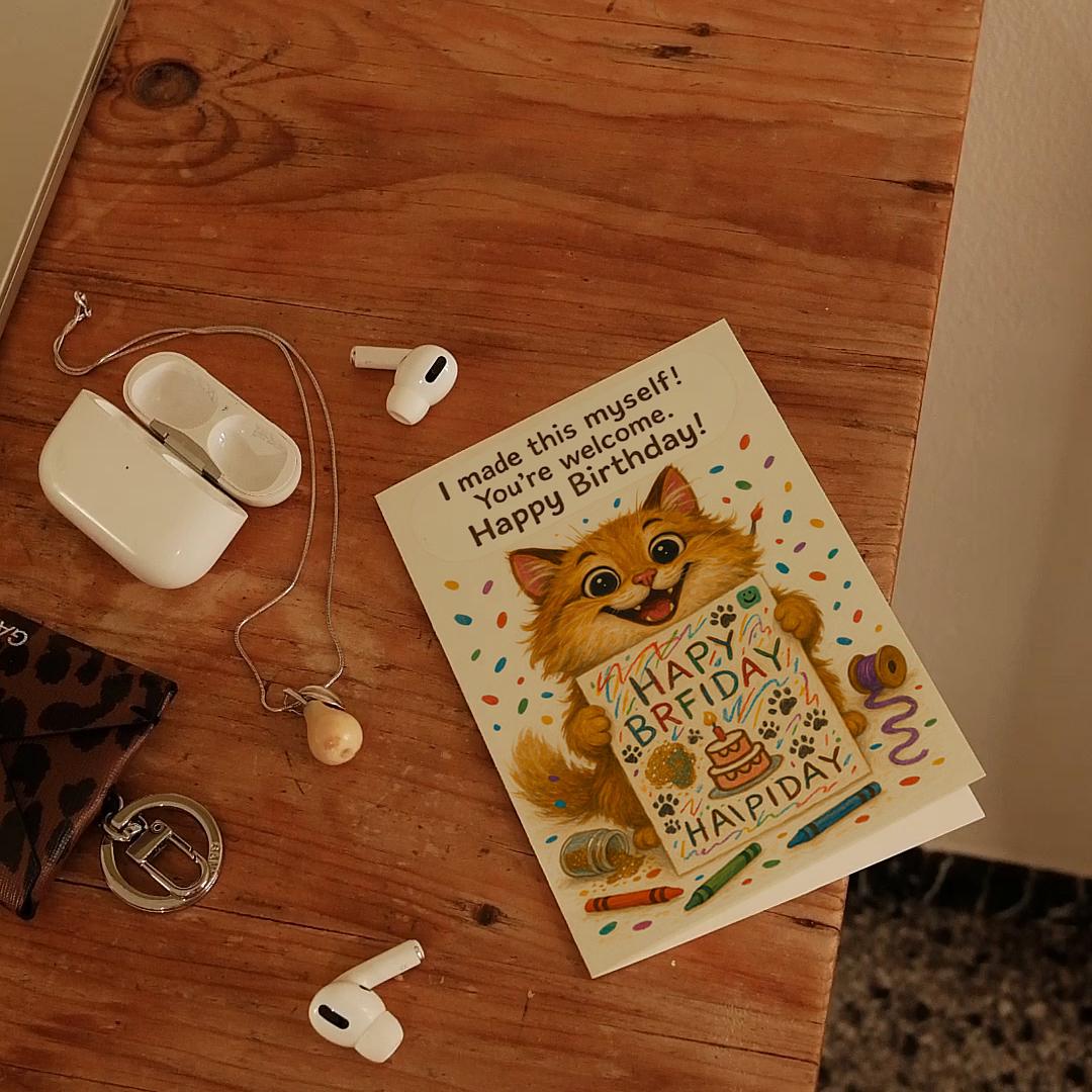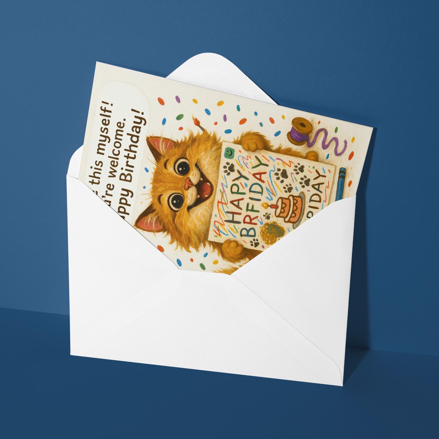 BLANK INTERIOR FOR A PERSONAL TOUCH: Our Cat - I made this myself you're welcome! Happy Birthday card and other whimsical designs feature a blank interior, giving you ample space to write a personal message from the heart. Perfect for any occasion, each card comes with a matching white envelope, making it easy to send your unique sentiments to loved ones.