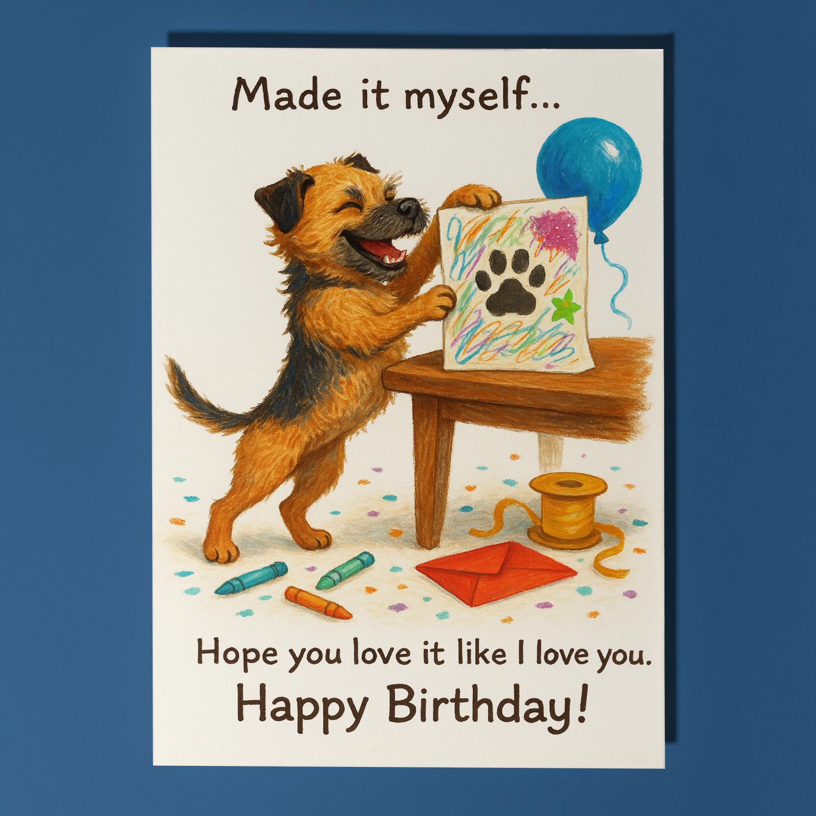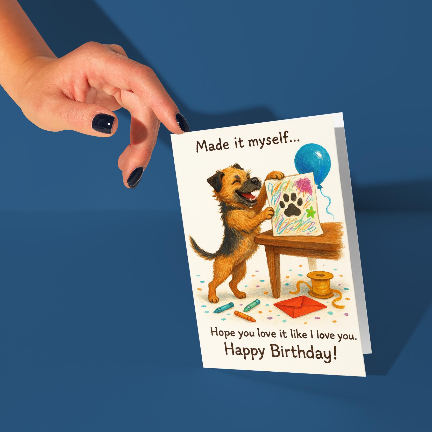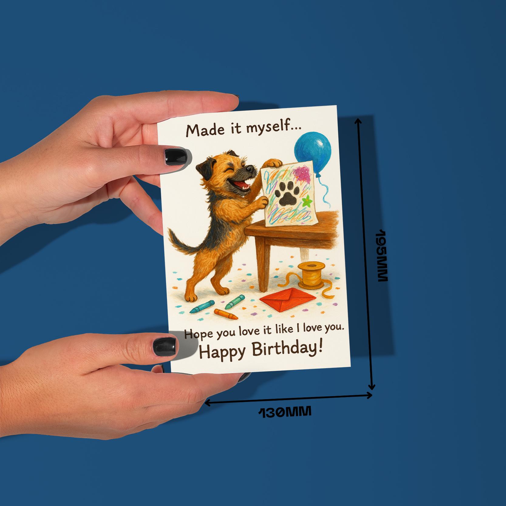 BLANK INTERIOR FOR A PERSONAL TOUCH: Our Funny Border Terrier dog - Made it myself... Hope you love it like I love you. Happy Birthday! card and other whimsical designs feature a blank interior, giving you ample space to write a personal message from the heart. Perfect for any occasion, each card comes with a matching white envelope, making it easy to send your unique sentiments to loved ones.