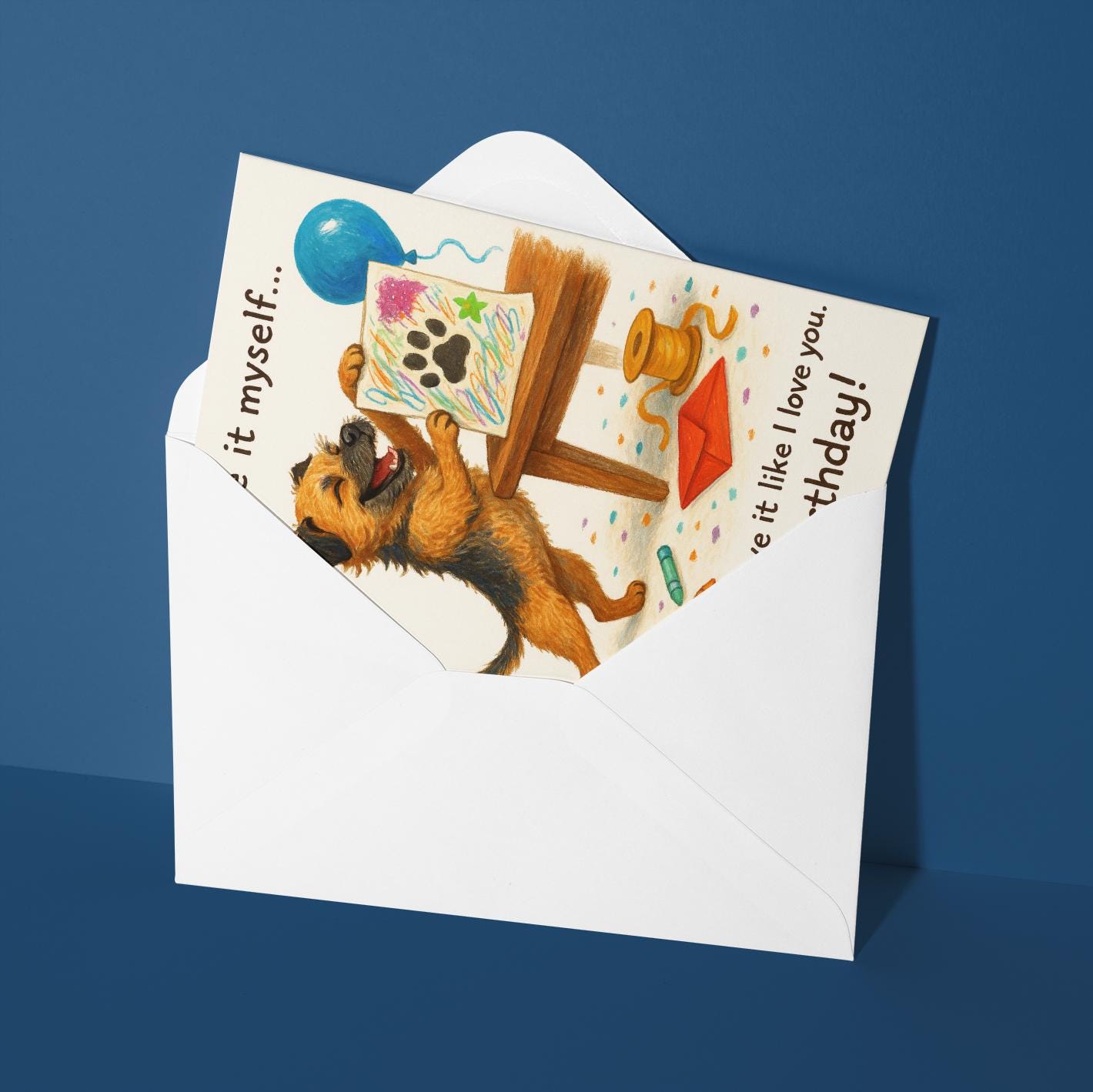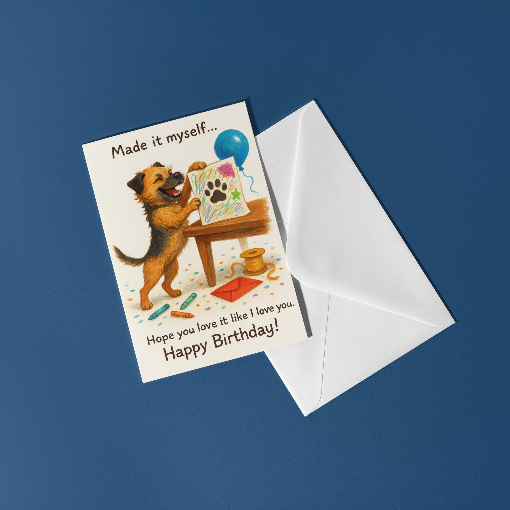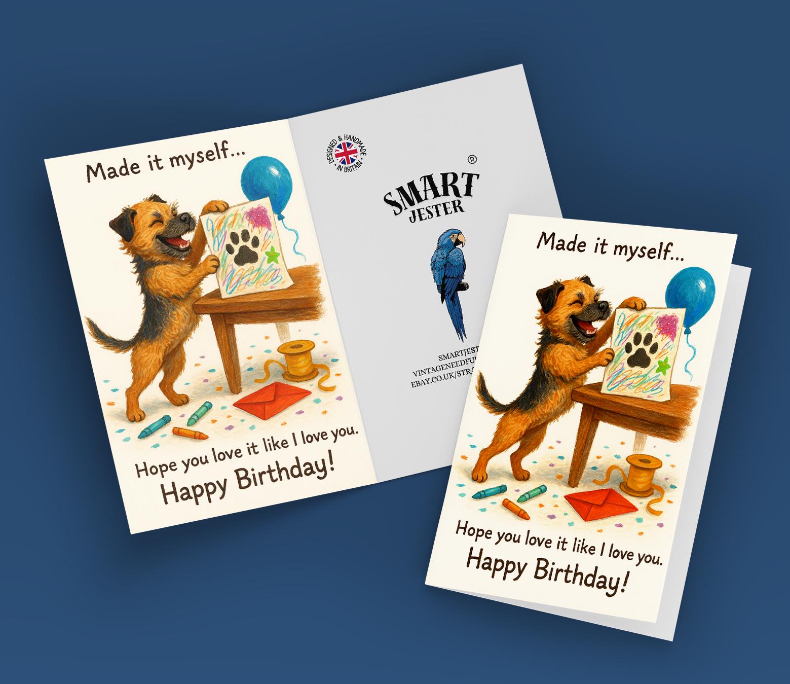 BLANK INTERIOR FOR A PERSONAL TOUCH: Our Funny Border Terrier dog - Made it myself... Hope you love it like I love you. Happy Birthday! card and other whimsical designs feature a blank interior, giving you ample space to write a personal message from the heart. Perfect for any occasion, each card comes with a matching white envelope, making it easy to send your unique sentiments to loved ones.