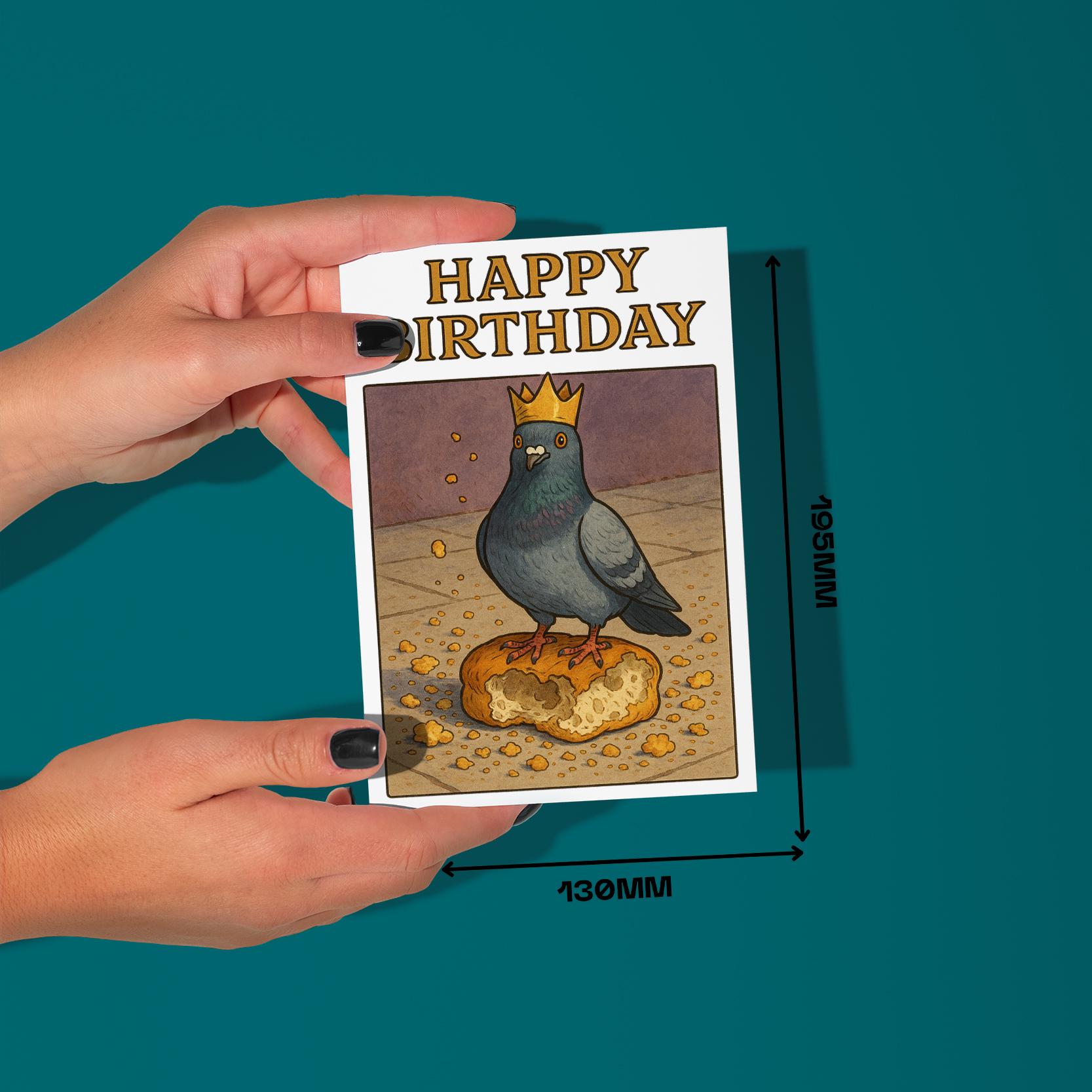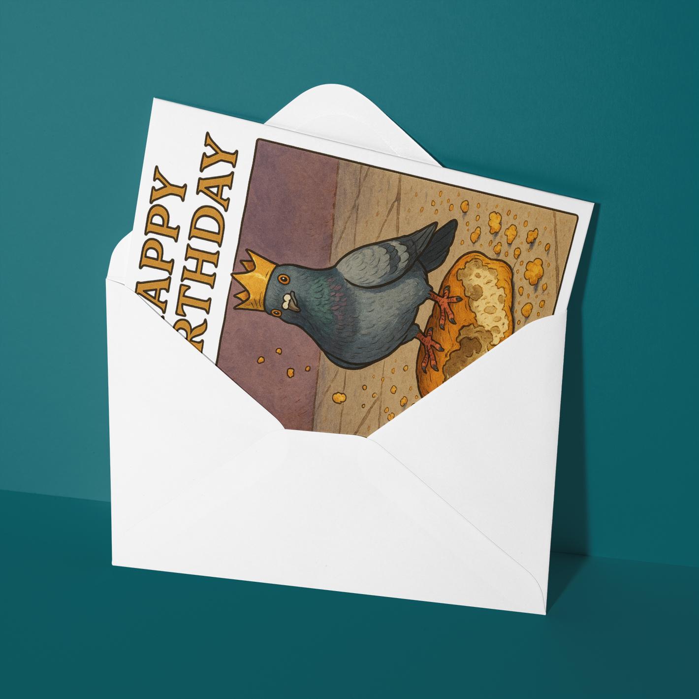 BLANK INTERIOR FOR A PERSONAL TOUCH: Our Pigeon King of Crumbs Happy Birthday card and other whimsical designs feature a blank interior, giving you ample space to write a personal message from the heart. Perfect for any occasion, each card comes with a matching white envelope, making it easy to send your unique sentiments to loved ones.