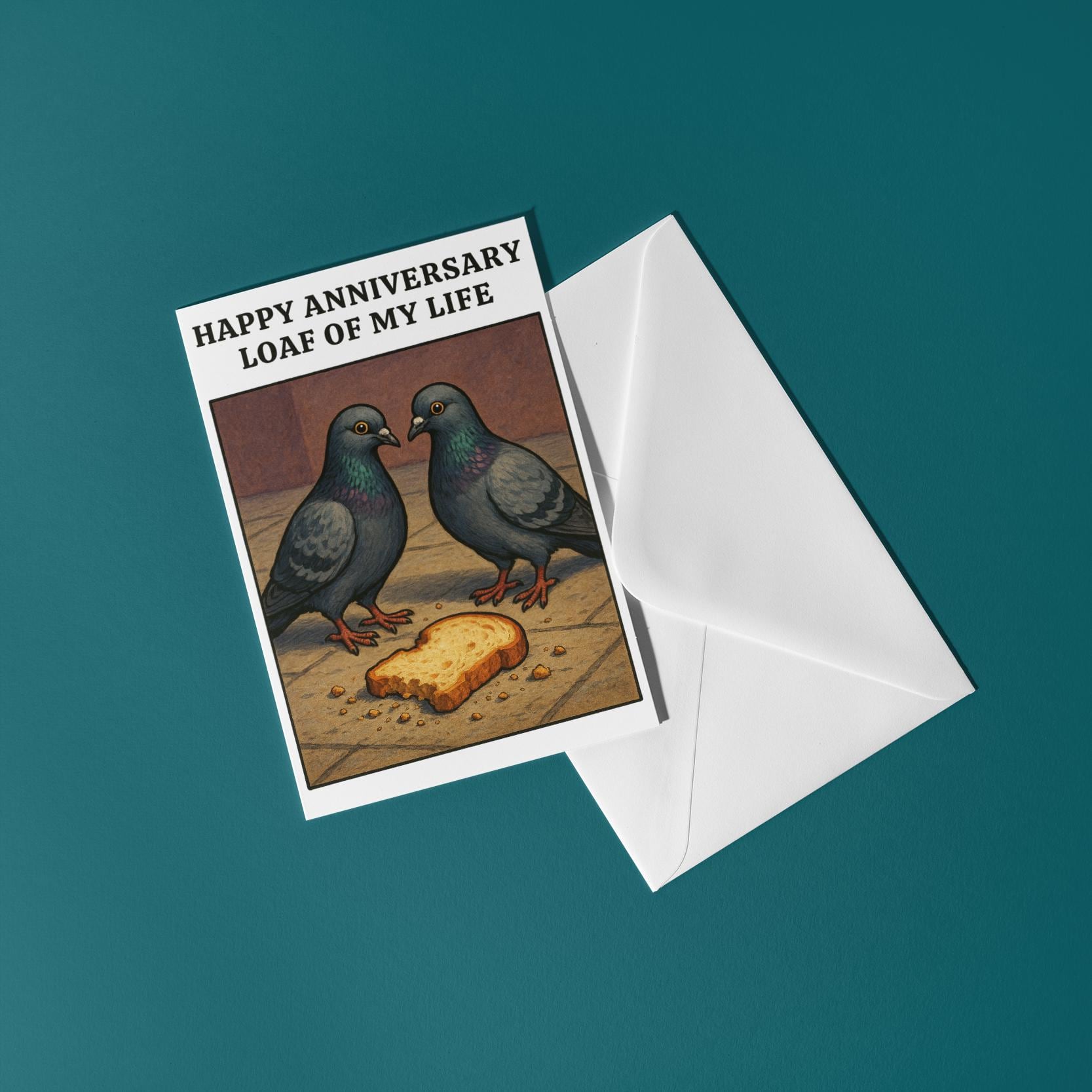 BLANK INTERIOR FOR A PERSONAL TOUCH: Our Pigeons - Loaf of My life Happy Anniversary Card and other whimsical designs feature a blank interior, giving you ample space to write a personal message from the heart. Perfect for any occasion, each card comes with a matching white envelope, making it easy to send your unique sentiments to loved ones.