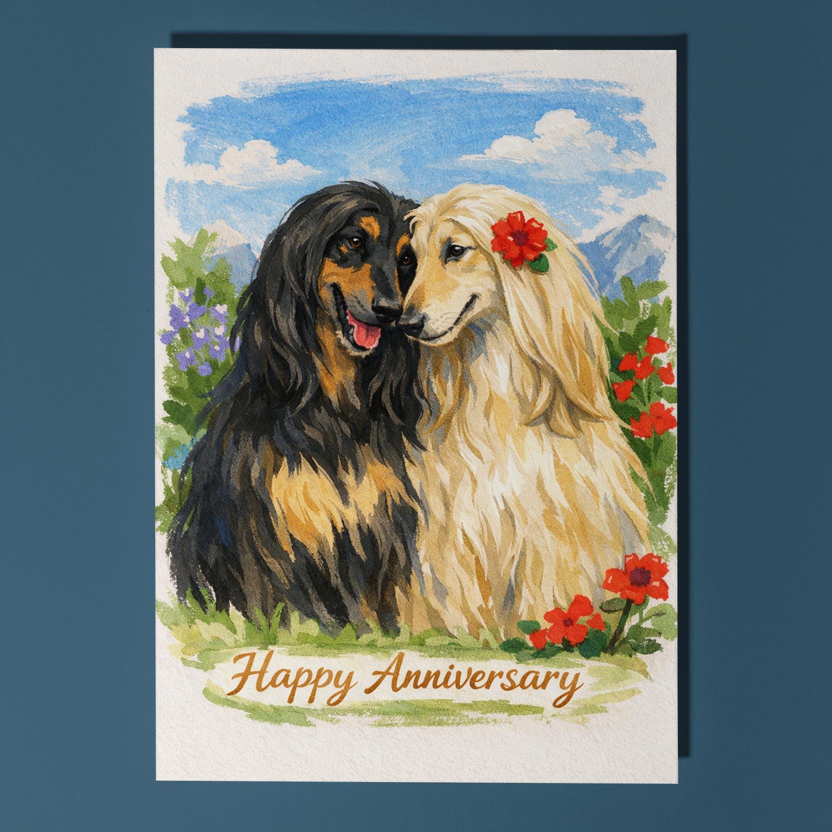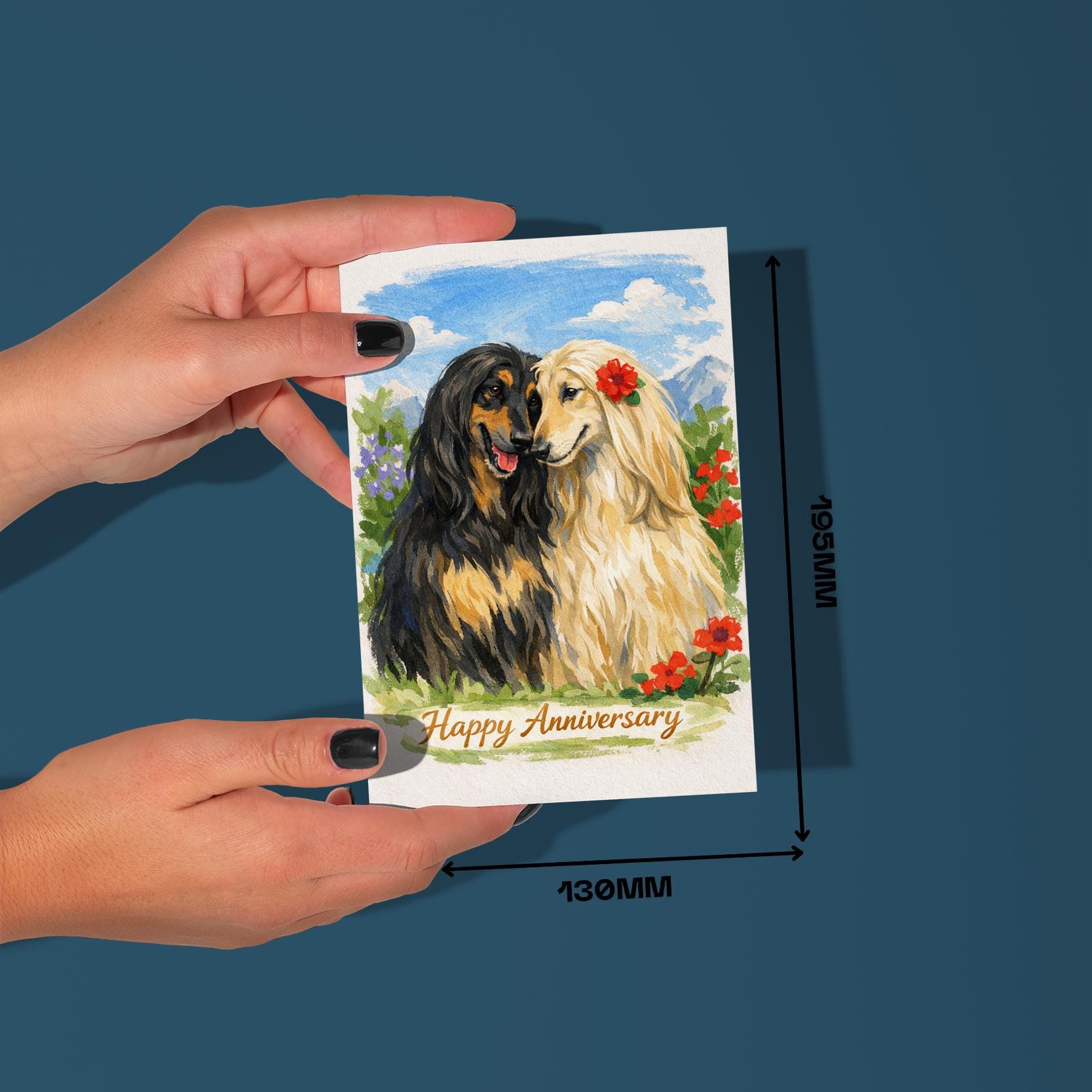 BLANK INTERIOR FOR A PERSONAL TOUCH: Our Dog Breeds Collection - Afghan Hound Dogs Love - Anniversary Card and other whimsical designs feature a blank interior, giving you ample space to write a personal message from the heart. Perfect for any occasion, each card comes with a matching white envelope, making it easy to send your unique sentiments to loved ones.