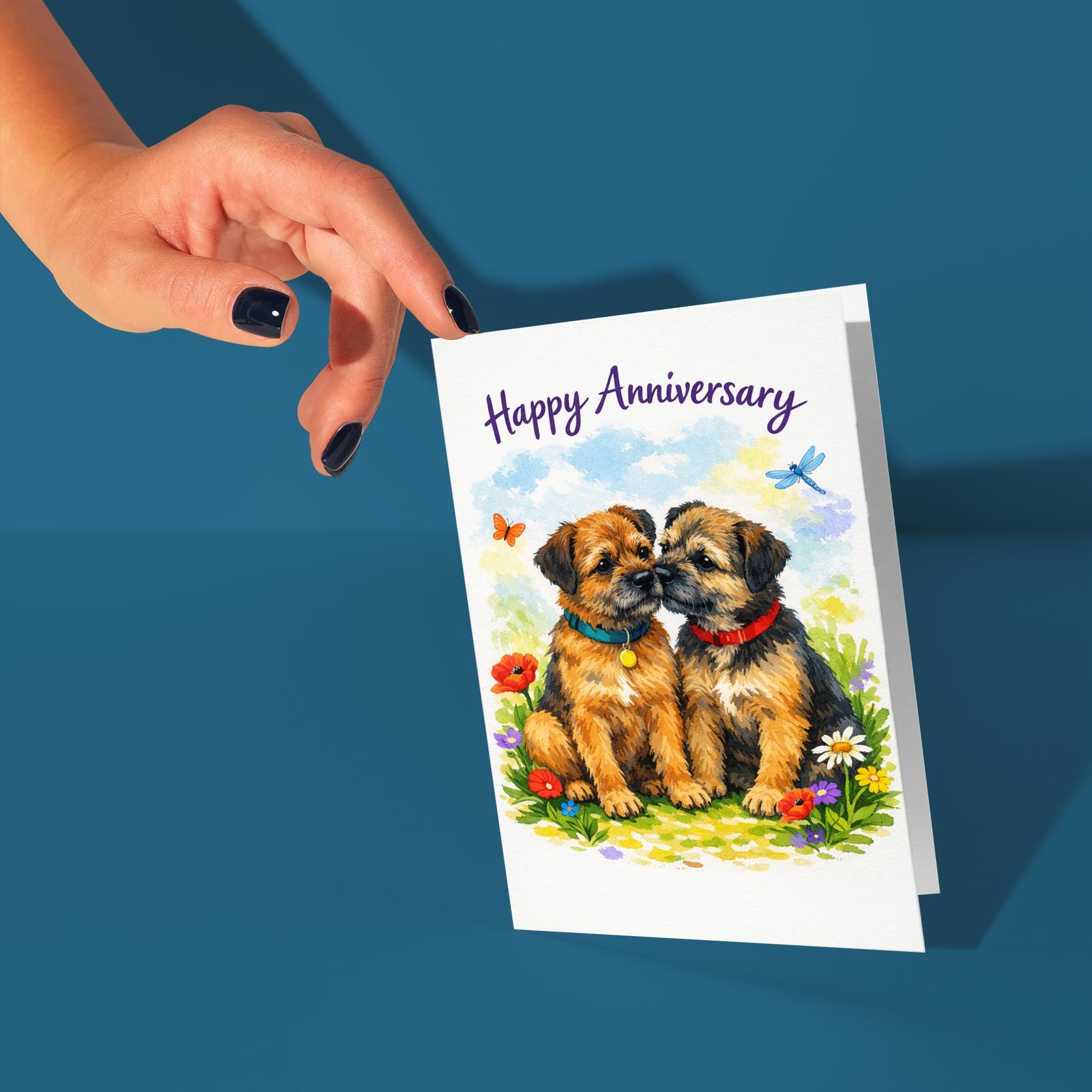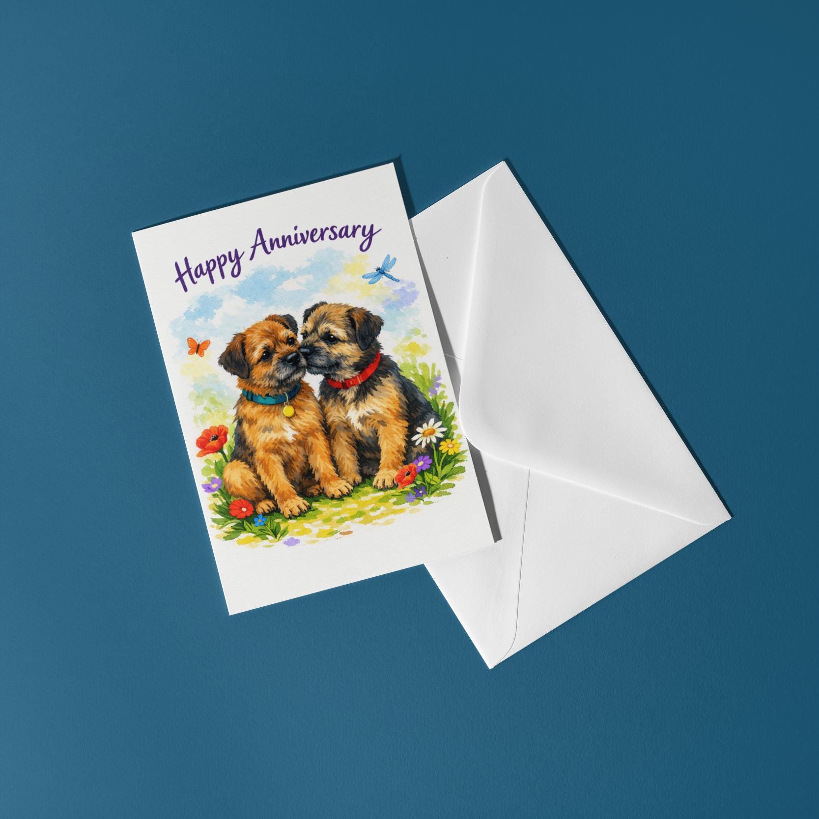 BLANK INTERIOR FOR A PERSONAL TOUCH: Our Dog Breeds Collection - Border Terrier Dogs Love - Anniversary Card and other whimsical designs feature a blank interior, giving you ample space to write a personal message from the heart. Perfect for any occasion, each card comes with a matching white envelope, making it easy to send your unique sentiments to loved ones.