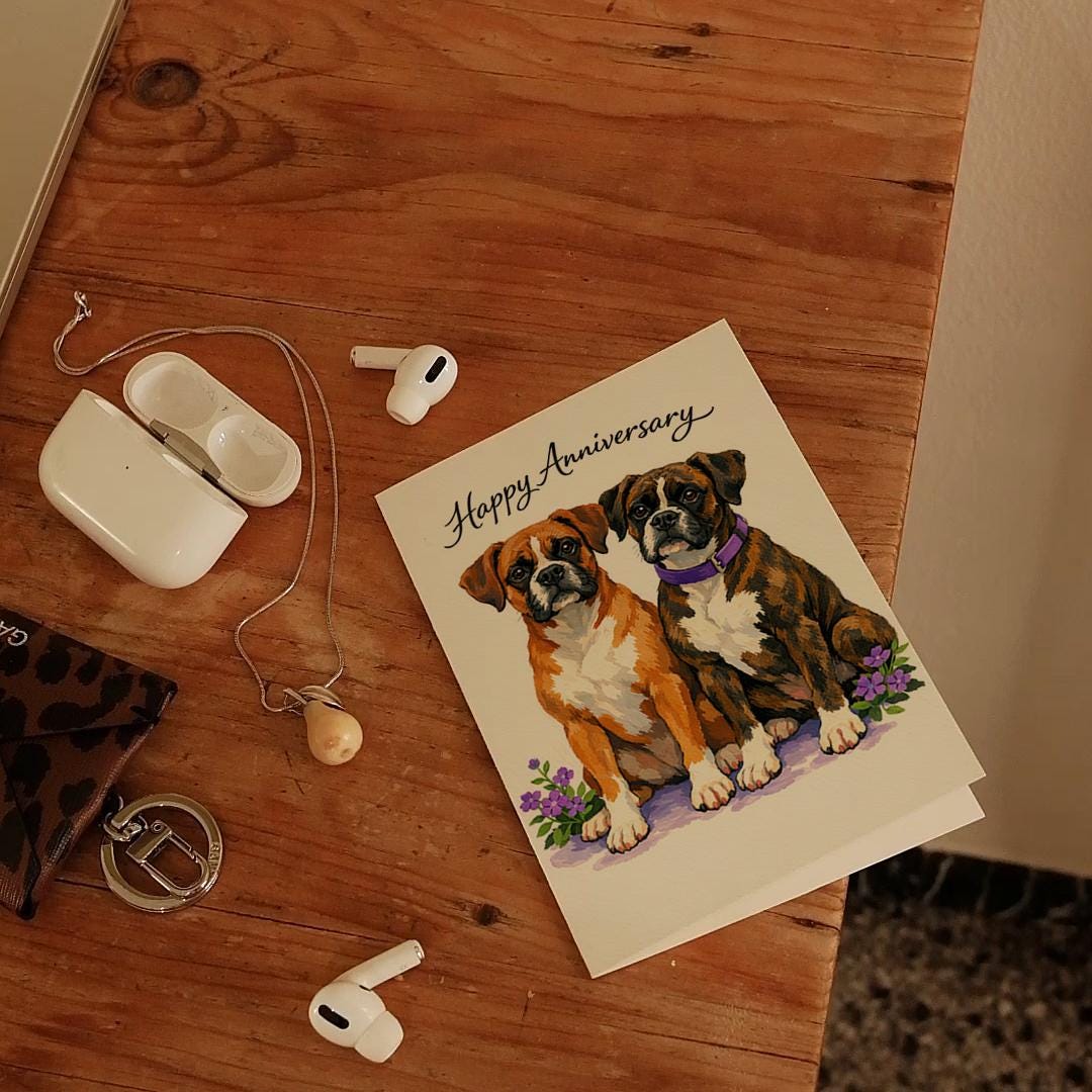 BLANK INTERIOR FOR A PERSONAL TOUCH: Our Dog Breeds Collection - Boxer Dogs Love - Anniversary Card and other whimsical designs feature a blank interior, giving you ample space to write a personal message from the heart. Perfect for any occasion, each card comes with a matching white envelope, making it easy to send your unique sentiments to loved ones.