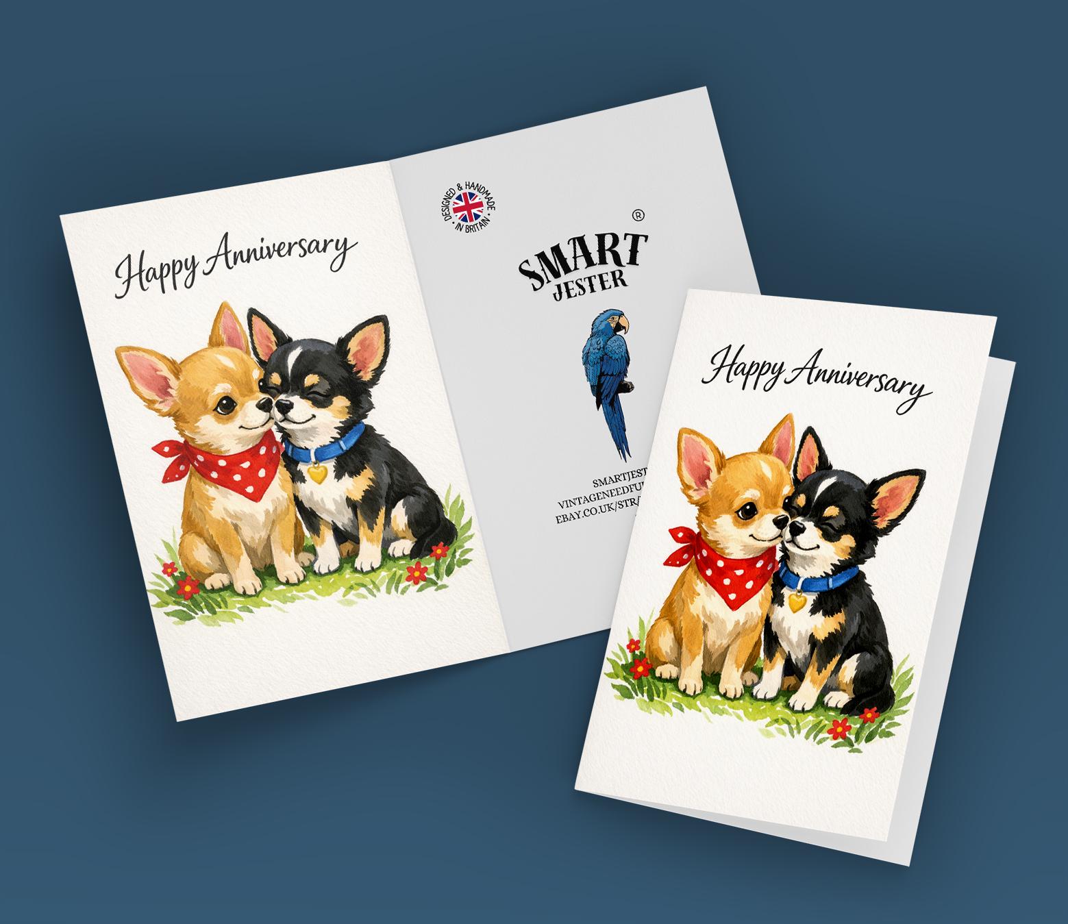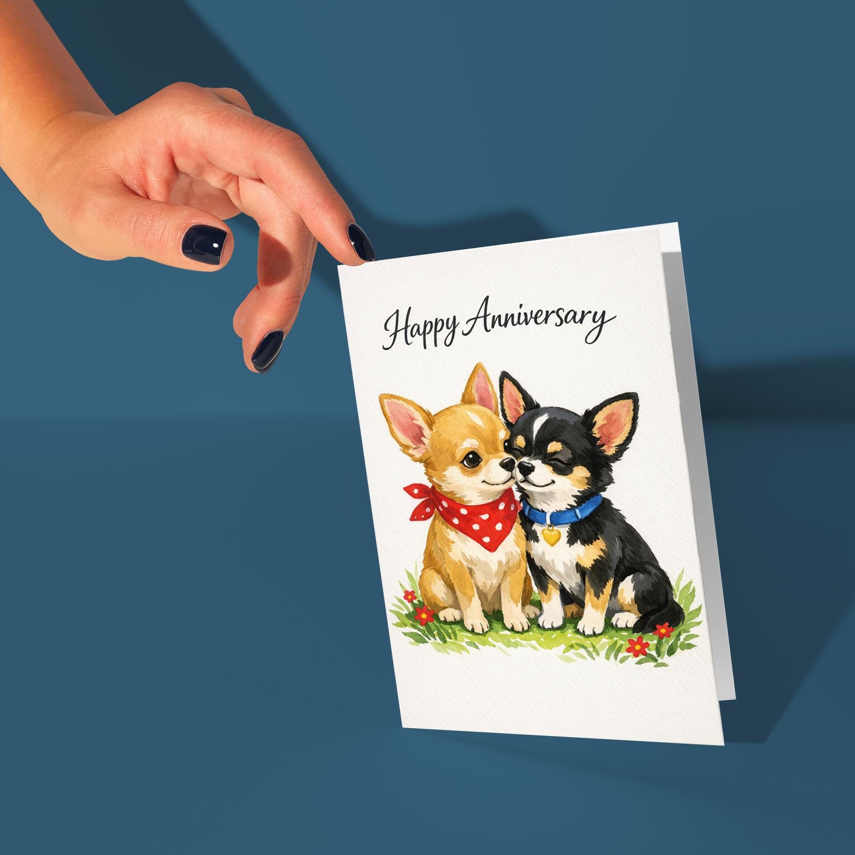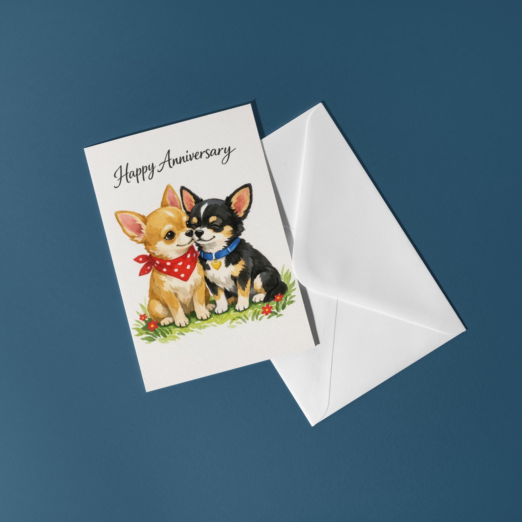 BLANK INTERIOR FOR A PERSONAL TOUCH: Our Dog Breeds Collection - Chihuahua Dogs Love - Anniversary Card and other whimsical designs feature a blank interior, giving you ample space to write a personal message from the heart. Perfect for any occasion, each card comes with a matching white envelope, making it easy to send your unique sentiments to loved ones.
