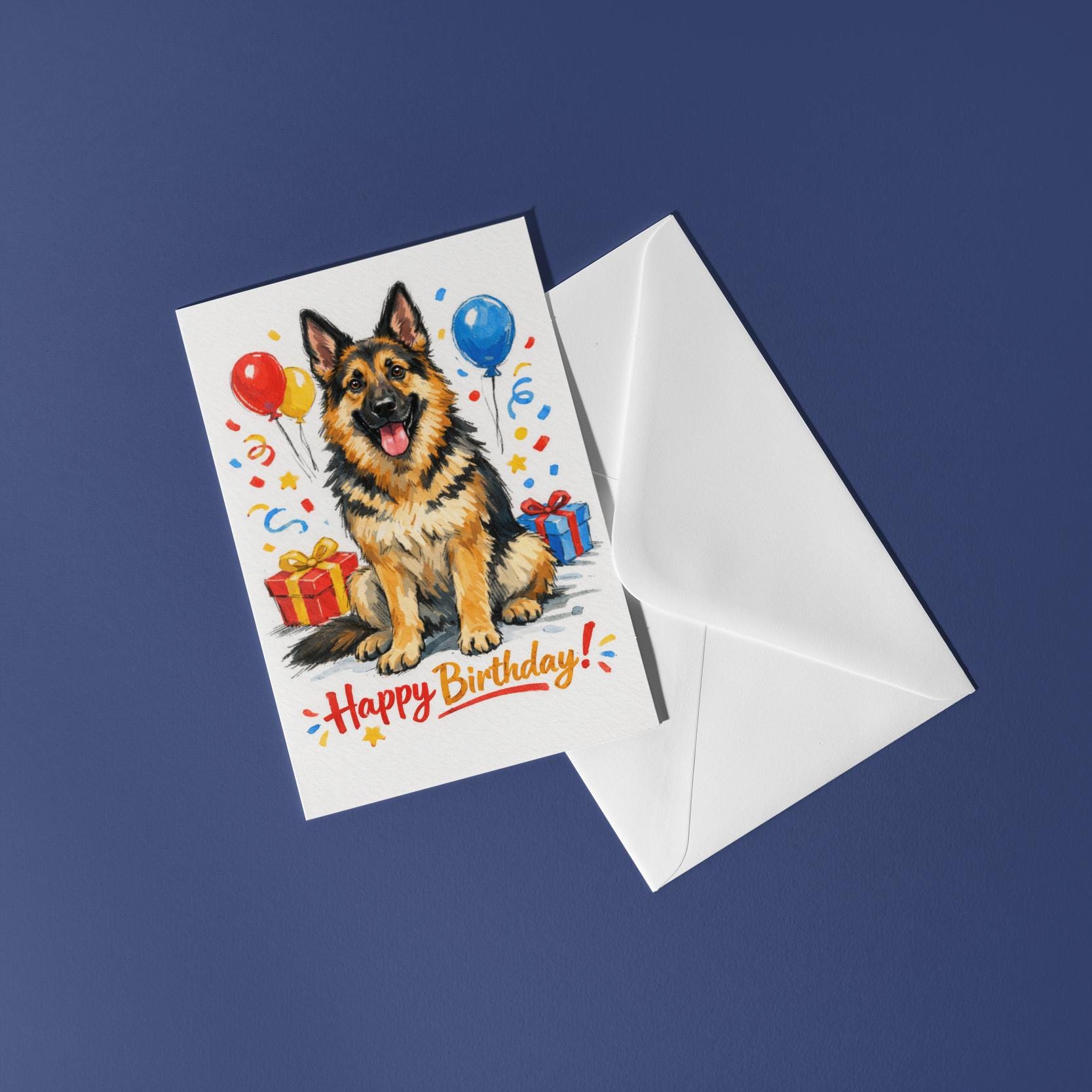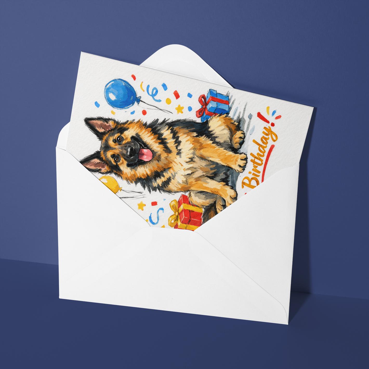 BLANK INTERIOR FOR A PERSONAL TOUCH: Our Dog Breeds Collection - German Shepherd Dog - Happy Birthday! card and other whimsical designs feature a blank interior, giving you ample space to write a personal message from the heart. Perfect for any occasion, each card comes with a matching white envelope, making it easy to send your unique sentiments to loved ones.