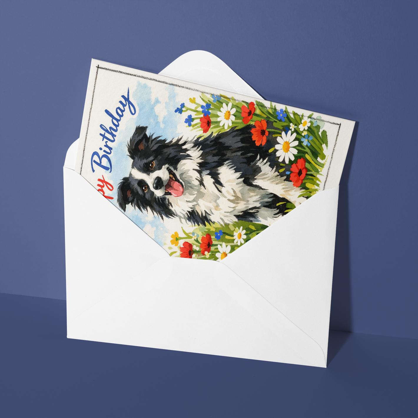 BLANK INTERIOR FOR A PERSONAL TOUCH: Our Dog Breeds Collection - Border Collie Dog - Happy Birthday! card and other whimsical designs feature a blank interior, giving you ample space to write a personal message from the heart. Perfect for any occasion, each card comes with a matching white envelope, making it easy to send your unique sentiments to loved ones.