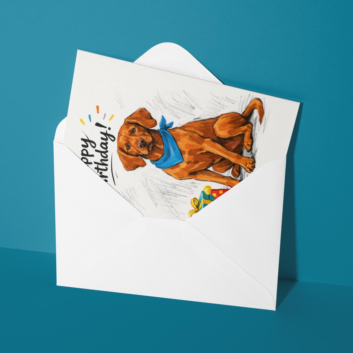 BLANK INTERIOR FOR A PERSONAL TOUCH: Our Dog Breeds Collection - Vizsla Dog - Happy Birthday! card and other whimsical designs feature a blank interior, giving you ample space to write a personal message from the heart. Perfect for any occasion, each card comes with a matching white envelope, making it easy to send your unique sentiments to loved ones.