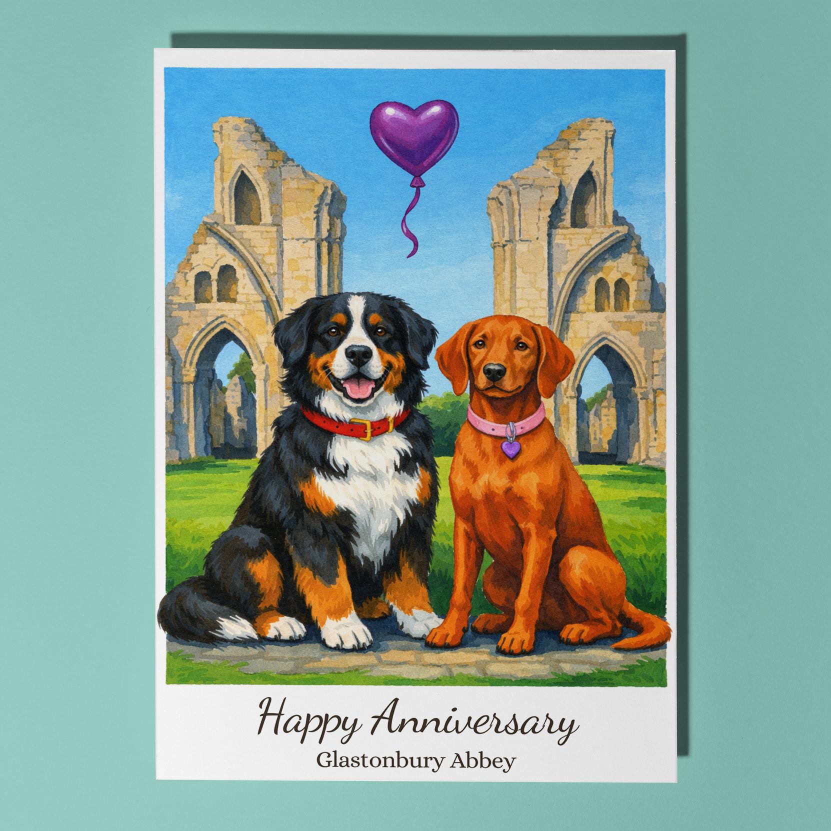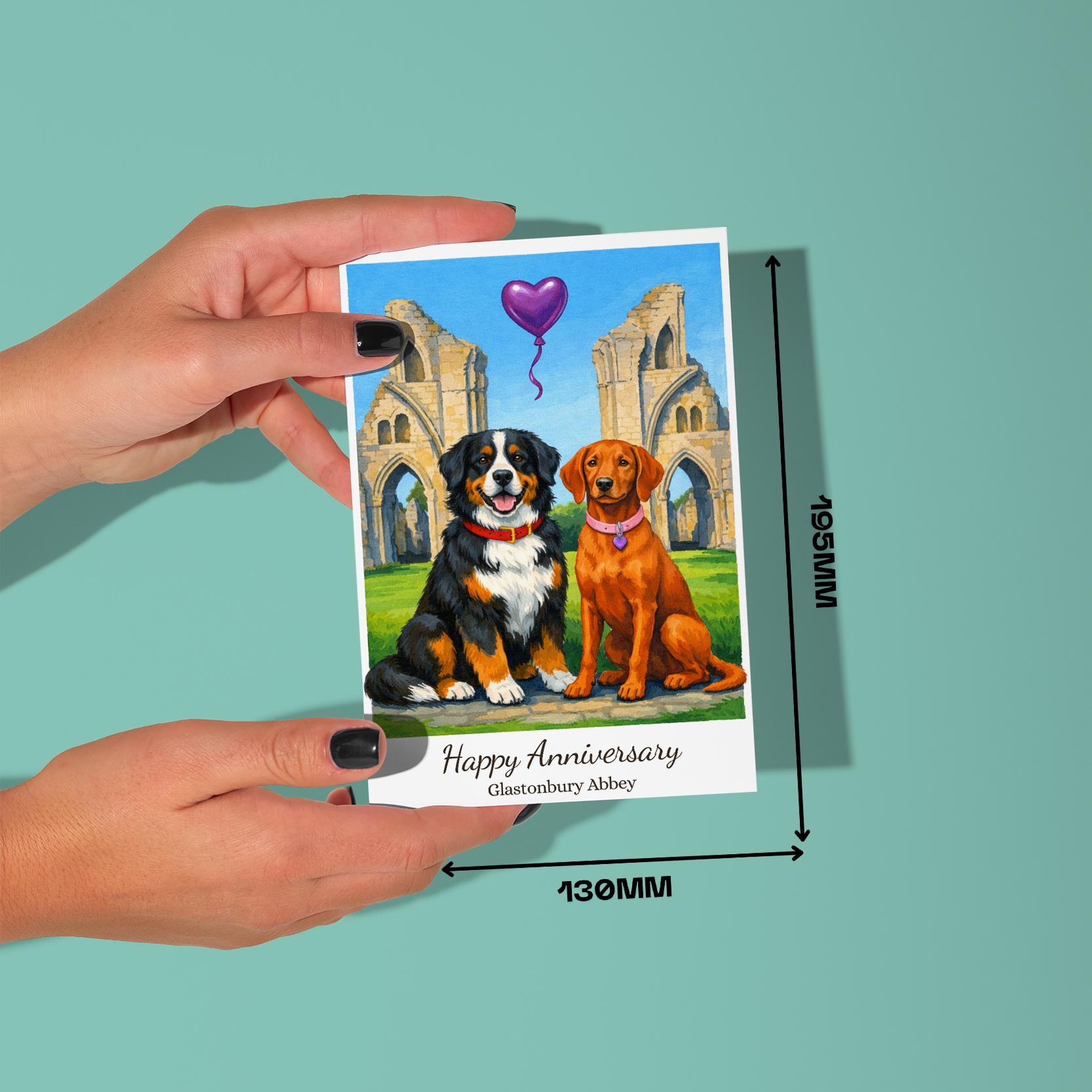 BLANK INTERIOR FOR A PERSONAL TOUCH: Our Paws & Places Collection - Glastonbury Abbey Bernese Mountain Dog Vizsla Dogs Happy Anniversary Card and other whimsical designs feature a blank interior, giving you ample space to write a personal message from the heart. Perfect for any occasion, each card comes with a matching white envelope, making it easy to send your unique sentiments to loved ones.
