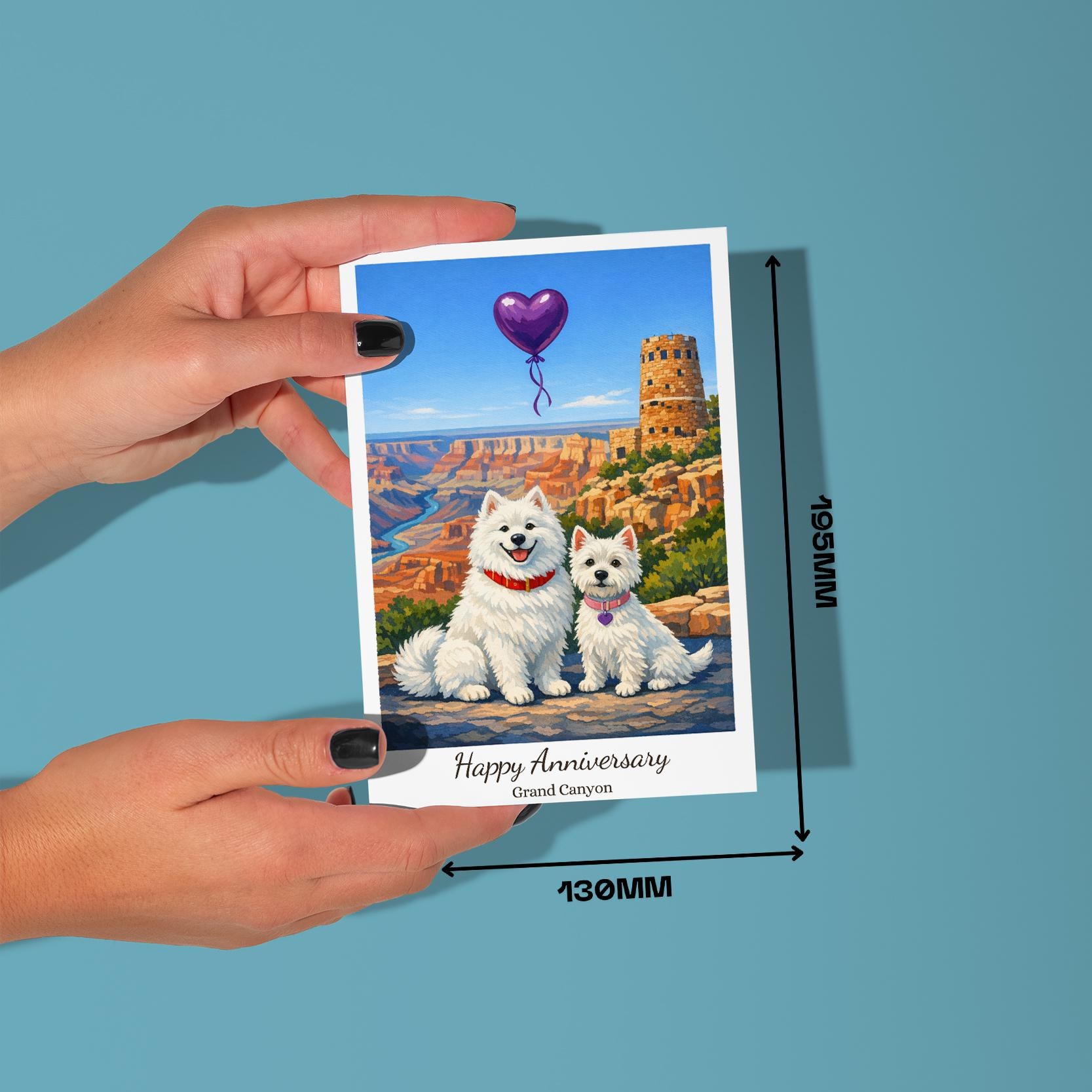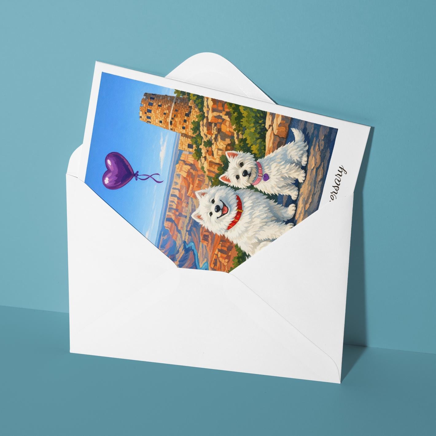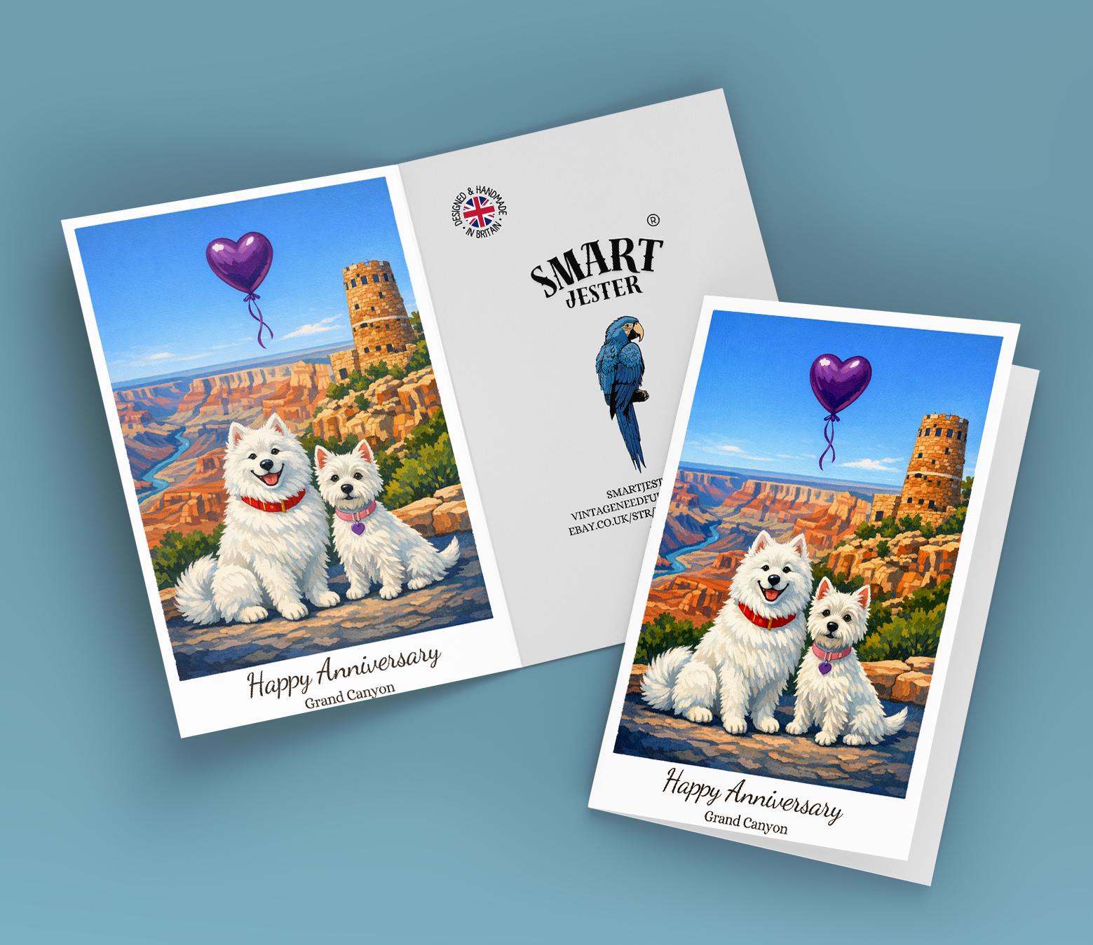 BLANK INTERIOR FOR A PERSONAL TOUCH: Our Paws & Places Collection - Grand Canyon Desert View Watchtower area Samoyed and Westie Dogs Happy Anniversary Card and other whimsical designs feature a blank interior, giving you ample space to write a personal message from the heart. Perfect for any occasion, each card comes with a matching white envelope, making it easy to send your unique sentiments to loved ones.