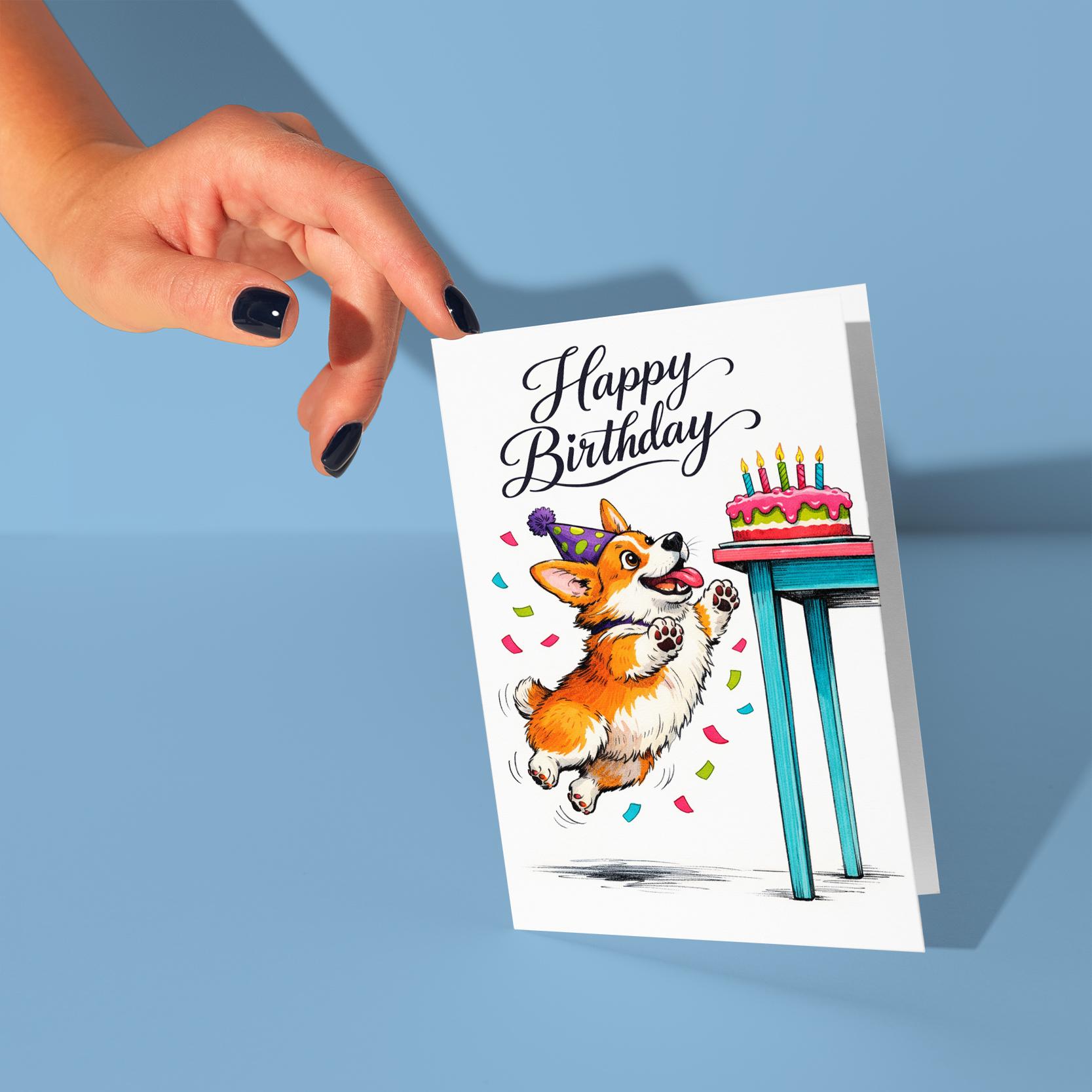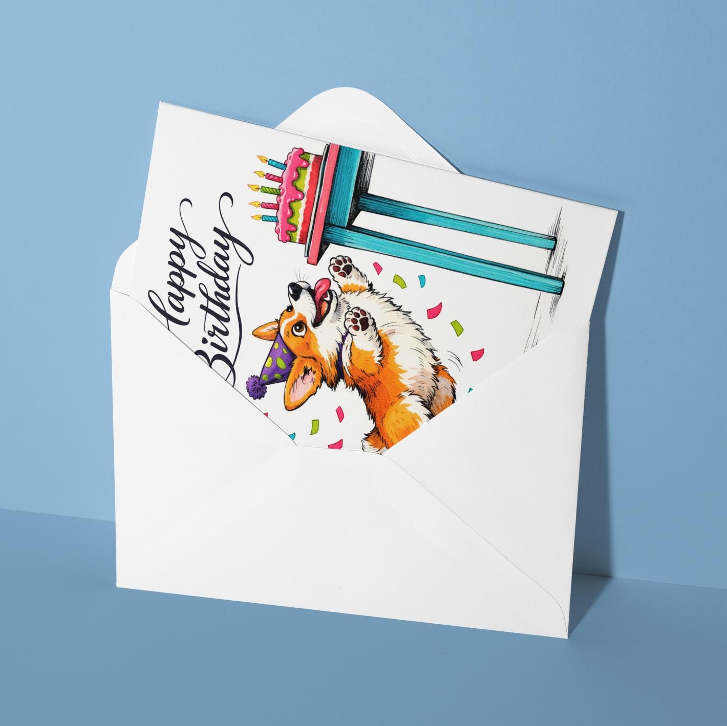 BLANK INTERIOR FOR A PERSONAL TOUCH: Part of the - Dog Breeds Collection - Corgi Cake Jump - Happy Birthday! card and other whimsical designs feature a blank interior, giving you ample space to write a personal message from the heart. Perfect for any occasion, each card comes with a matching white envelope, making it easy to send your unique sentiments to loved ones.