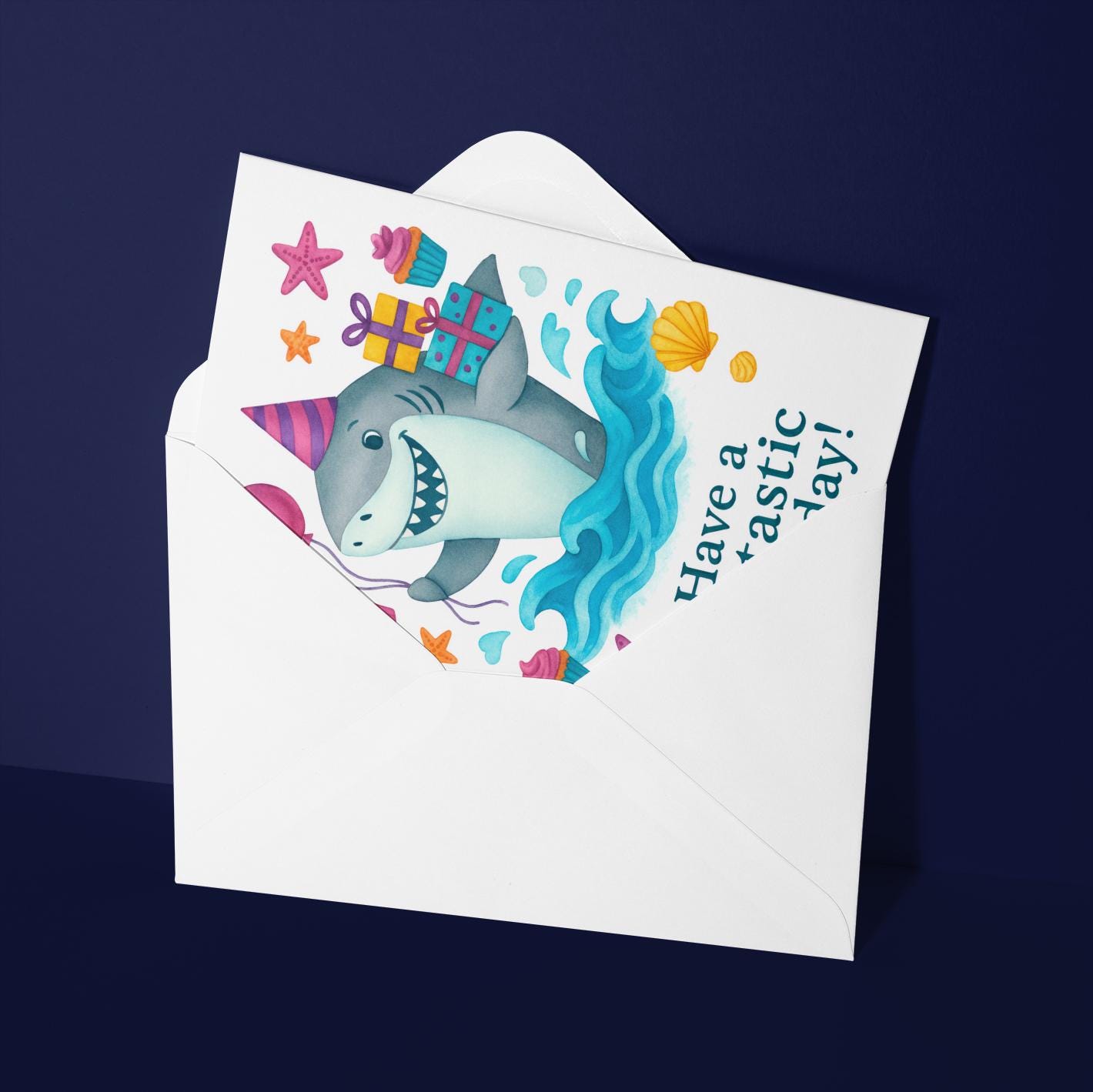 BLANK INTERIOR FOR A PERSONAL TOUCH: Our Fin-Tastic Shark Birthday! card and other whimsical designs feature a blank interior, giving you ample space to write a personal message from the heart. Perfect for any occasion, each card comes with a matching white envelope, making it easy to send your unique sentiments to loved ones.