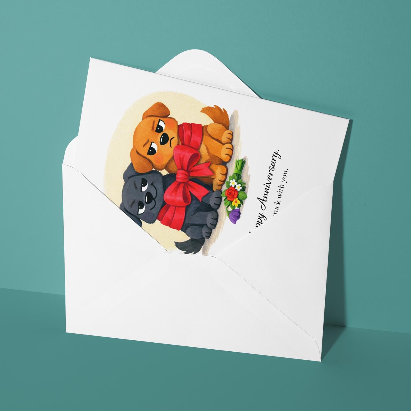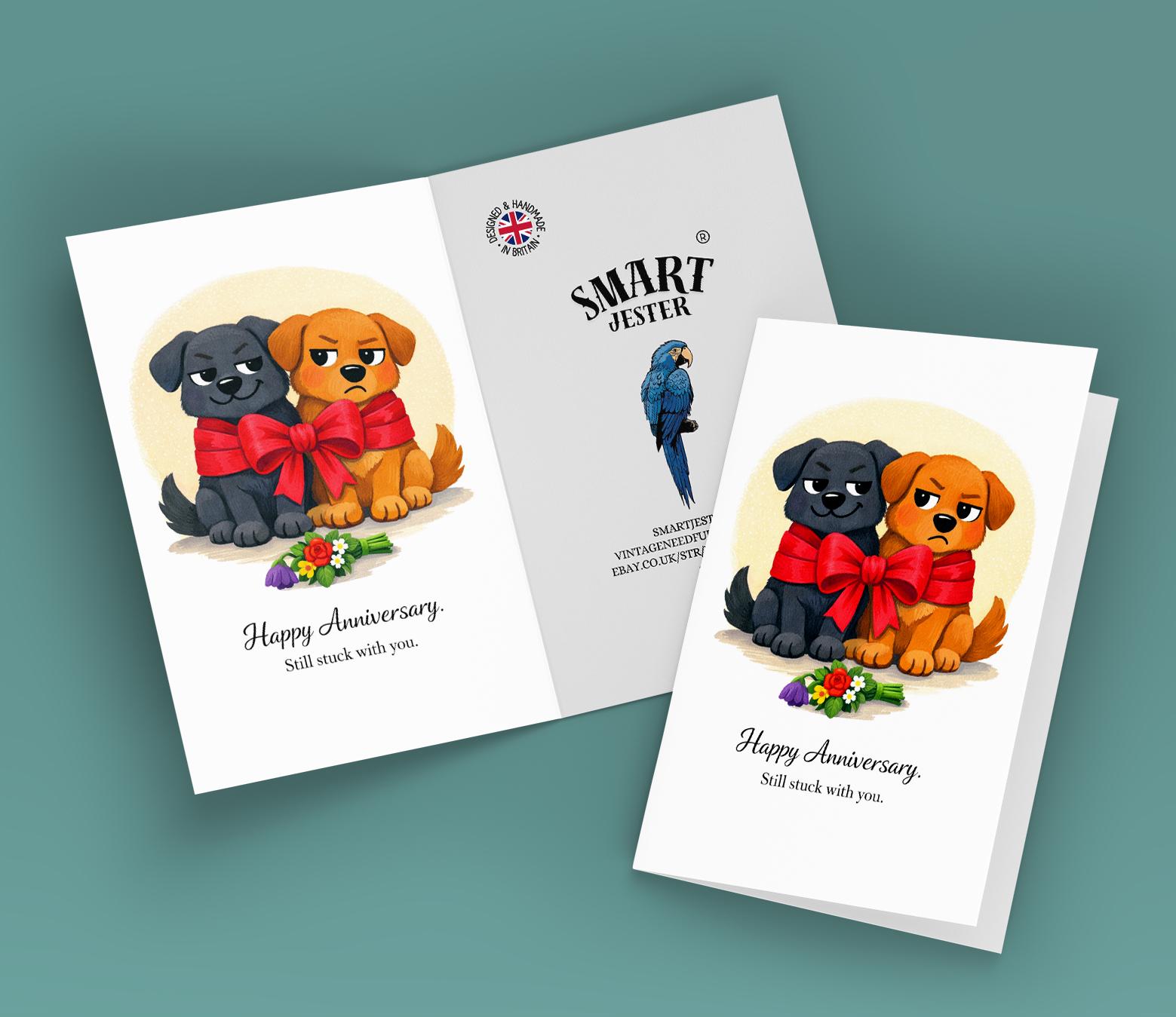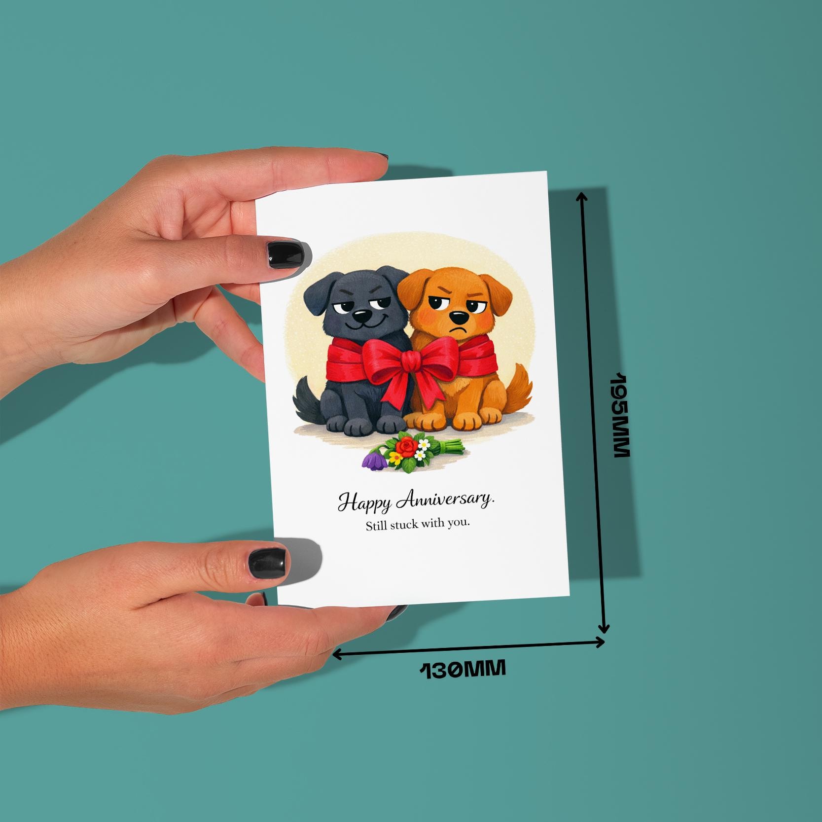 BLANK INTERIOR FOR A PERSONAL TOUCH: Part of the - Funny Animals Collection – Tied Together Pups - Still Stuck With you Happy Anniversary card and other whimsical designs feature a blank interior, giving you ample space to write a personal message from the heart. Perfect for any occasion, each card comes with a matching white envelope, making it easy to send your unique sentiments to loved ones.