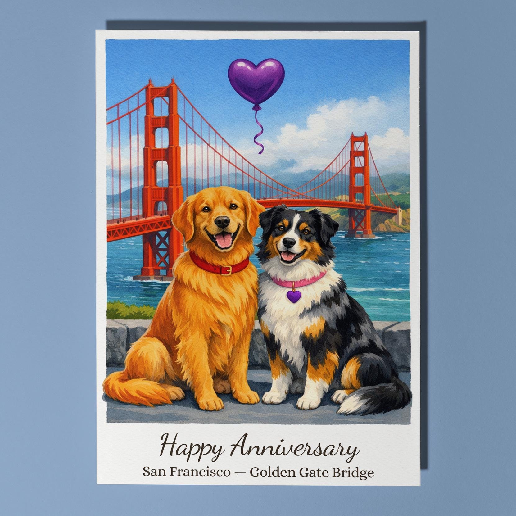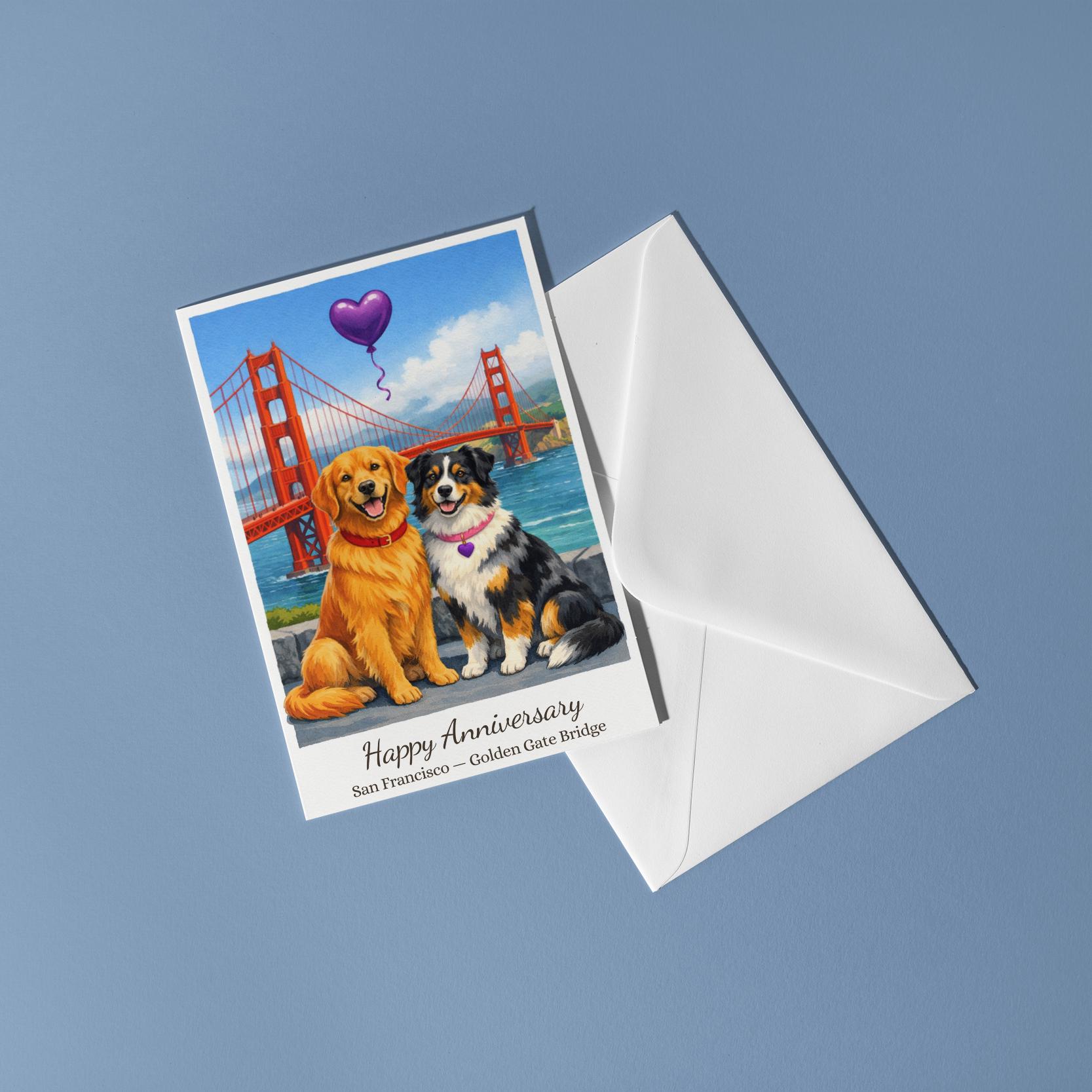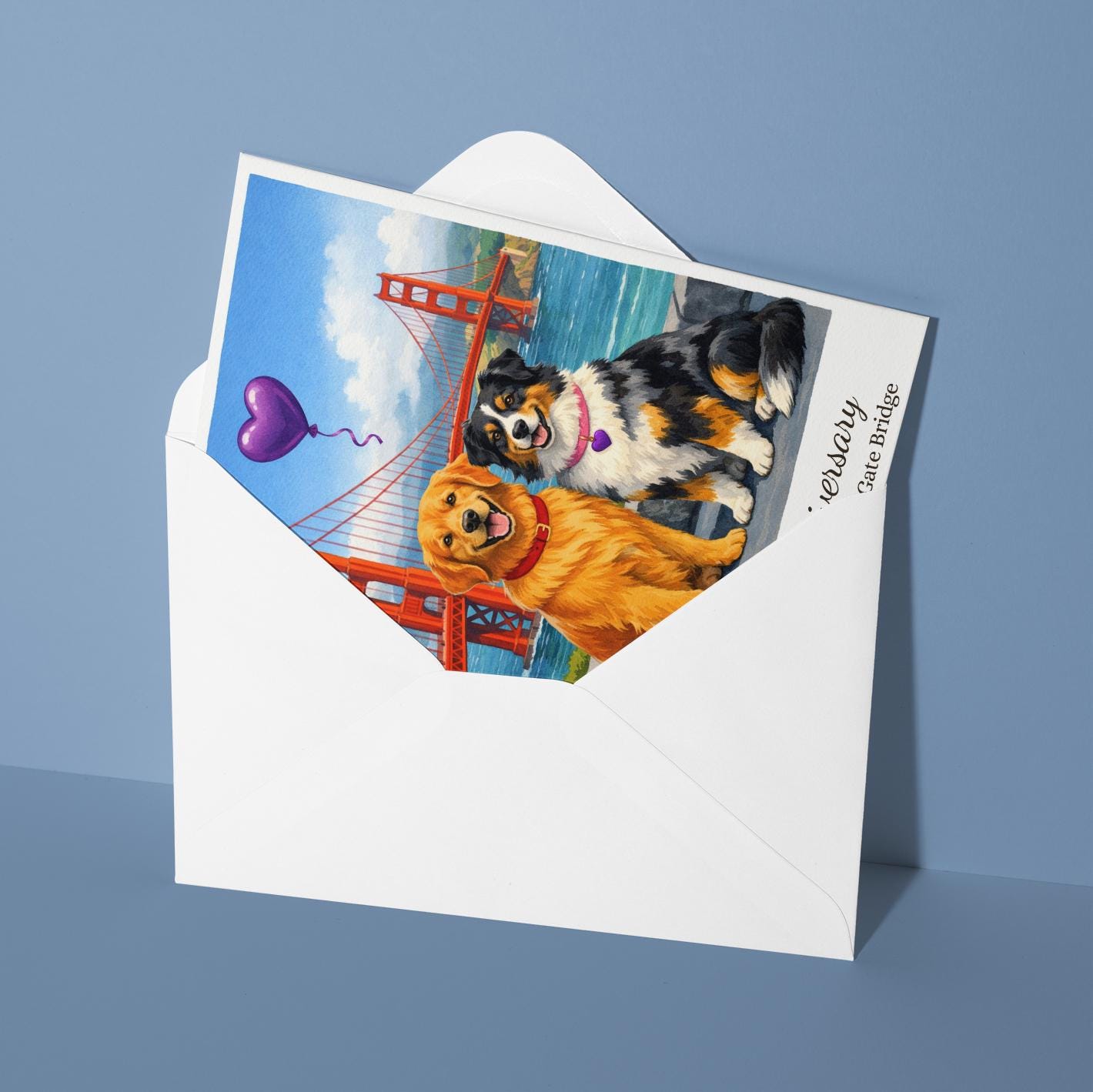 BLANK INTERIOR FOR A PERSONAL TOUCH: Our Paws & Places Collection - San Francisco Golden Gate Bridge - Golden Retriever and Australian Shepherd Dogs Happy Anniversary Card and other whimsical designs feature a blank interior, giving you ample space to write a personal message from the heart. Perfect for any occasion, each card comes with a matching white envelope, making it easy to send your unique sentiments to loved ones.