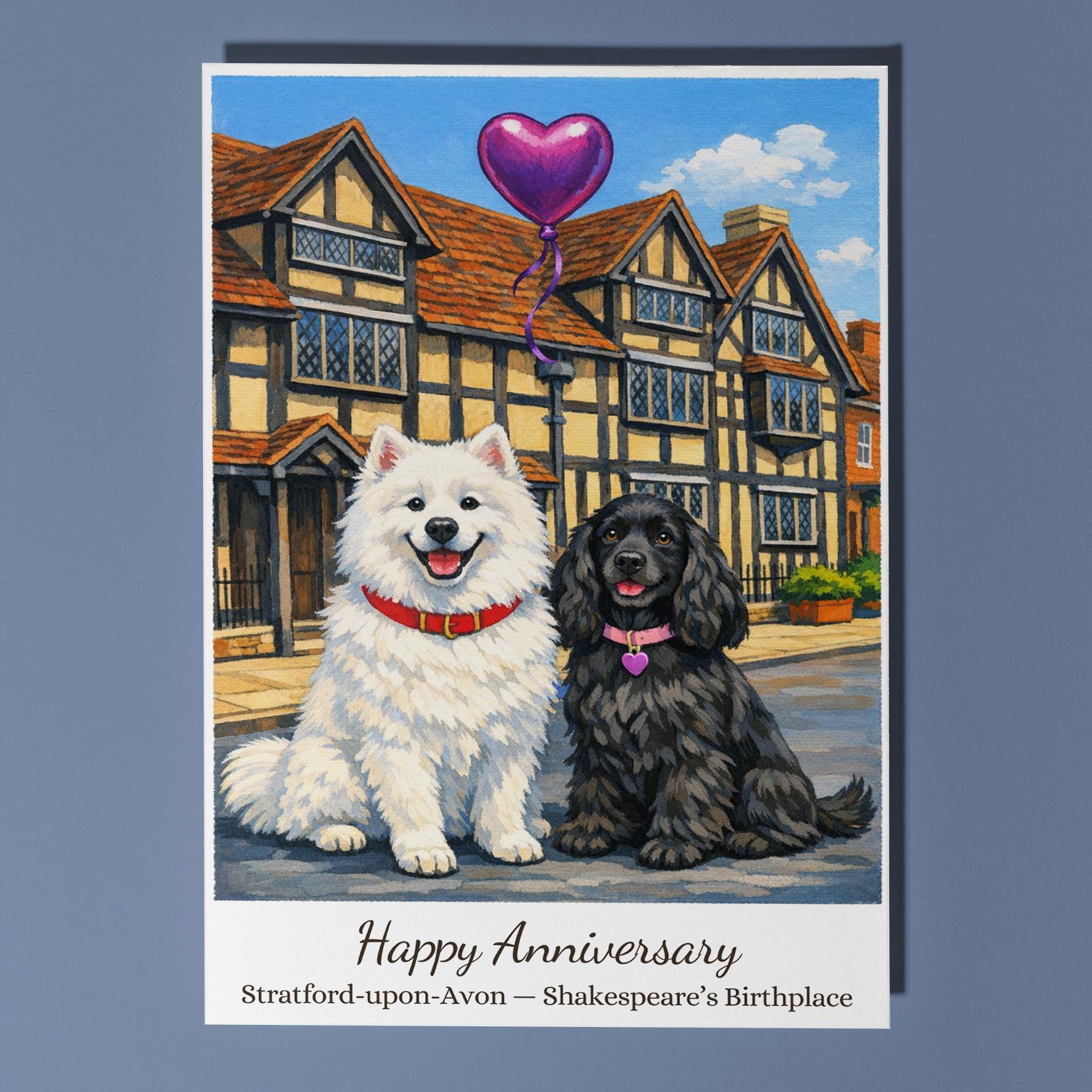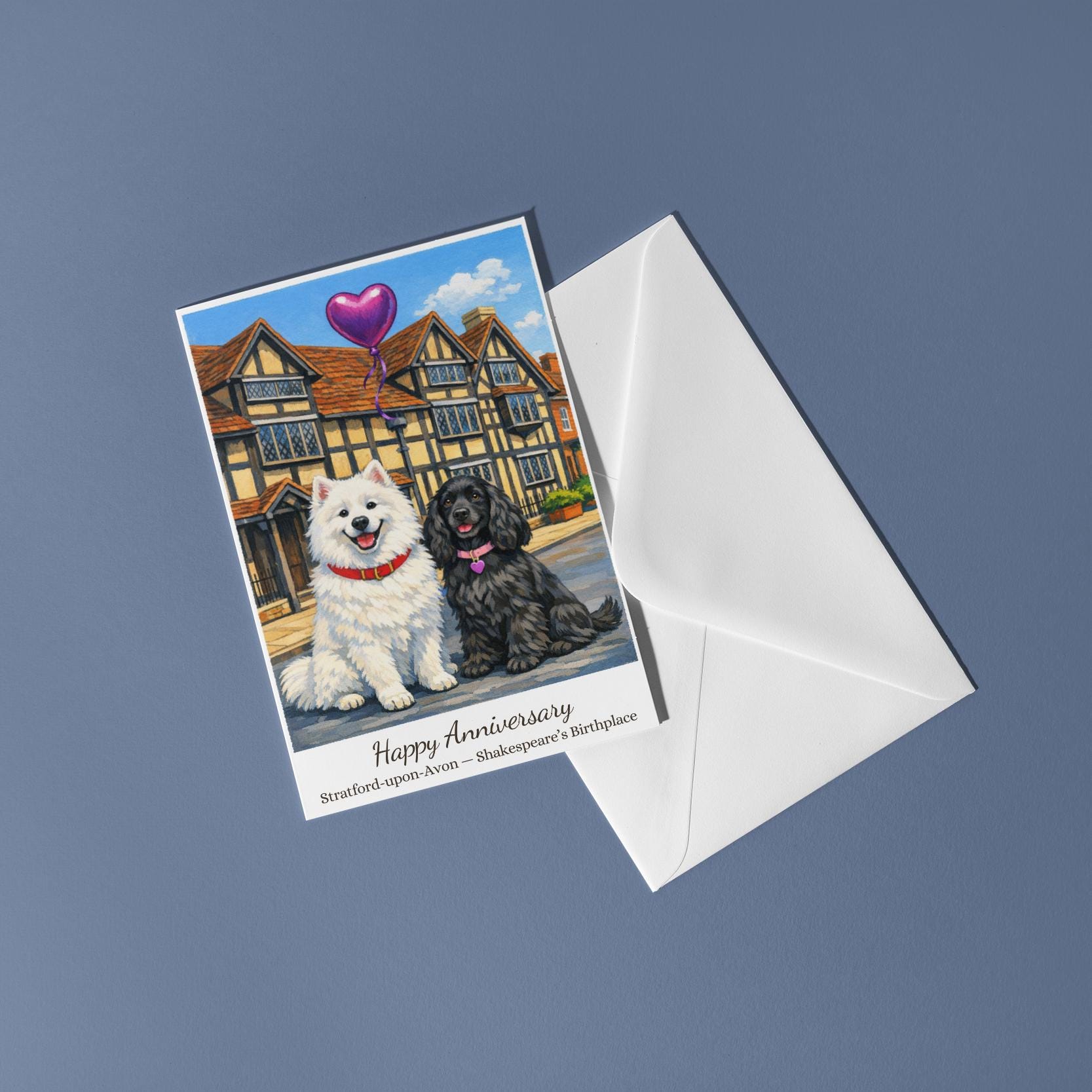 BLANK INTERIOR FOR A PERSONAL TOUCH: Our Paws & Places Collection - Stratford-upon-Avon Shakespeare’s Birthplace Samoyed Cocker Spaniel Dogs Happy Anniversary Card and other whimsical designs feature a blank interior, giving you ample space to write a personal message from the heart. Perfect for any occasion, each card comes with a matching white envelope, making it easy to send your unique sentiments to loved ones.