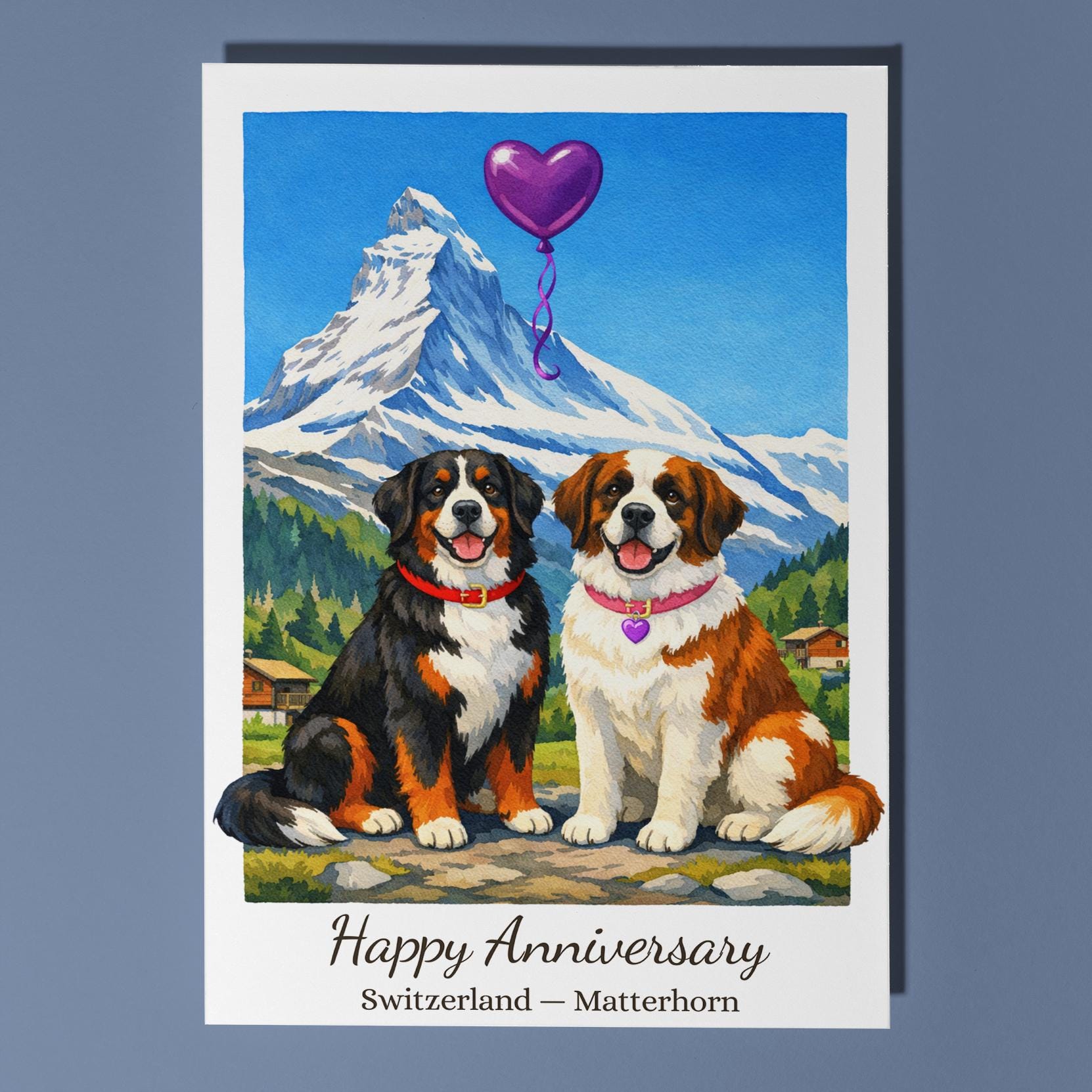 BLANK INTERIOR FOR A PERSONAL TOUCH: Our Paws & Places Collection - Switzerland Matterhorn - Bernese Mountain and Saint Bernard Dogs Happy Anniversary Card and other whimsical designs feature a blank interior, giving you ample space to write a personal message from the heart. Perfect for any occasion, each card comes with a matching white envelope, making it easy to send your unique sentiments to loved ones.