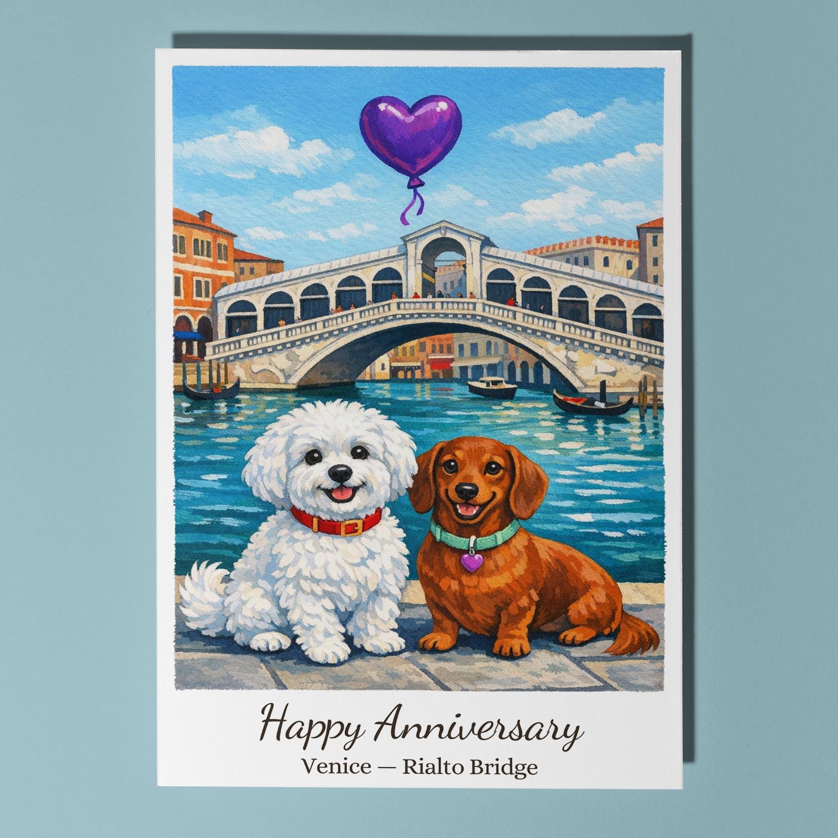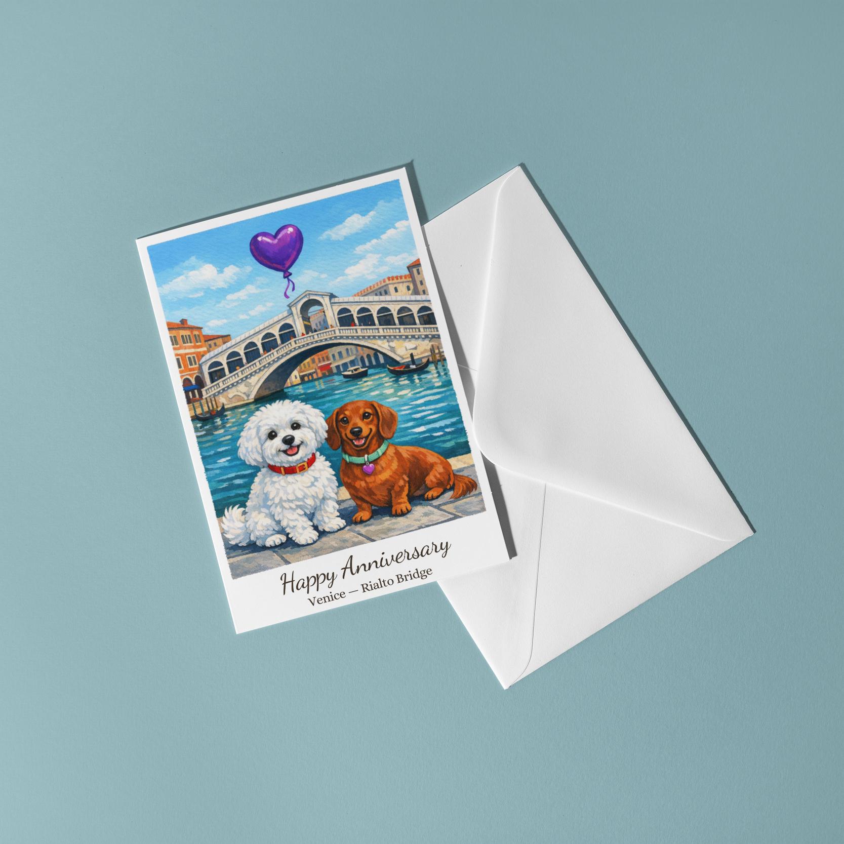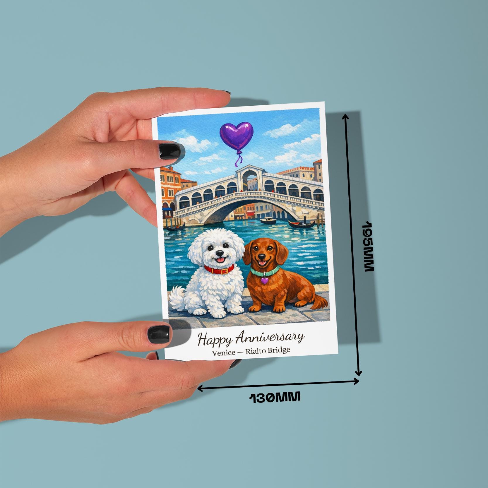 BLANK INTERIOR FOR A PERSONAL TOUCH: Our Paws & Places Collection - Venice Rialto Bridge Bolognese Dachshund Dogs Happy Anniversary Card and other whimsical designs feature a blank interior, giving you ample space to write a personal message from the heart. Perfect for any occasion, each card comes with a matching white envelope, making it easy to send your unique sentiments to loved ones.