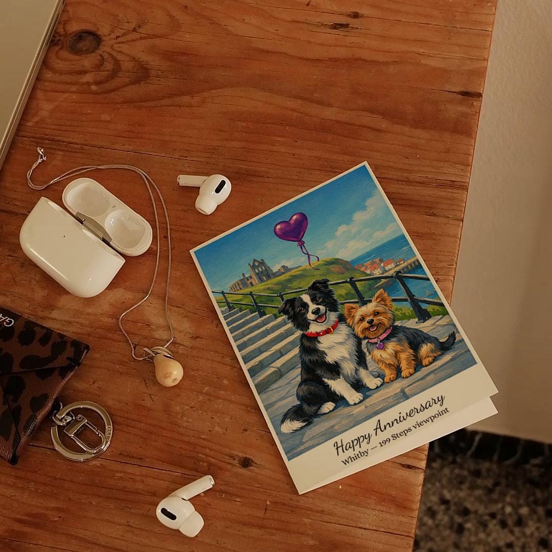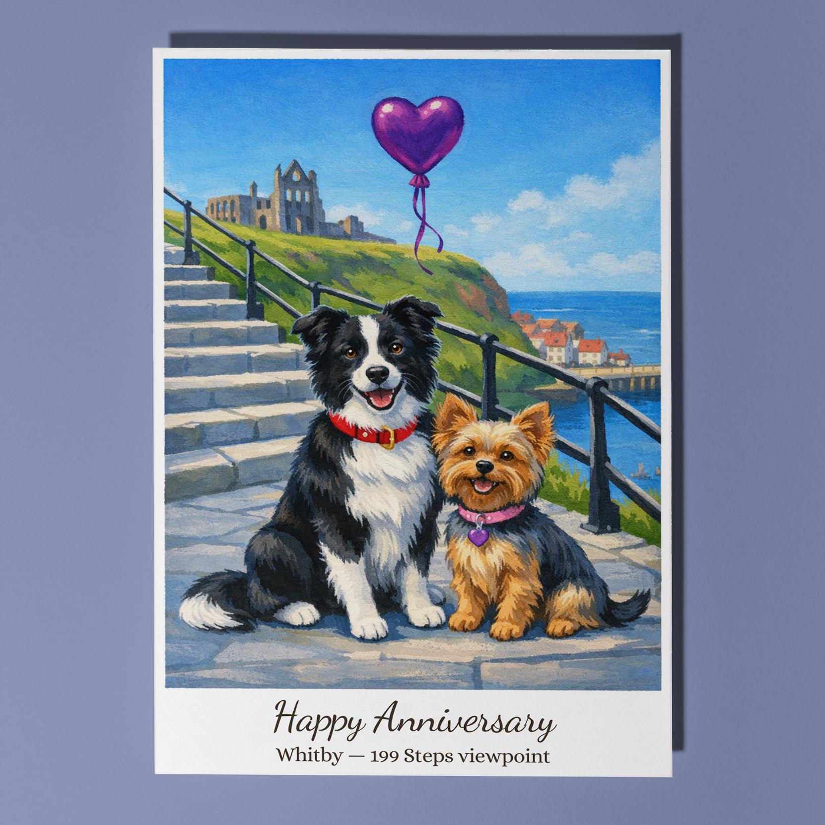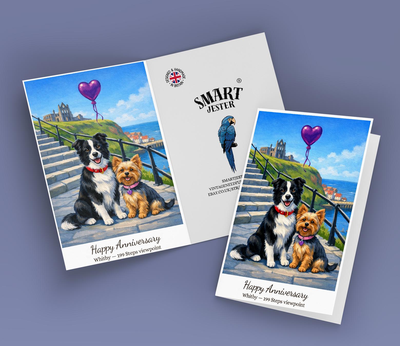 BLANK INTERIOR FOR A PERSONAL TOUCH: Our Paws & Places Collection - Whitby 199 Steps Viewpoint - Yorkshire Terrier and Border Collie Dogs Happy Anniversary Card and other whimsical designs feature a blank interior, giving you ample space to write a personal message from the heart. Perfect for any occasion, each card comes with a matching white envelope, making it easy to send your unique sentiments to loved ones.