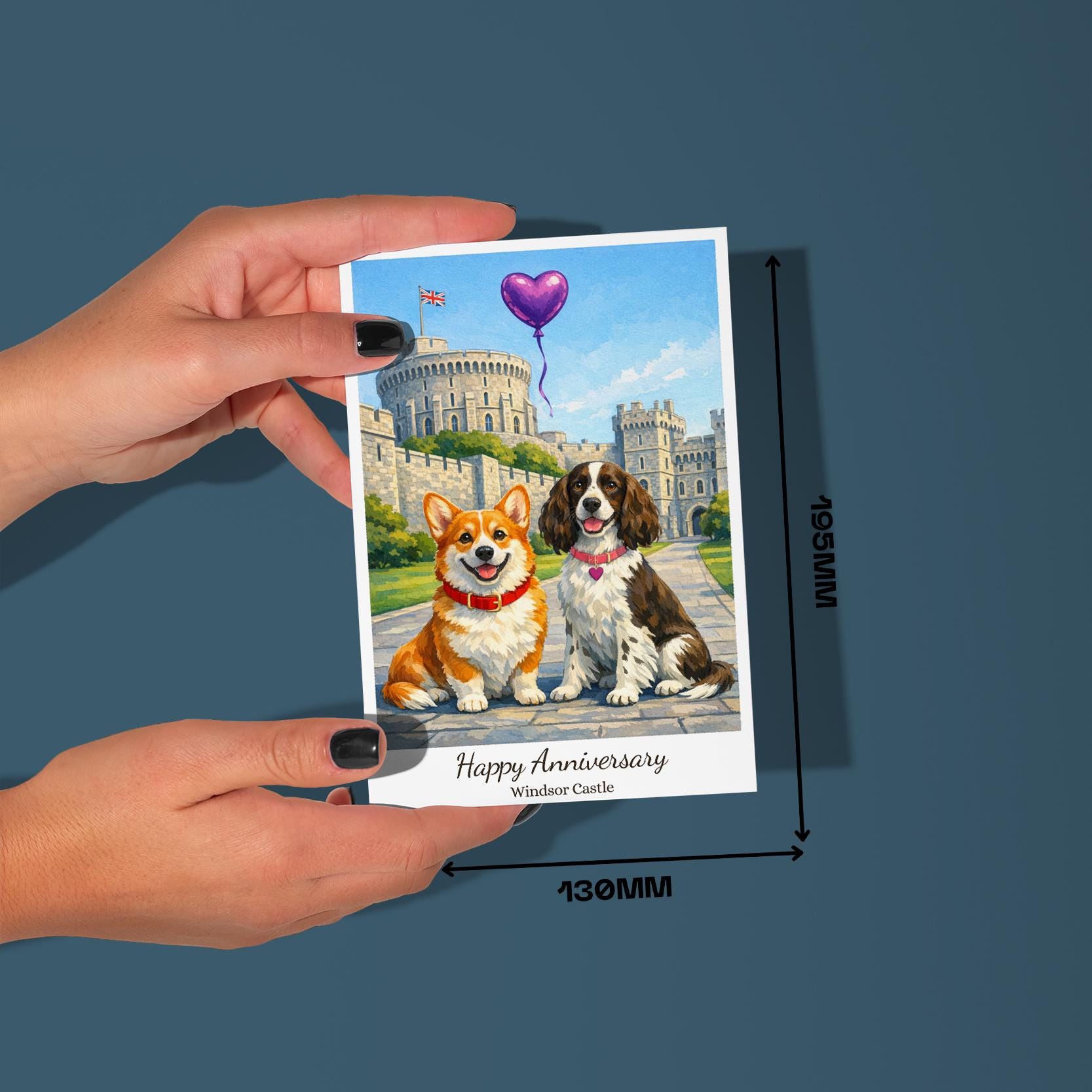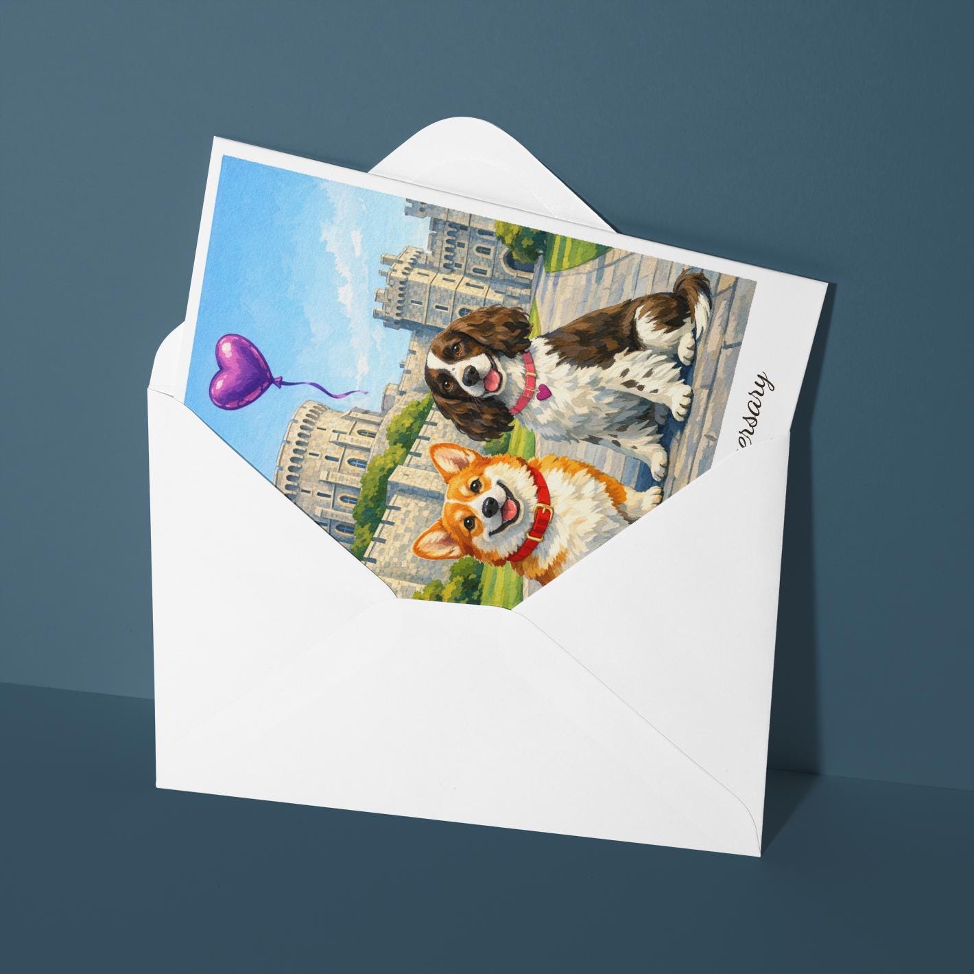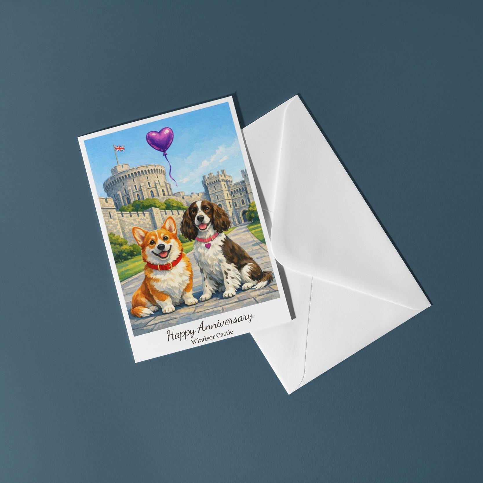 BLANK INTERIOR FOR A PERSONAL TOUCH: Our Paws & Places Collection - Windsor Castle - Corgi and Springer Spaniel Dogs Happy Anniversary Card and other whimsical designs feature a blank interior, giving you ample space to write a personal message from the heart. Perfect for any occasion, each card comes with a matching white envelope, making it easy to send your unique sentiments to loved ones.
