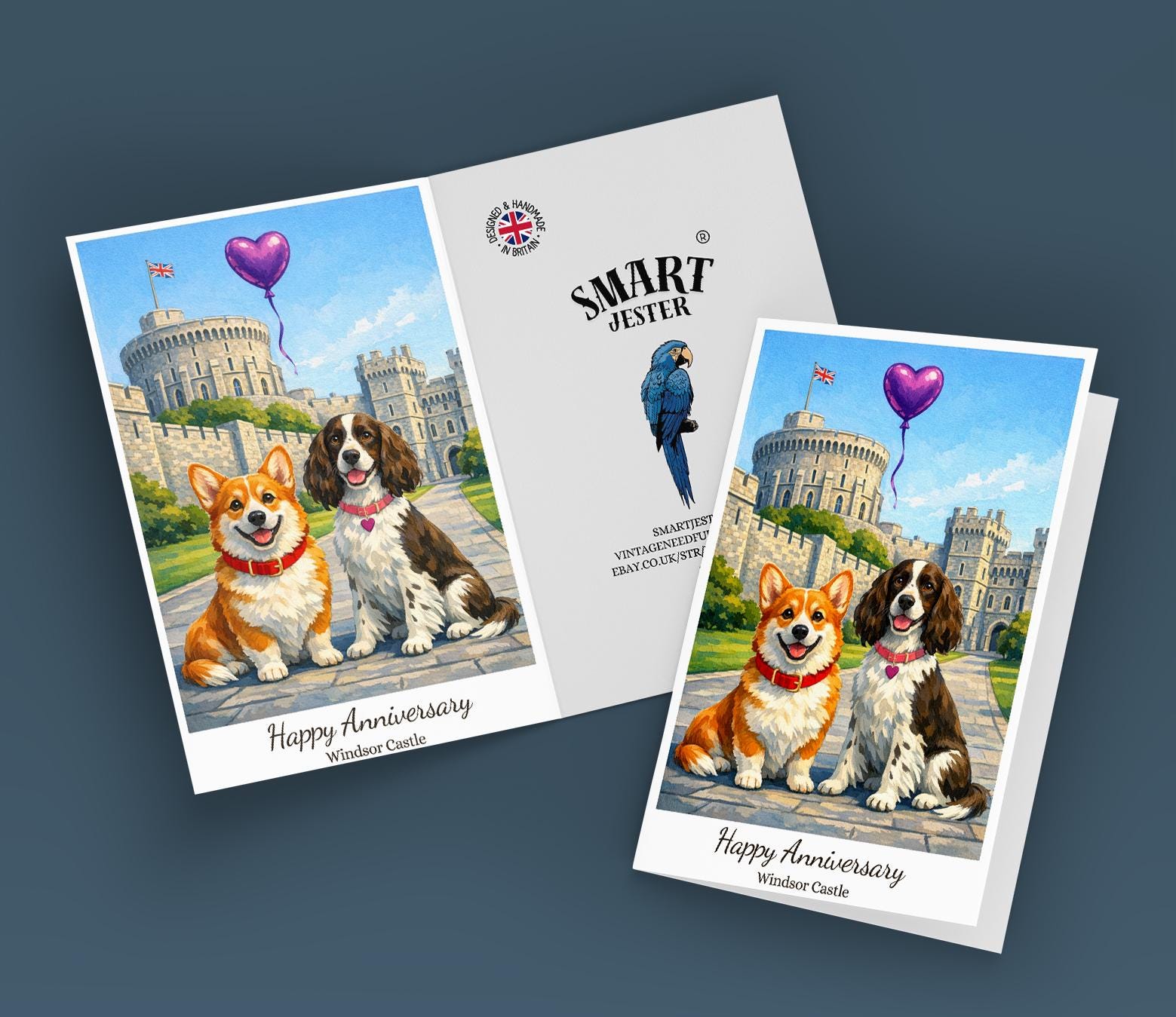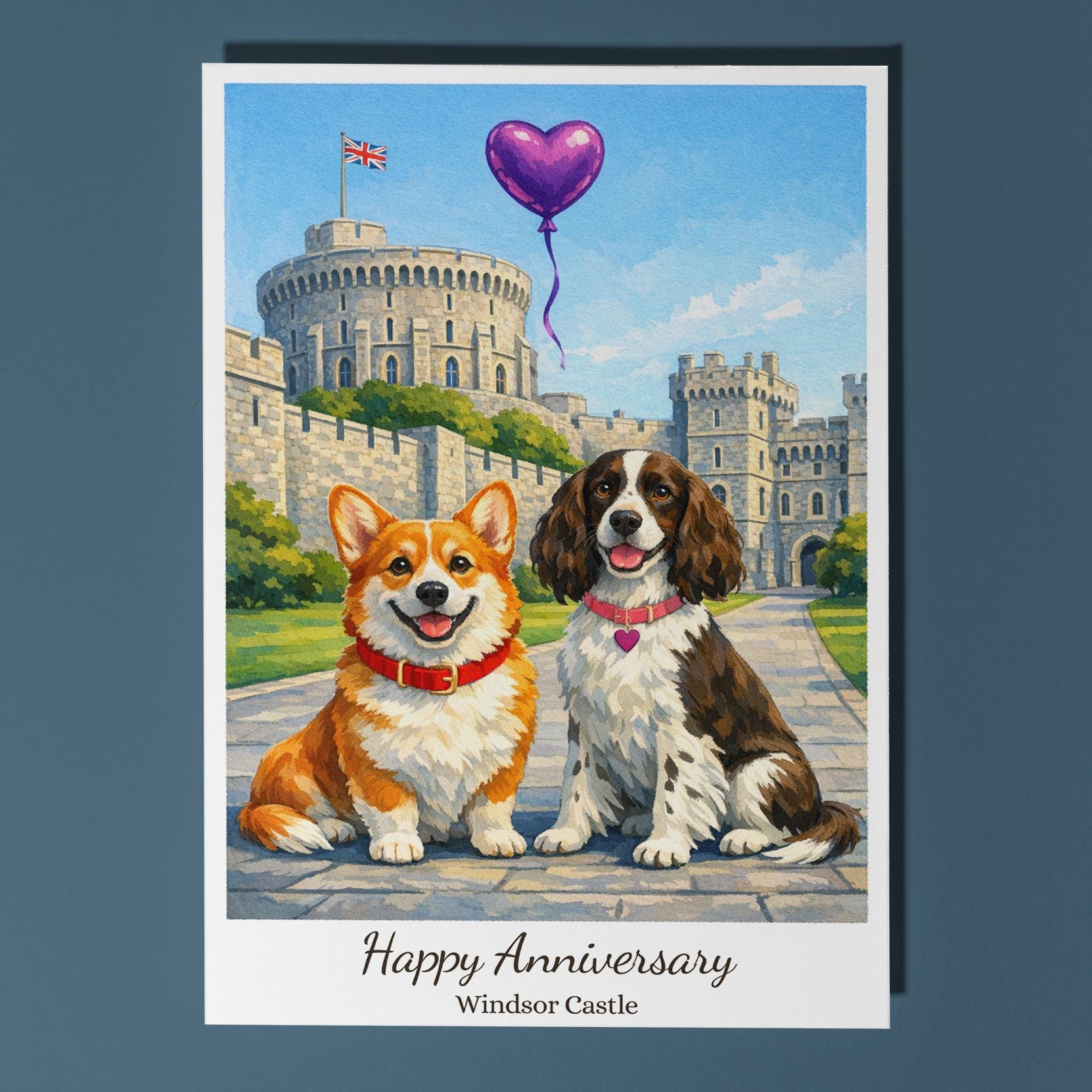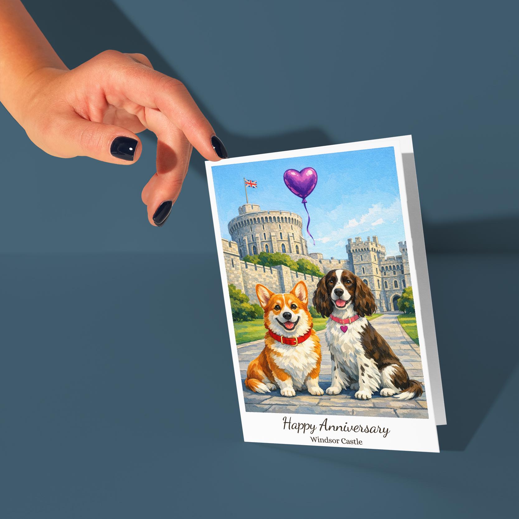 BLANK INTERIOR FOR A PERSONAL TOUCH: Our Paws & Places Collection - Windsor Castle - Corgi and Springer Spaniel Dogs Happy Anniversary Card and other whimsical designs feature a blank interior, giving you ample space to write a personal message from the heart. Perfect for any occasion, each card comes with a matching white envelope, making it easy to send your unique sentiments to loved ones.