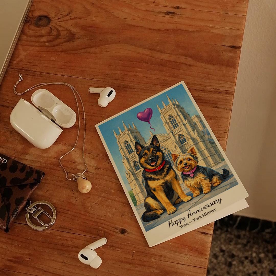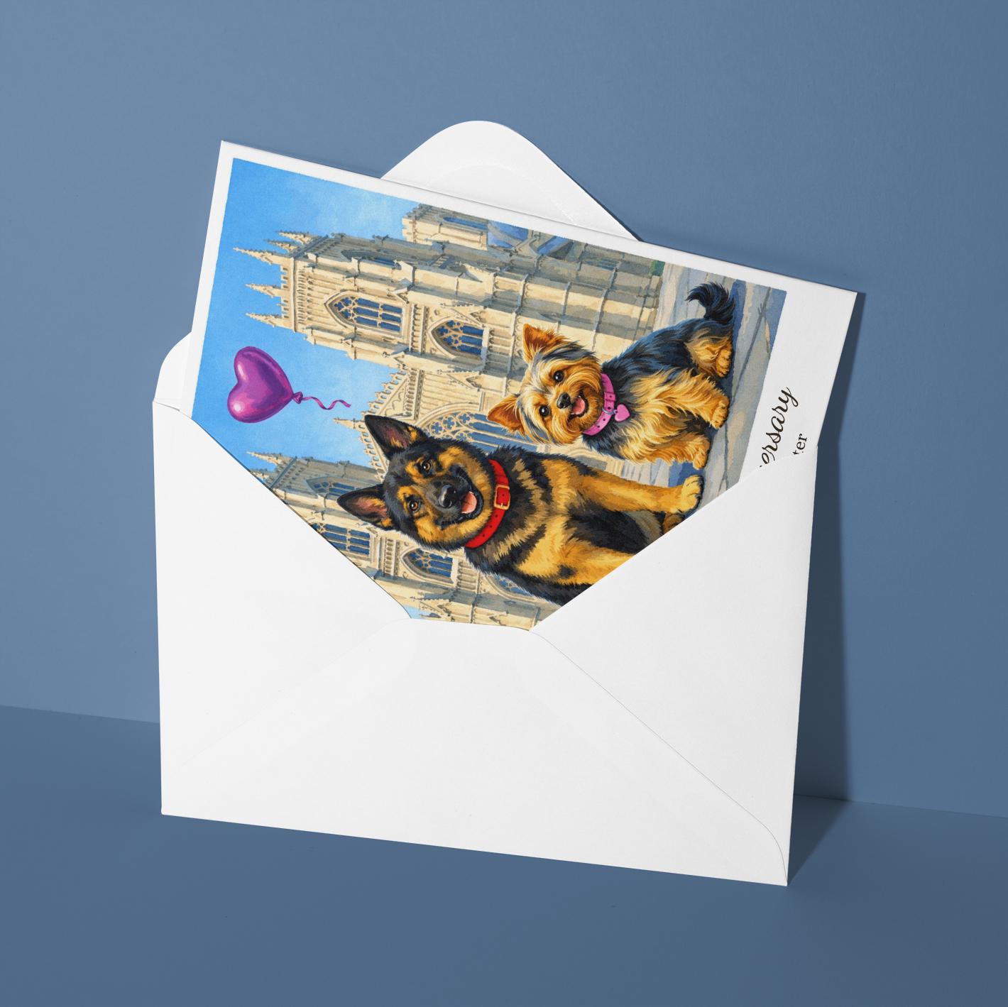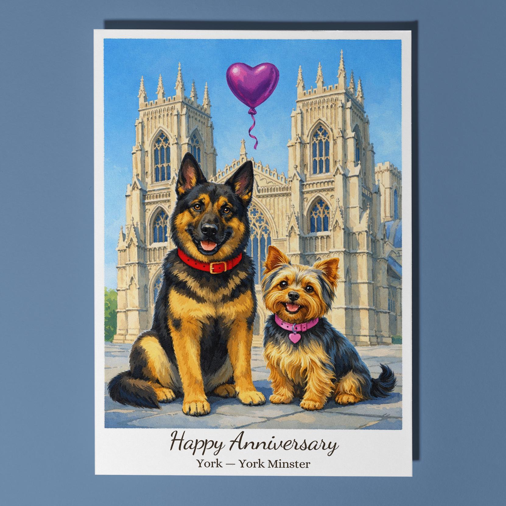 BLANK INTERIOR FOR A PERSONAL TOUCH: Our Paws & Places Collection - York - York Minster The Shambles - Yorkshire Terrier and German Shepherd Dogs Happy Anniversary Card and other whimsical designs feature a blank interior, giving you ample space to write a personal message from the heart. Perfect for any occasion, each card comes with a matching white envelope, making it easy to send your unique sentiments to loved ones.